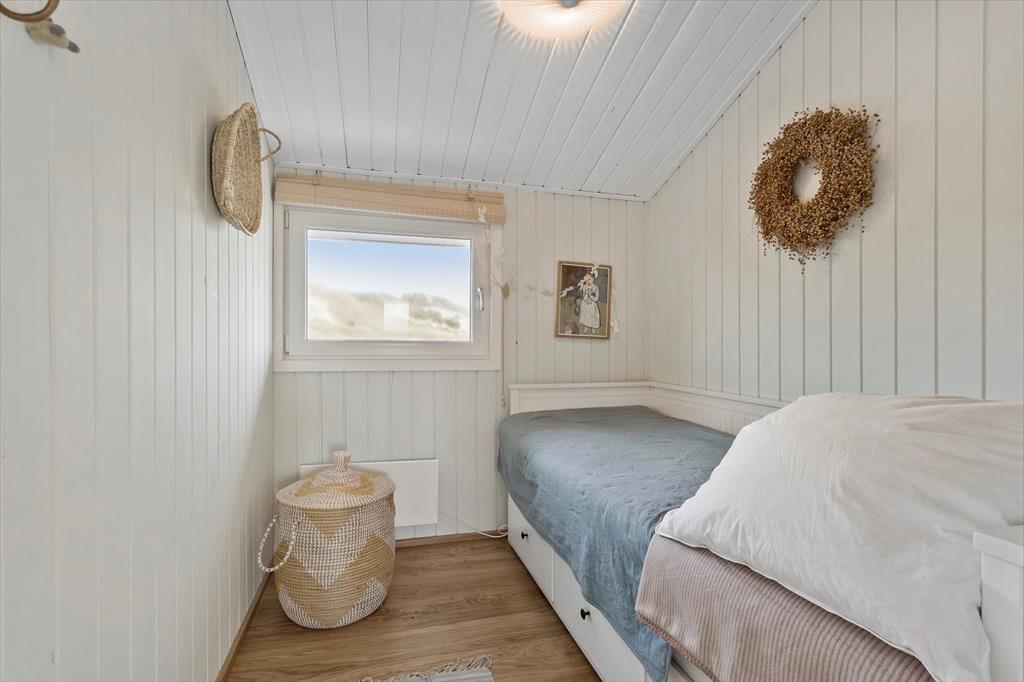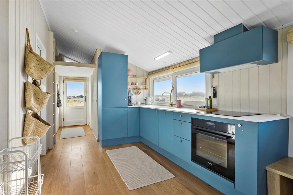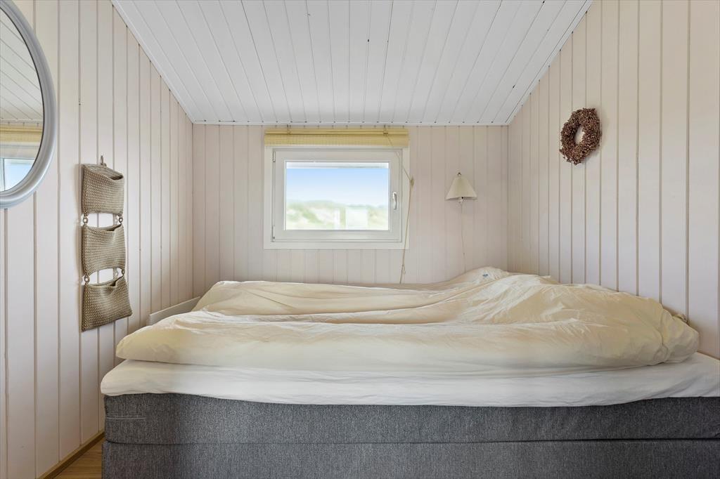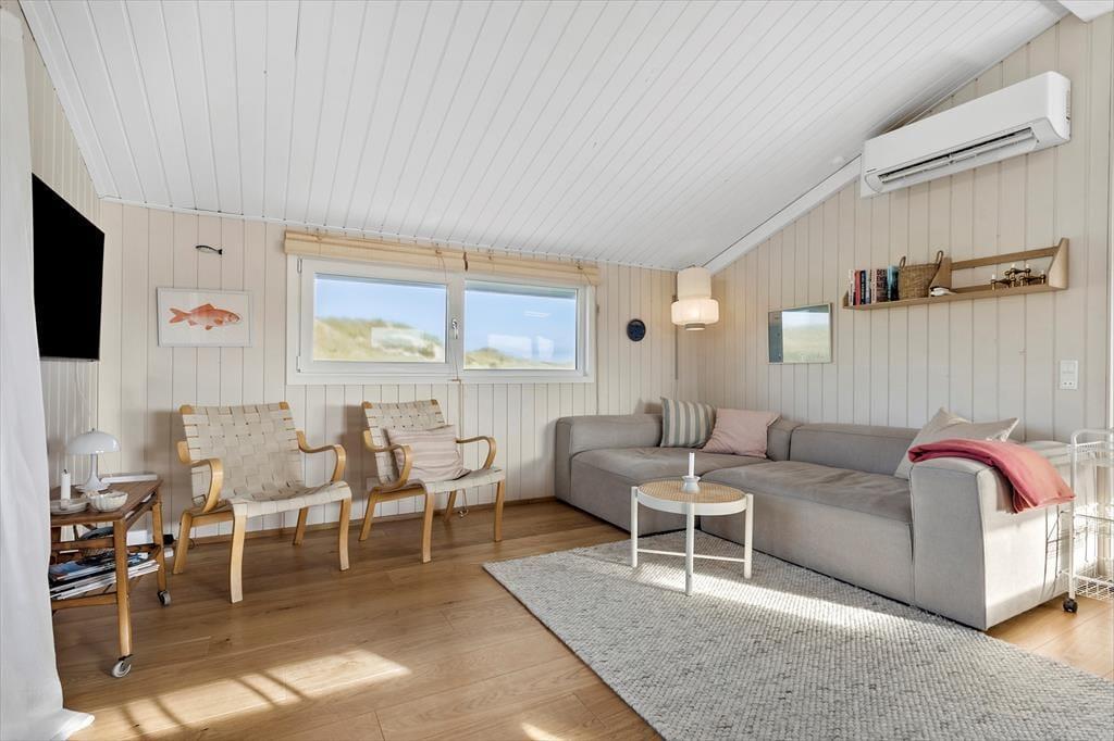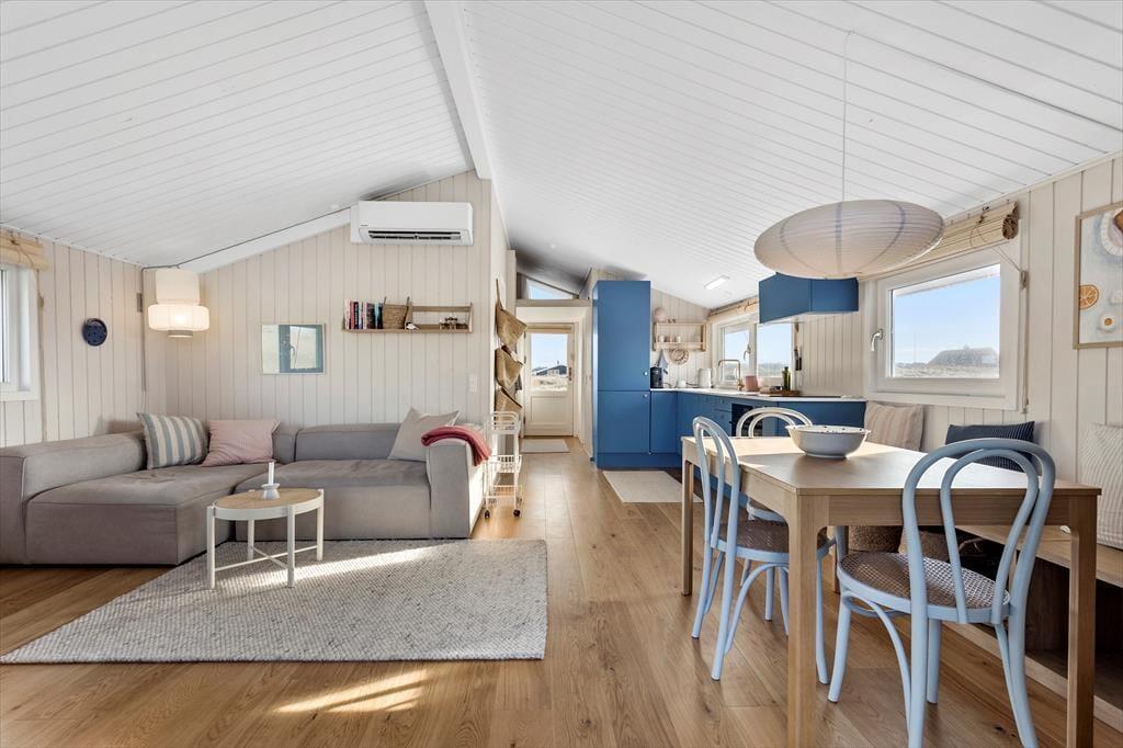 Allerede når du træder ind ad døren, mærker du den klassiske sommerhusstemning, der præger hele huset. Træværk og en enkel, harmonisk indretning skaber en hjemlig og hyggelig atmosfære, hvor det er let at falde til ro. Stue og køkken ligger i åben forbindelse, så du hele tiden kan holde snakken i gang, mens der kokkereres eller hygges i sofaen. De store vinduer lader det naturlige lys strømme ind og skaber forbindelse til de smukke omgivelser udenfor – og selv på en gråvejrsdag føles huset lyst og venligt. Badeværelset er lyst og flot indrettet, og i husets værelser er der tænkt på komfort og enkelhed, så du kan sove godt og vågne veludhvilet til endnu en dag i feriemodus. Her er plads til de nære stunder og gode grin – uanset vejret udenfor.