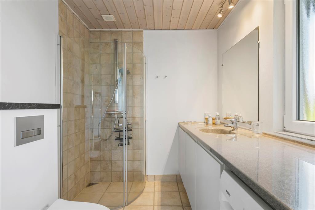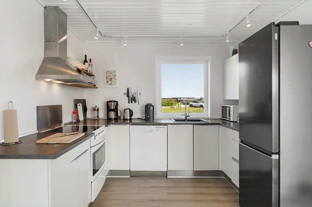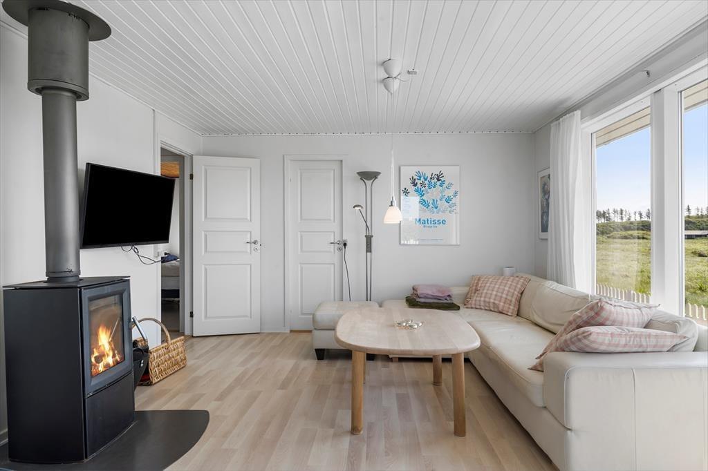 Når du træder ind ad døren, bliver du mødt af en lys og imødekommende atmosfære. Sommerhuset fremstår velholdt og gennemtænkt i sin indretning, og de tre gode værelser giver fine muligheder for både børnefamilier, venner eller par, der rejser sammen. De lyse vægge og det gennemgående naturlige lys skaber en rar stemning i opholdsrummet, hvor brændeovnen står klar til at sprede varme og feriehygge, når aftenen falder på. I stuen er der god plads til både brætspil, afslapning og fælles madlavning – og med køkken og stue i åben forbindelse bliver det let at holde samtalen i gang, uanset om du kokkererer eller slapper af i sofaen. Badeværelset er både funktionelt og pænt indrettet med sans for detaljen, og alt i alt mærkes det tydeligt, at her er tale om et sommerhus, der bliver passet godt på og brugt med hjertet.