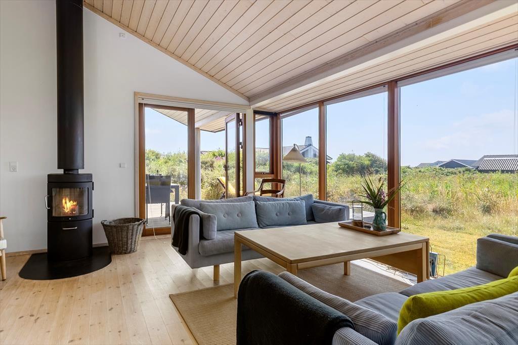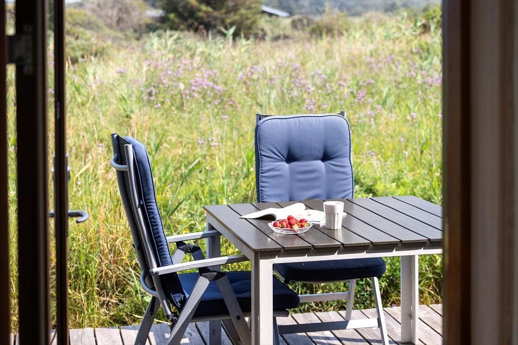 Den fredelige beliggenhed gør livet udenfor til en sand fornøjelse. Sommerhuset ligger godt tilbagetrukket, så du virkelig mærker, hvordan tempoet falder, og stilheden tager over. På den overdækkede terrasse er det oplagt at nyde morgenkaffen, mens solen stiger op over klitlandskabet og fuglene vågner i krattet omkring dig. Her er læ for vinden og plads til både afslapning og måltider i det fri – og på lune sommeraftener bliver terrassen hurtigt familiens foretrukne samlingspunkt. Når solen står højt, kan du finde en solplet med en liggestol og lade tankerne drive, mens du nyder duften af græs, lyden af havets brusen i det fjerne og den friske vestenvind. Det er ægte feriestemning – og det hele starter lige uden for døren.
