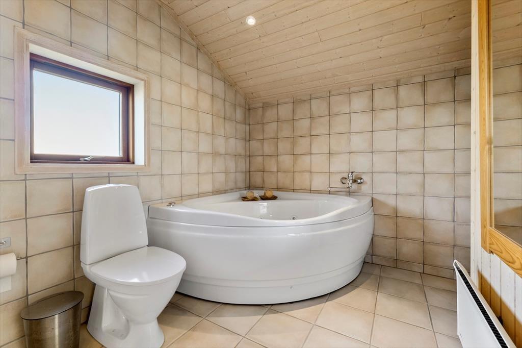 Indenfor venter dig en lys og indbydende indretning, hvor store vinduespartier trækker både dagslys og naturen helt ind i opholdsrummet. Det åbne og rummelige samlingspunkt mellem stue og køkken skaber en afslappet atmosfære, hvor I nemt kan være sammen om både madlavning og hyggestunder i sofaen. Her er det let at læne sig tilbage med en god bog, spille et brætspil med familien eller bare lade blikket vandre ud mod de grønne omgivelser. Det er svært ikke at føle sig hjemme med det samme. Huset har to badeværelser, og på det ene kan du forkæle dig selv med et afslappende spabad – perfekt til at runde dagen af med varme bobler og ro i sindet. Alt i alt danner de indendørs rammer den perfekte kulisse for både rolige feriedage og hyggeligt samvær – og hunden er selvfølgelig også velkommen.