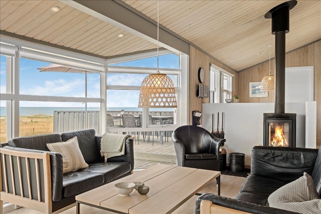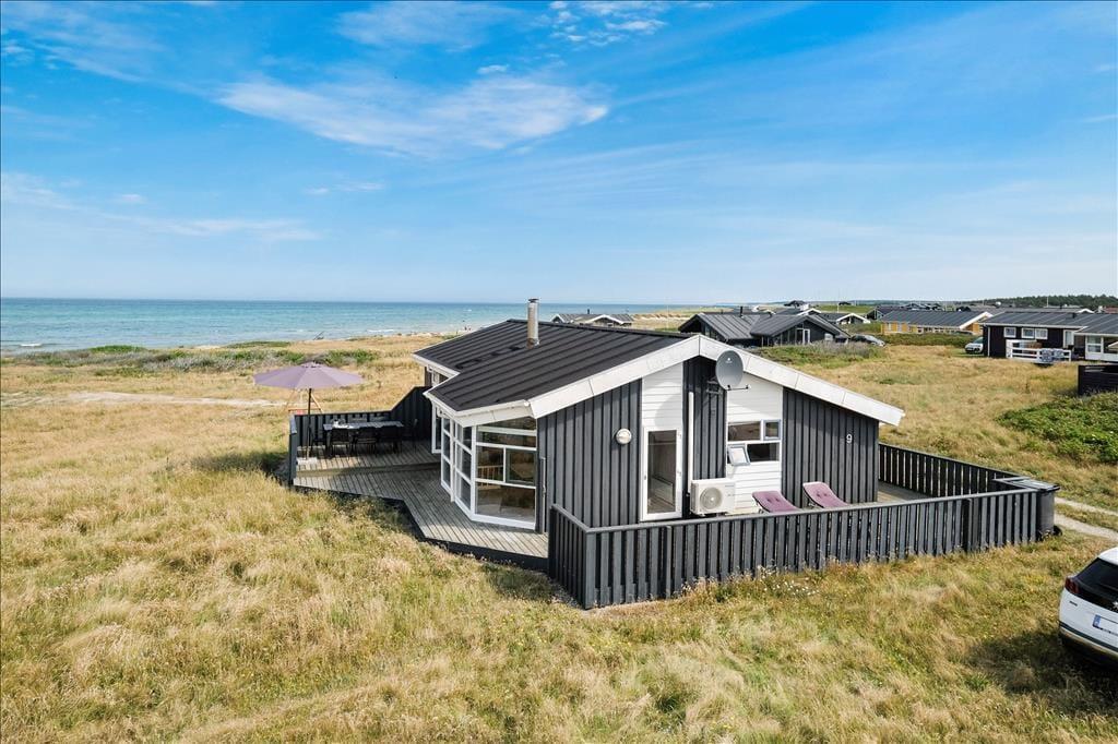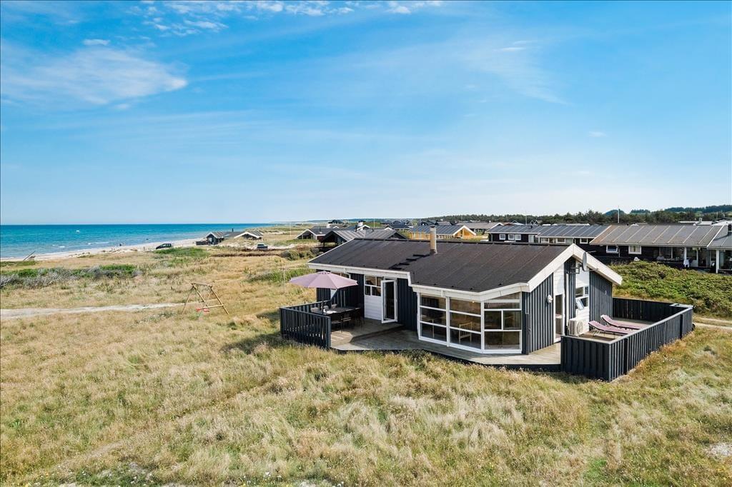 Dette sommerhus har en helt unik beliggenhed med direkte og uspoleret udsigt til det flotte og fascinerende Vesterhav. Hvis I altid har drømt om at sidde og kigge ud over vandet, mens ilden knitrer i brændeovnen, så er dette sommerhus helt perfekt. Huset har installeret en varmepumpe, hvilket er med til at reducere energiforbruget. Sommerhuset er velholdt og godt udstyret med bl.a. vaskemaskine, tørretumbler og trådløst internet, så I er sikret en dejlig og afslappende ferie, og trænger I til lidt ekstra luksus, kan I fylde spabadet med varmt vand og tænde op i saunaen. Med tre soveværelser, hvoraf det ene med to køjesenge kan bruges som børneværelse, er her plads til hele familien. Sommerhuset kan også sagtens bruges af to par, som gerne vil have en rolig og fredelig ferie med god plads.