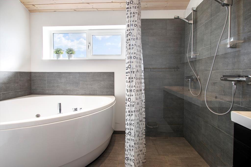Sommerhuset er indrettet med et åbent køkken mod stuen og spisestuen, så hele familien kan være sammen om de fleste aktiviteter fra madlavning over kortspil og til afslapning i sofaen med en god film. De tre store soveværelser har alle dobbeltsenge, som kan skilles ad, hvis man ønsker det, og med to store badeværelser, hvoraf det største haret stort familiespabad (430 liter vand) samt to brusere, får man ikke probelmer med kø om morgenen. Derudover har sommerhuset en ekstra vask og vaskemaskine og tørretumbler i entreen og en skøn hems med et dejligt lys fra de store ovenvinduer, en dobbelt sovesofa og tv; det helt ideelle rum til større børn og teenagere. Sommerhuset er moderne indrettet med stilfulde møbler. Til familiens legebørn er derbåde et poolbord samt et airhockeybord i stuen, og er man til de mere stille aktiviteter, kan man tage en stille stund foran de store vinduer og nyde udsigten over det smukke landskab og Vesterhavet. Sommerhuset har en del moderne udstyr, som både gør ferien nem og afslappet, bl.a. en varmepumpe med køl, som hele tiden sikrer en behagelig temperatur, køkkenet har to ovne, der er i alt fire fjernsyn, og over hele huset kan man bruge det trådløse internet, hvis man husker pc eller tablet hjemmefra. Alt i alt byder dette skønne og moderne sommerhus på de bedste rammer for en dejlig ferie i Nordjylland.