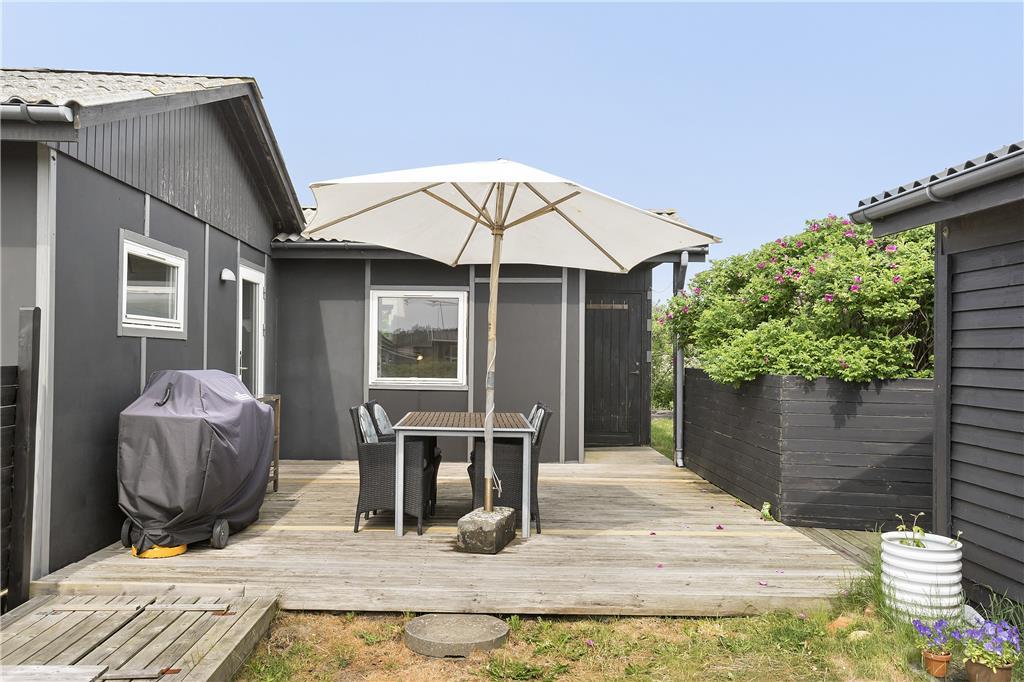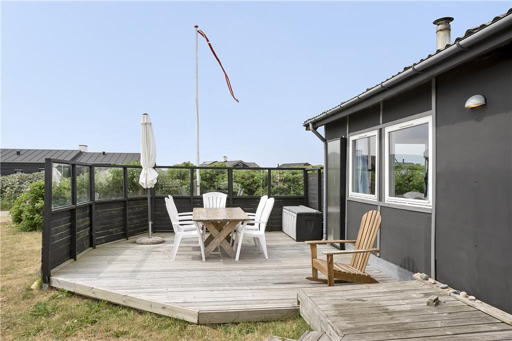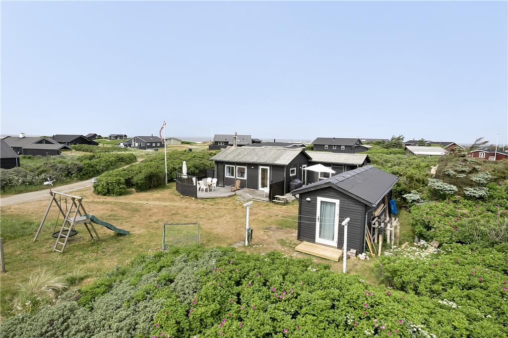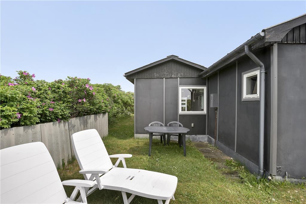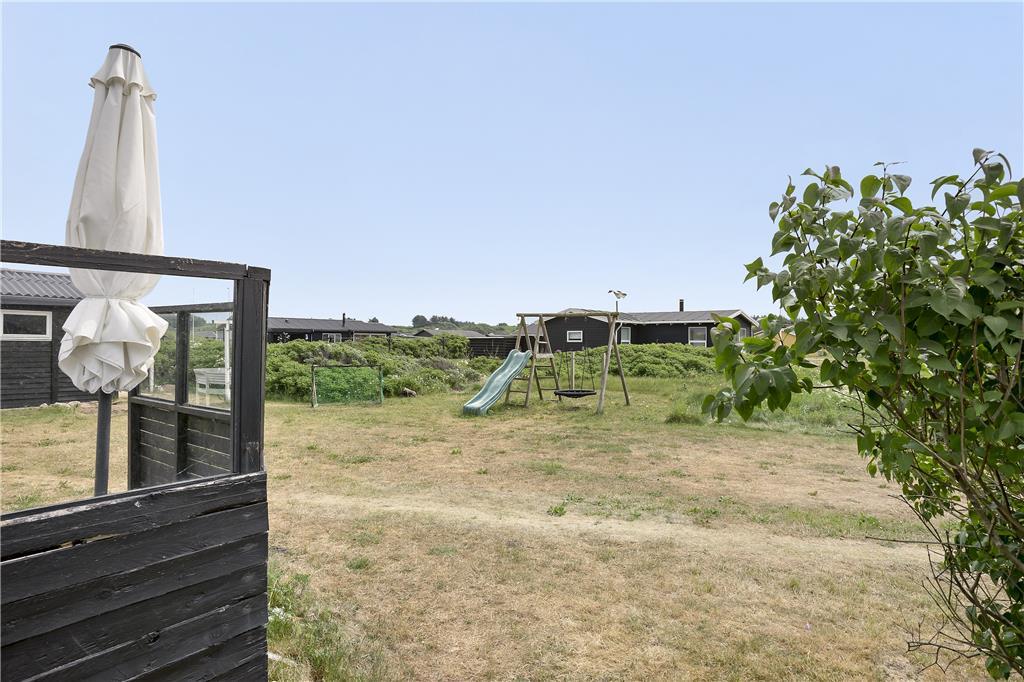Grunden er en klitgrund med gode muligheder for boldspil og leg. Gynge og rutsjebane skal nok fryde de mindste gæster. Terrasserne omkring huset er indrettet med borde og stole, så der er mulighed for at indtage alle måltider udendørs, hvis man ønsker det. Der er oven i købet et rækværk, som sikrer både læ og sparsomt indkig, når privatlivet skal nydes.
