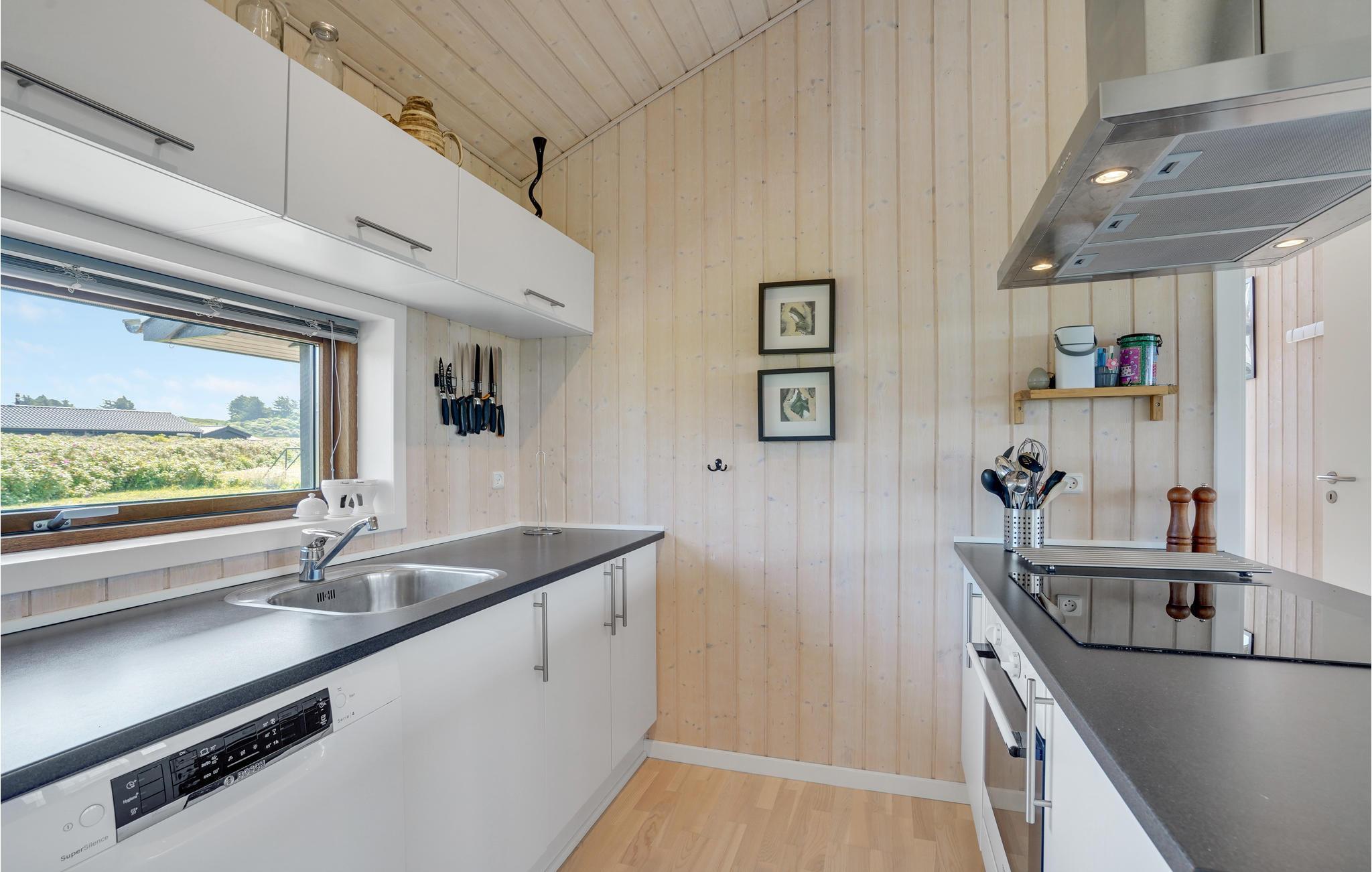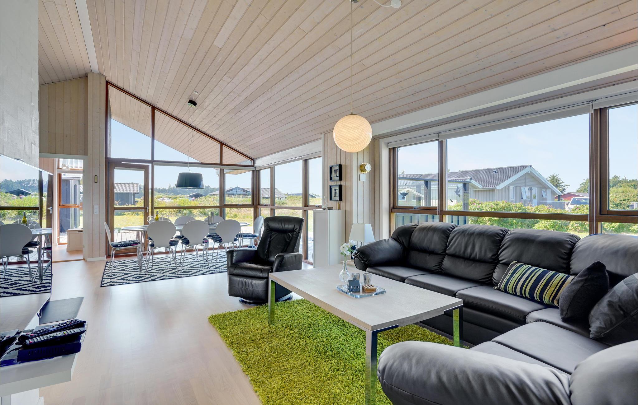 Velkommen til dette indbydende sommerhus, der kan rumme op til 6 personer med 3 soveværelser og 2 badeværelser. Det byder på alle moderne bekvemmeligheder, og især den rummelige opholdsstue er designet, så I kan tilbringe dejlige timer sammen her. Sæt jer godt til rette i sofaerne, lyt til den knitrende ild i pejsen og nyd udsigten fra de store vinduer. Der er et spabad til 2 personer, hvor I kan slappe af og komme helt ned i gear.