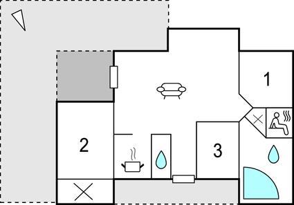 Badeværelse (nr. 1) - WC. Varmt og koldt vand. Bruser