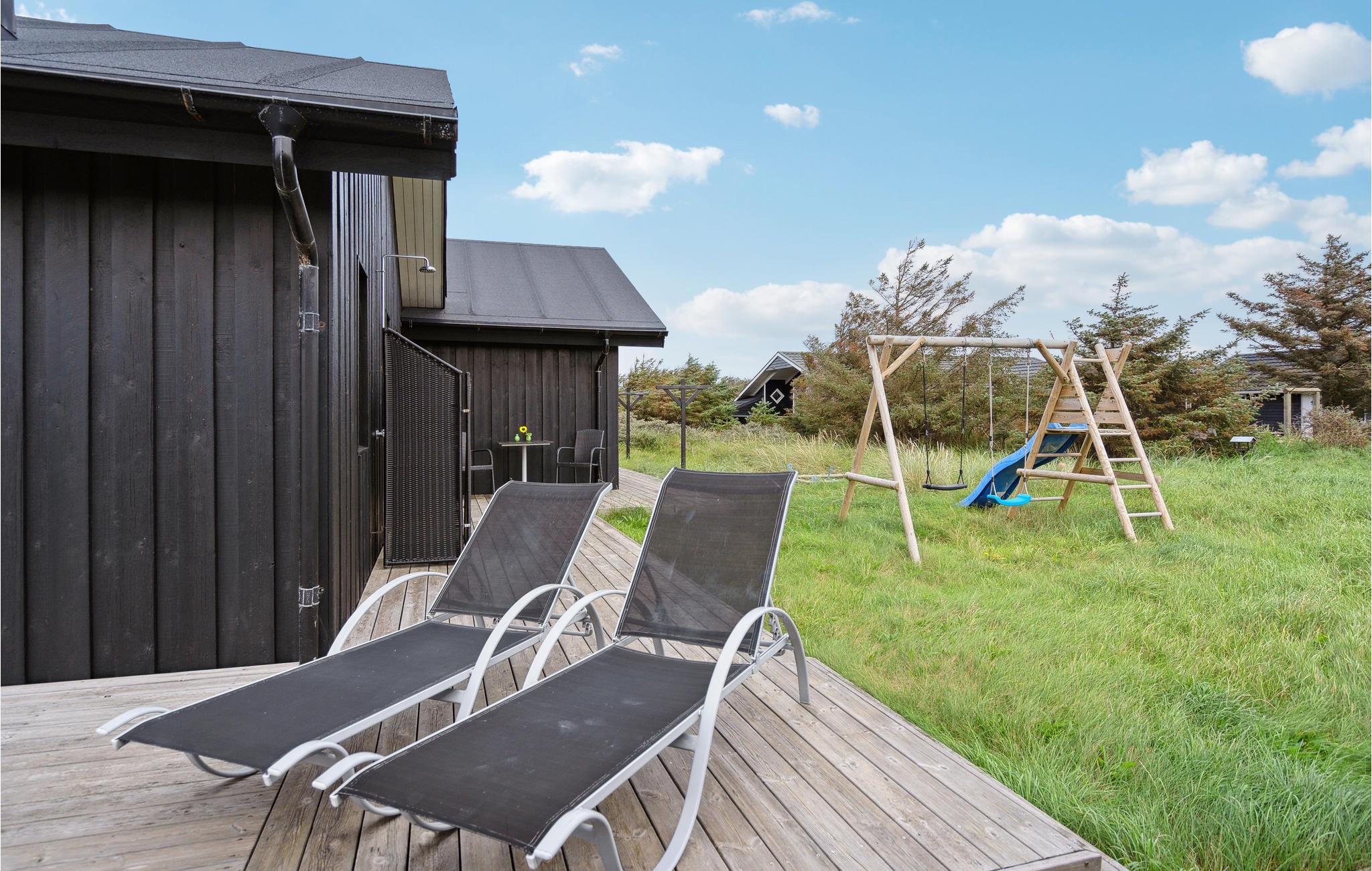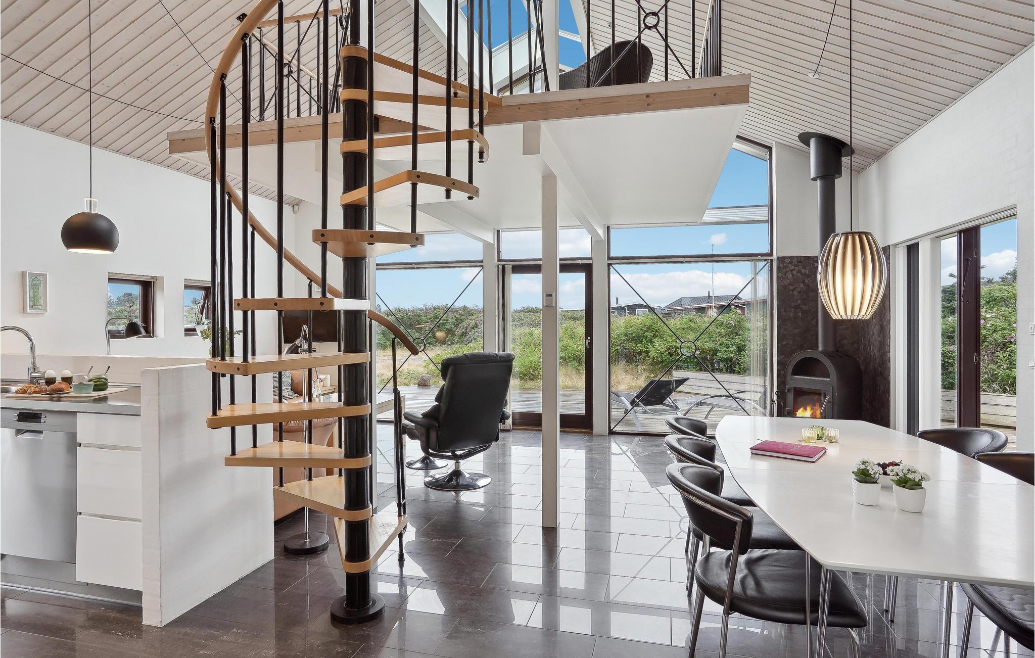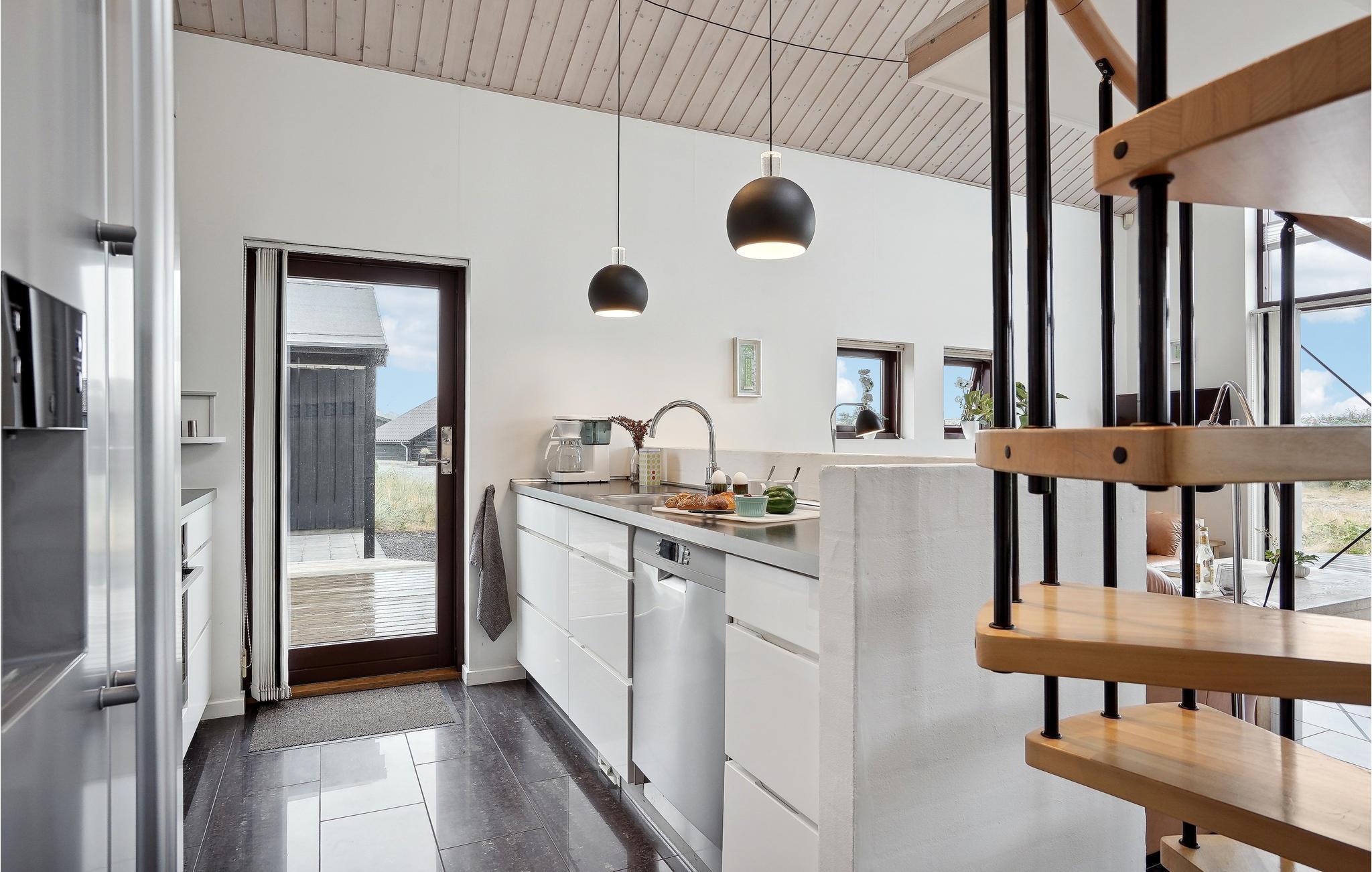 Glæd jer til en fantastisk ferie i dette lyse og indbydende sommerhus. De store vinduespartier sørger for smukt naturligt lysindfald, og lader jer samtidig kigge ud på den smukke natur, der omgiver huset. Fra stuen går en vindeltrappe op til ekstra opholdsstue på "førstesalen" hvor man kan sidde og nye den smukke havudsigt og solnedgangen over Vesterhavet. Efter en aktiv dag på stranden, kan I se frem til at slappe af i spabadet og komme helt ned i gear. Rundt om huset er der fine terrasser hvor udelivet kan nydes hele dagen. Huset er en perle, der henvender sig til den kræsne kunde, der værdsætter lækker indretning og god kvalitet.