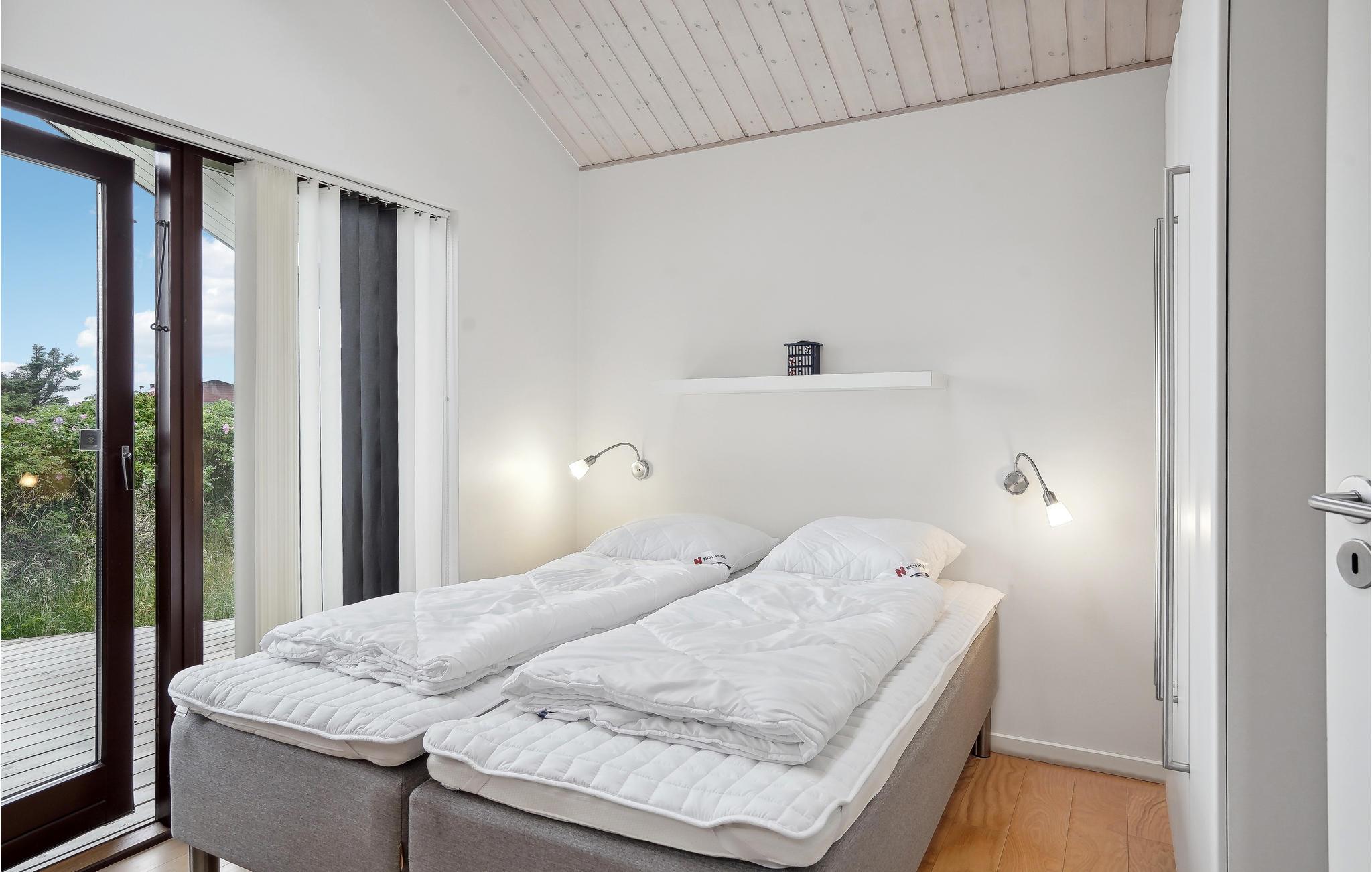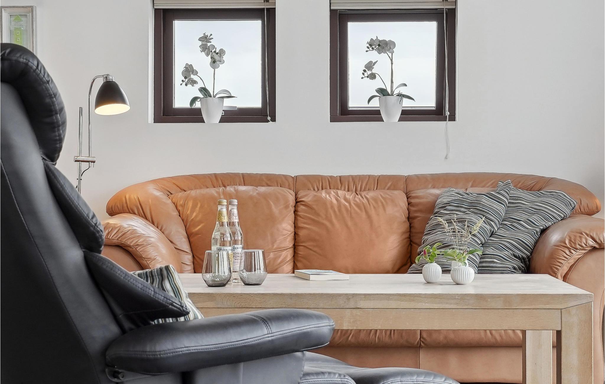Lyst og indbydende feriehus ved Nørlev Strand med spabad, sauna og smuk havudsigt.