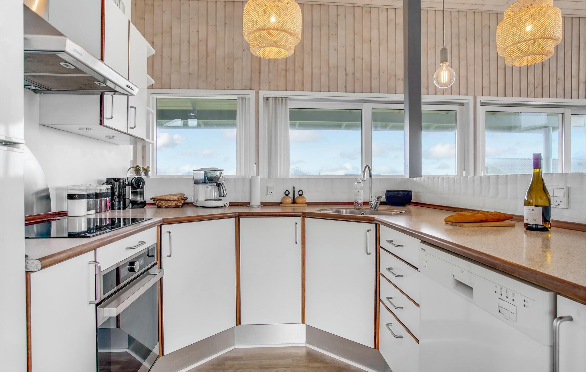 Kun en kort gåtur fra den smukke sandstrand ved Nørlev Strand og de beskyttede indlandsklitter har dette hus alt hvad I behøver til en afslappende dag. Den åbne opholdsstue er lys og venlig, med højt til loftet og store vinduespartier, der overbader rummet med naturligt lys. Find jer godt til rette i sofaen og nyd den hyggelige varme fra pejsen. Det veludstyrede køkken giver jer mulighed for at tilberede jeres livretter og nyde dem sammen ved det smukke spisebord. sommerhuset har moderne faciliteter som spabad og sauna for at give jer ekstra afslapning.