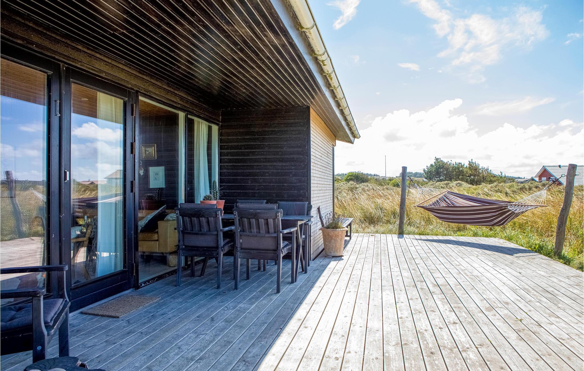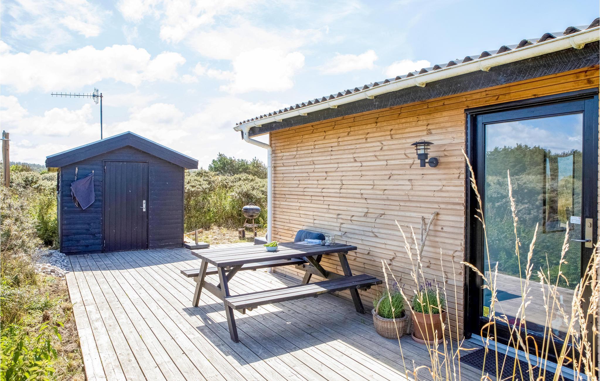 Charmerende træhus nær Nørlev Strand med terrasse og moderne faciliteter.
