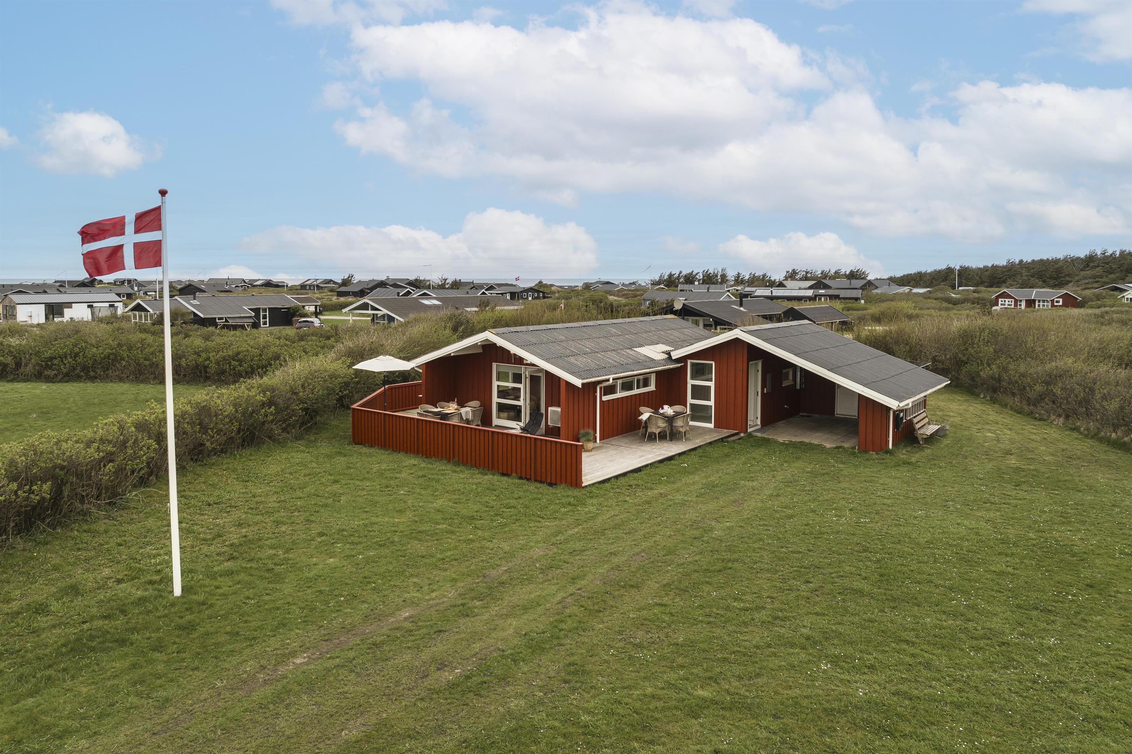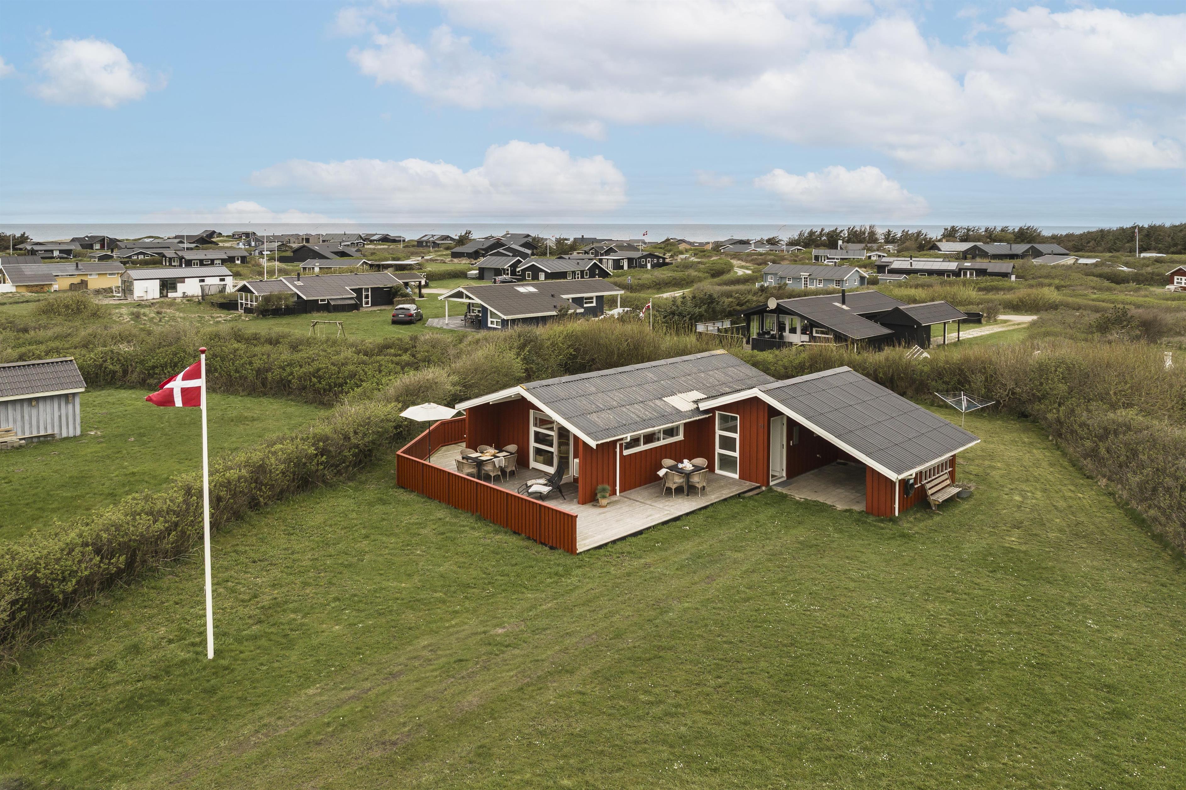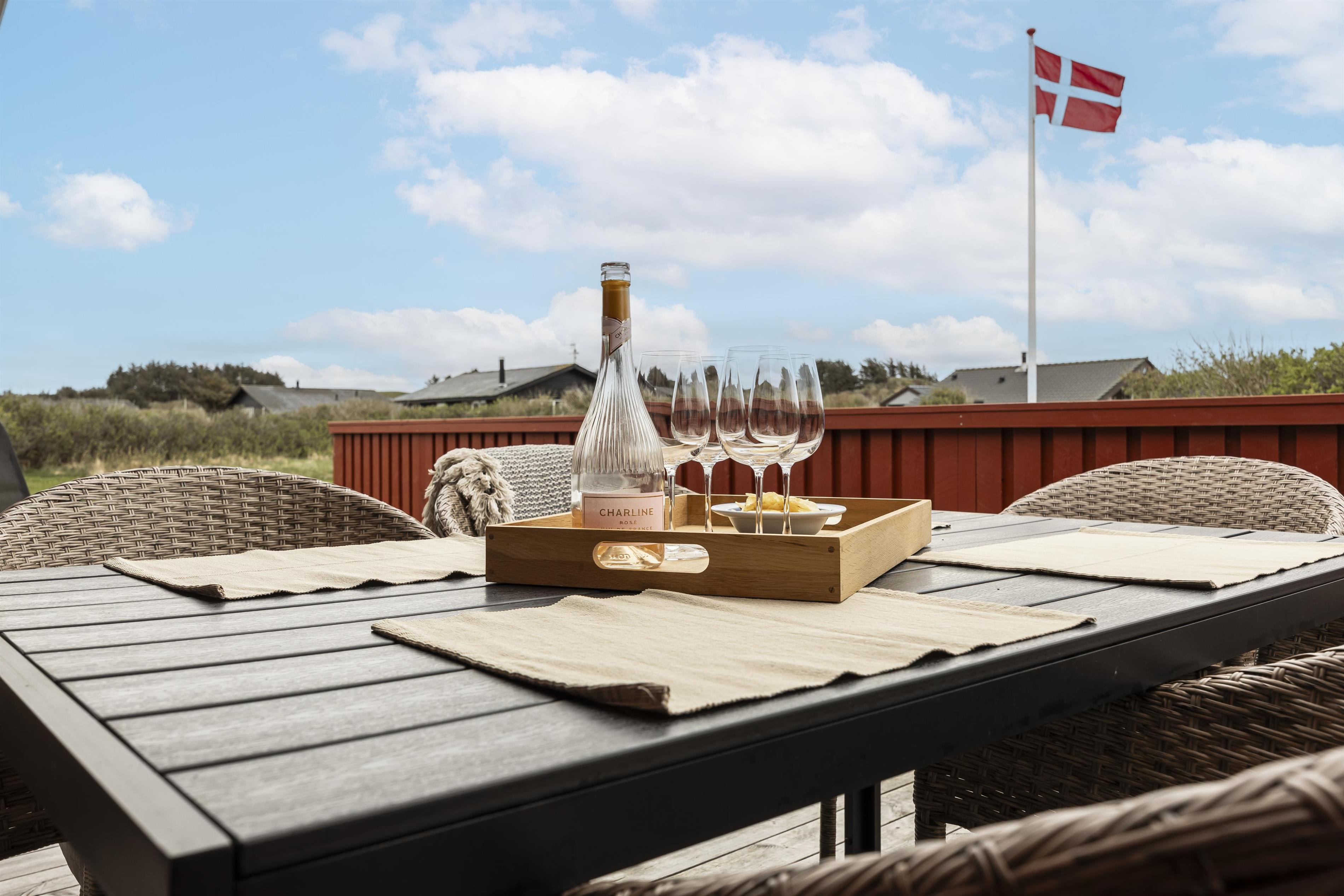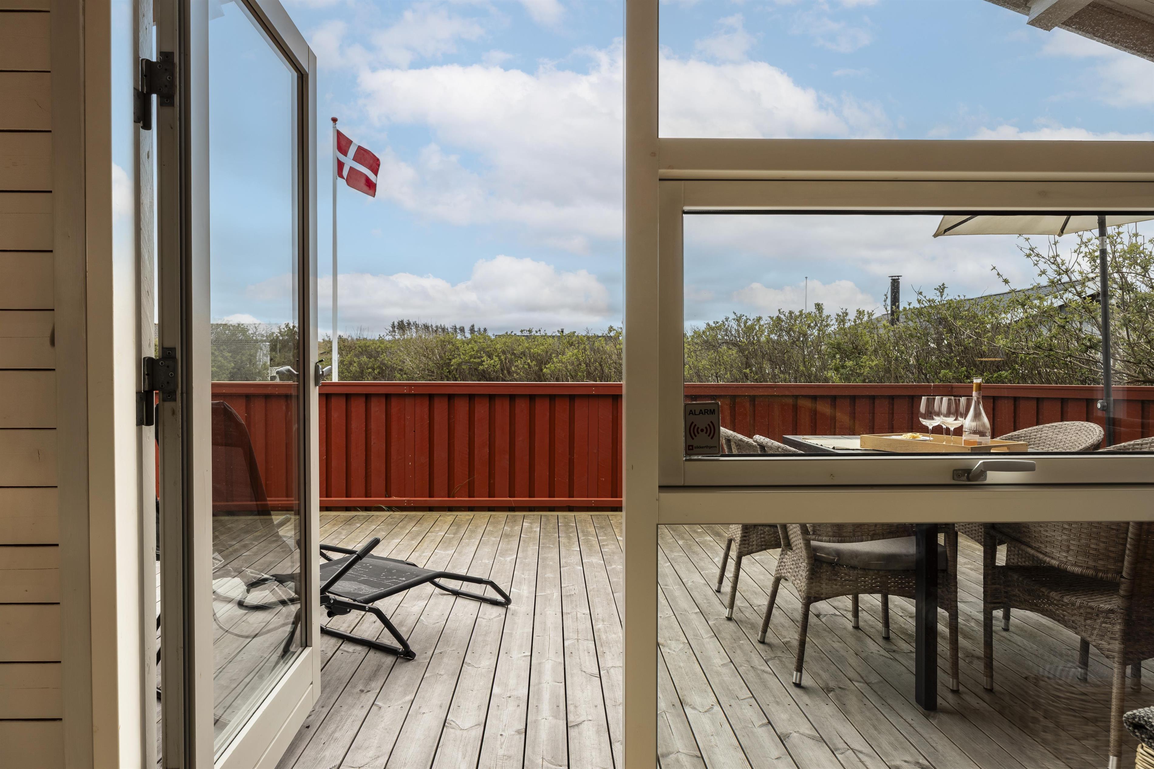 Rundt om huset finder du flere skønne terrasser, hvor solen kan følges hele dagen. Her kan du læne dig tilbage med en god bog, nyde grillmad i aftensolen eller bare slappe af i en liggestol – helt ugeneret. Huset ligger dejligt tilbagetrukket fra vejen, så du får en fredelig ferieoplevelse i fuldstændig ro og med masser af privatliv. Der er på grunden også god plads til boldspil, et slag kroket eller kongespil - kun fantasien sætter grænser.