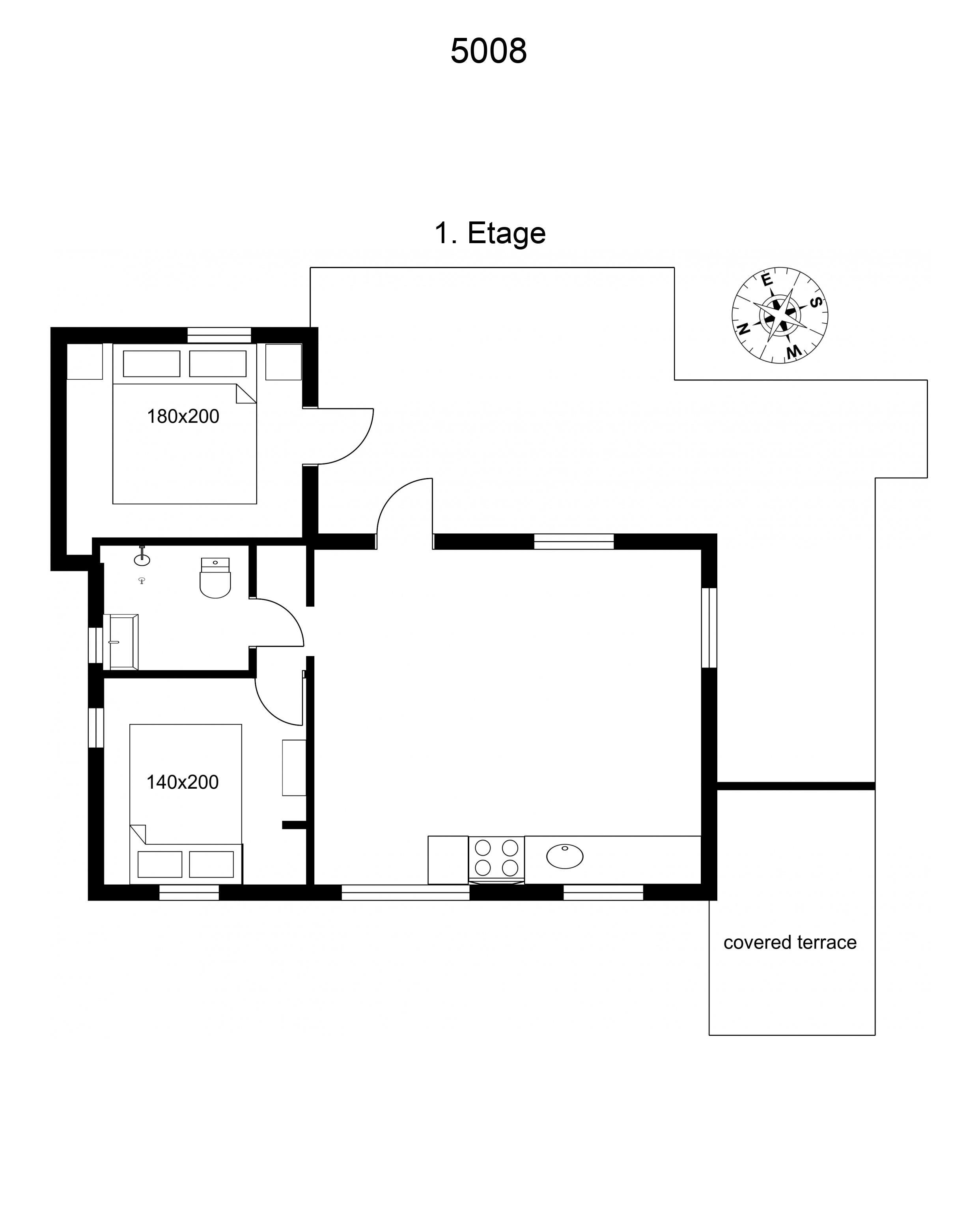 Værelse 1: 2 sovepladser (dobbeltseng 180x200 cm)