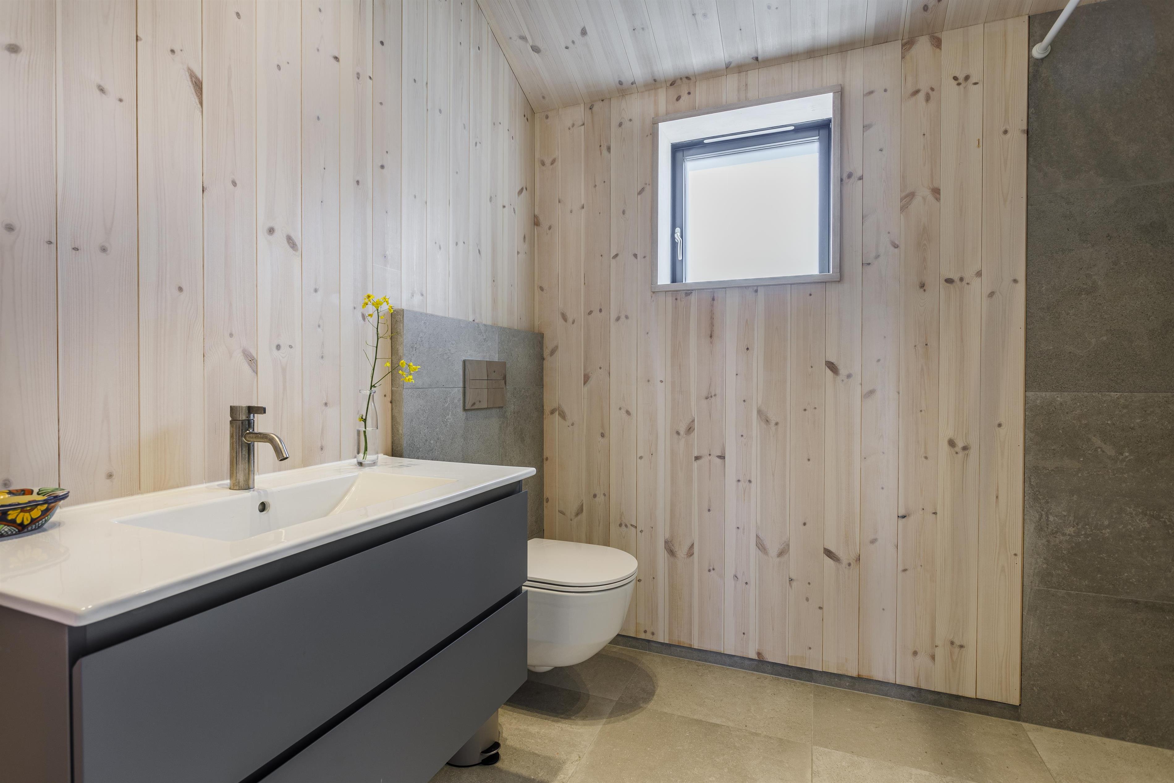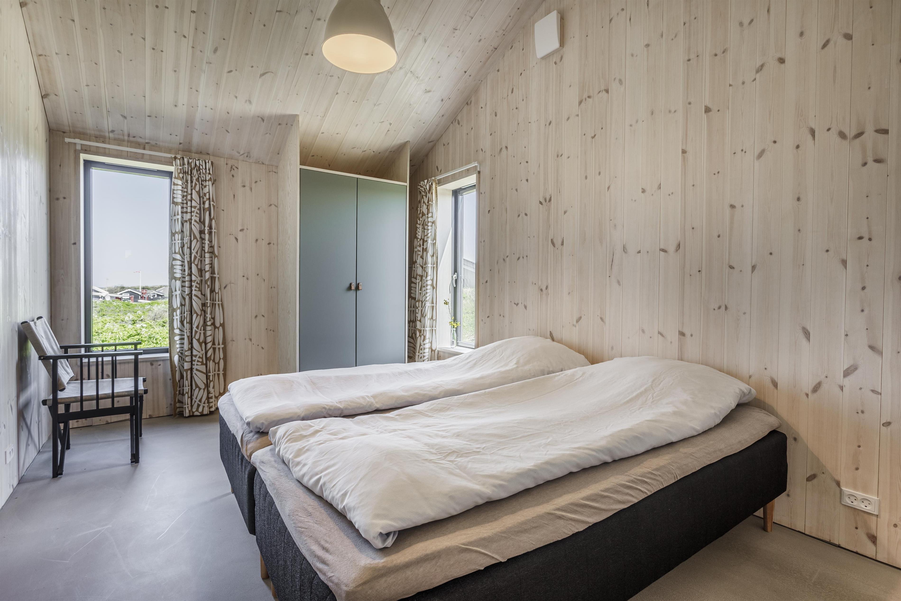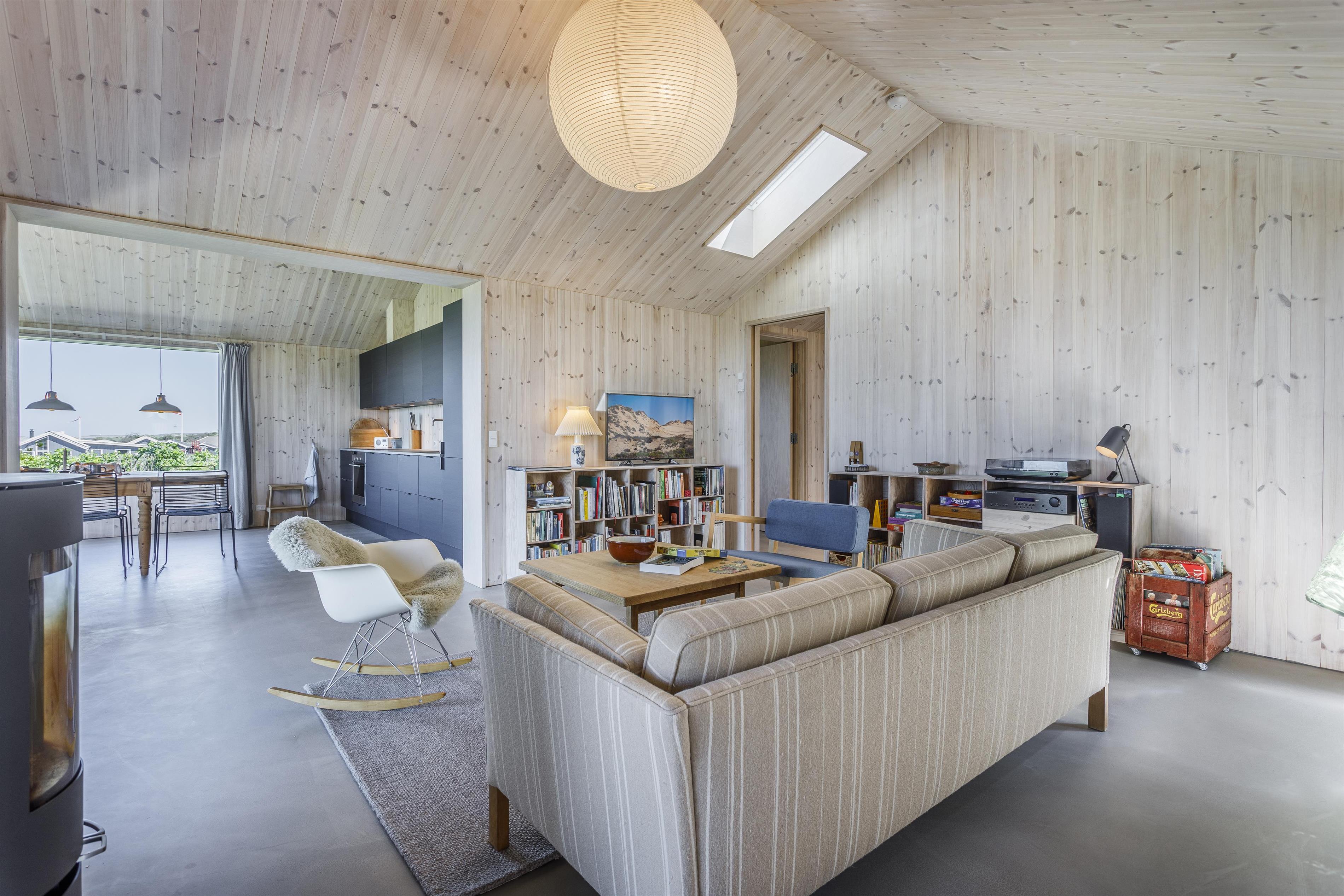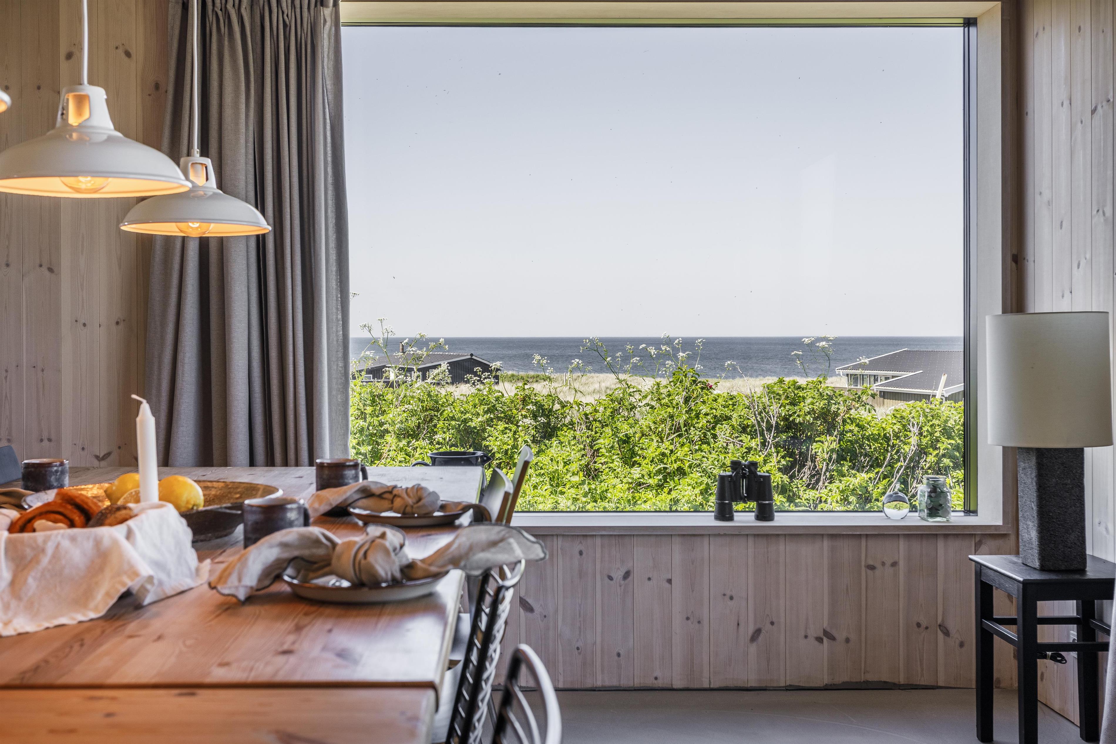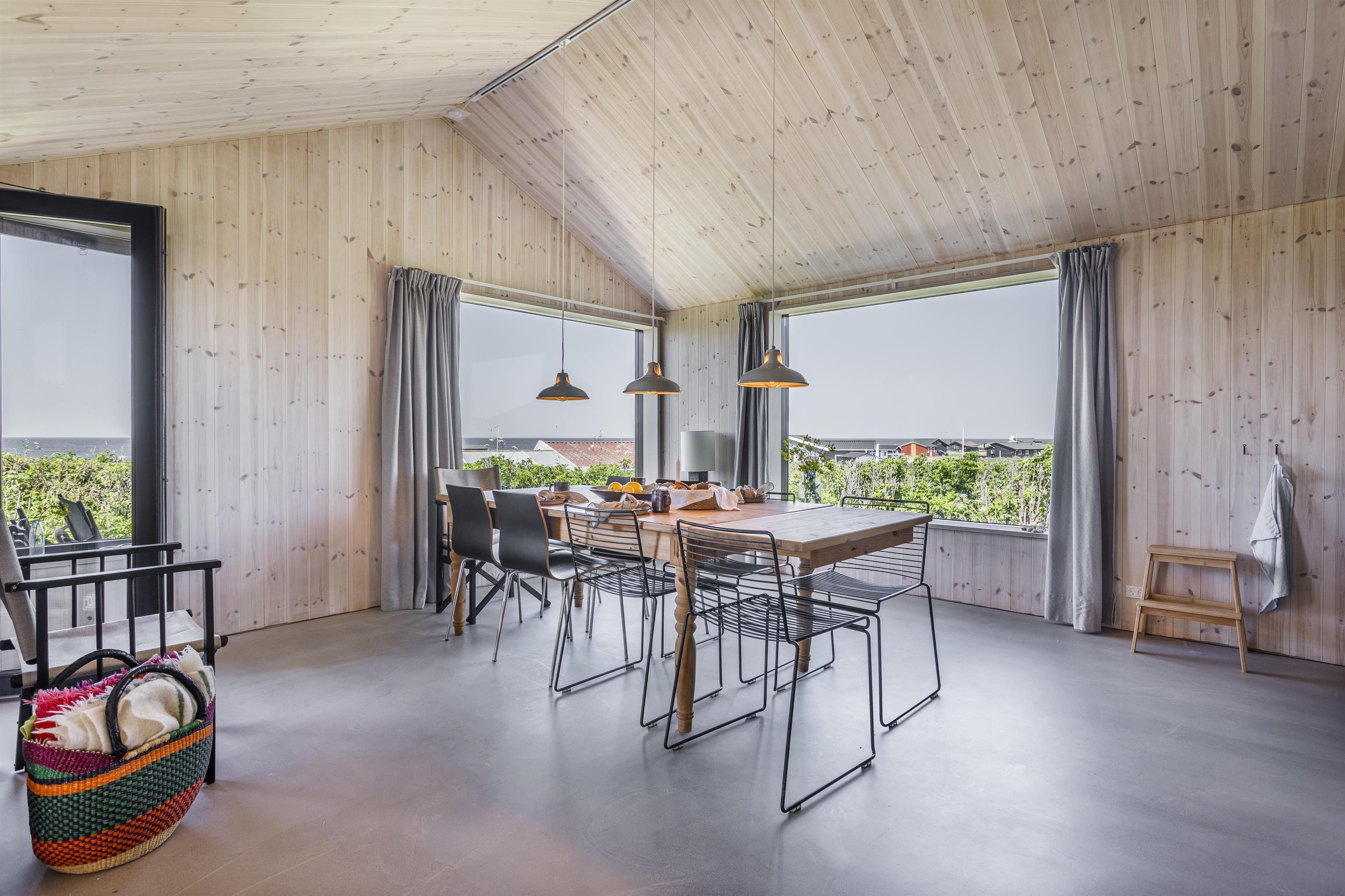 Huset er velindrettet med en dejlig rummelig entré, stor opholdsstue og køkkenalrum, samt 3 store soveværelser, alle med dobbeltsenge og havkig. Husets to badeværelser er placeret i forbindelse med soveværelserne. Fra masterbedroom er der direkte adgang til badeværelse. Husets samspil med den omgivende natur har haft højste prioritet i den rumlige disponering af huset. Alle rum er meget rummelige og med loft til kip. De store panorama vinduer i masterbedroom, opholdsstue og køkkenalrum, forstærker samspillet mellem rummene og naturen. Vinduerne er som store malerier i de skønne rum, hvor vejrliget bevirker, at ikke to dage er ens, hvad udsigten angår. Fra opholdsrummene er der adgang til to dejlige terrasser, en overdækket vestvendt terrasse og en sydvendt åben terrasse. Her kan I flytte rundt, alt efter sol og vind.