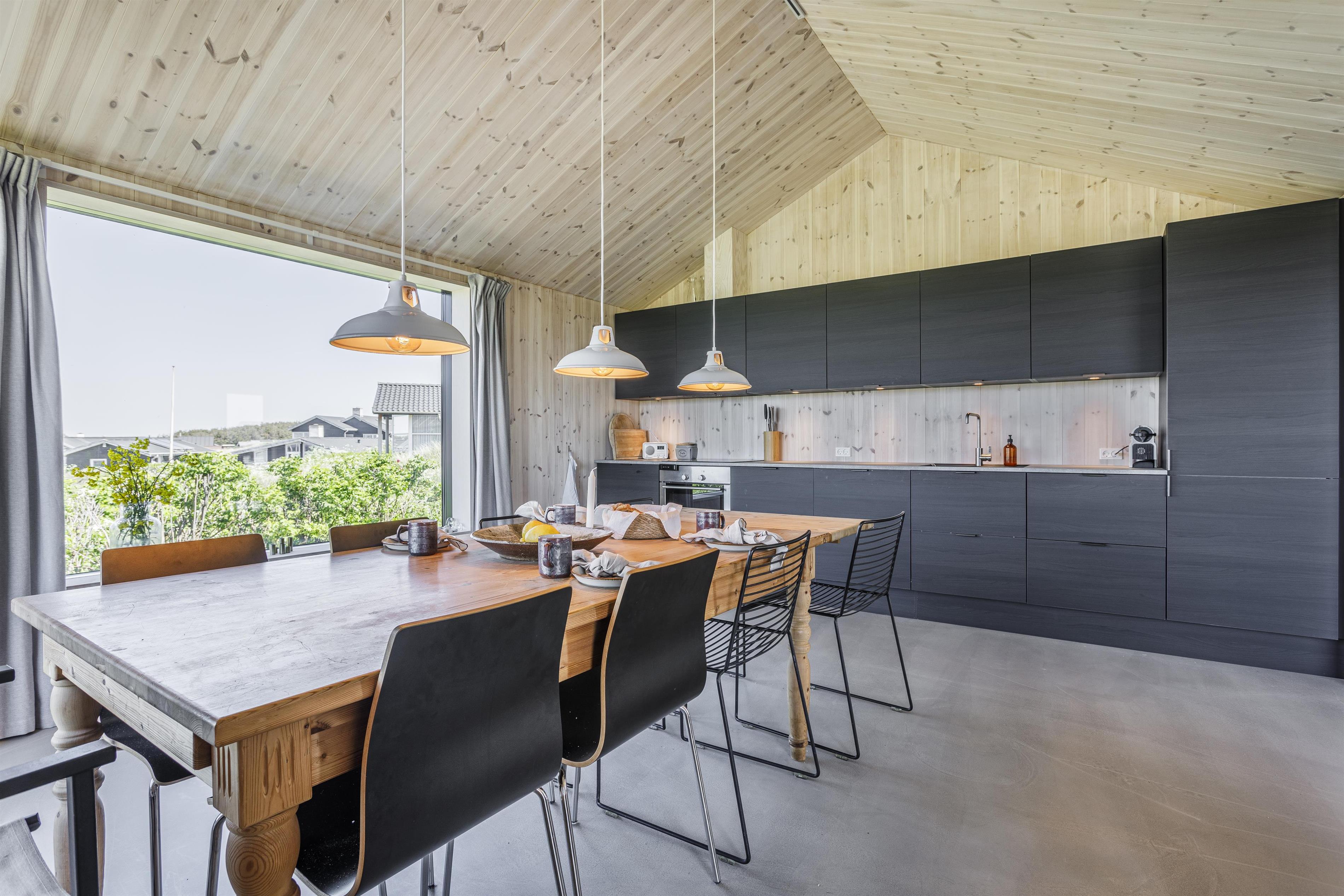På de kølige aftener, kan I tænde op i brændeovnen og nyde varmen og udsigten fra opholdsstuen.