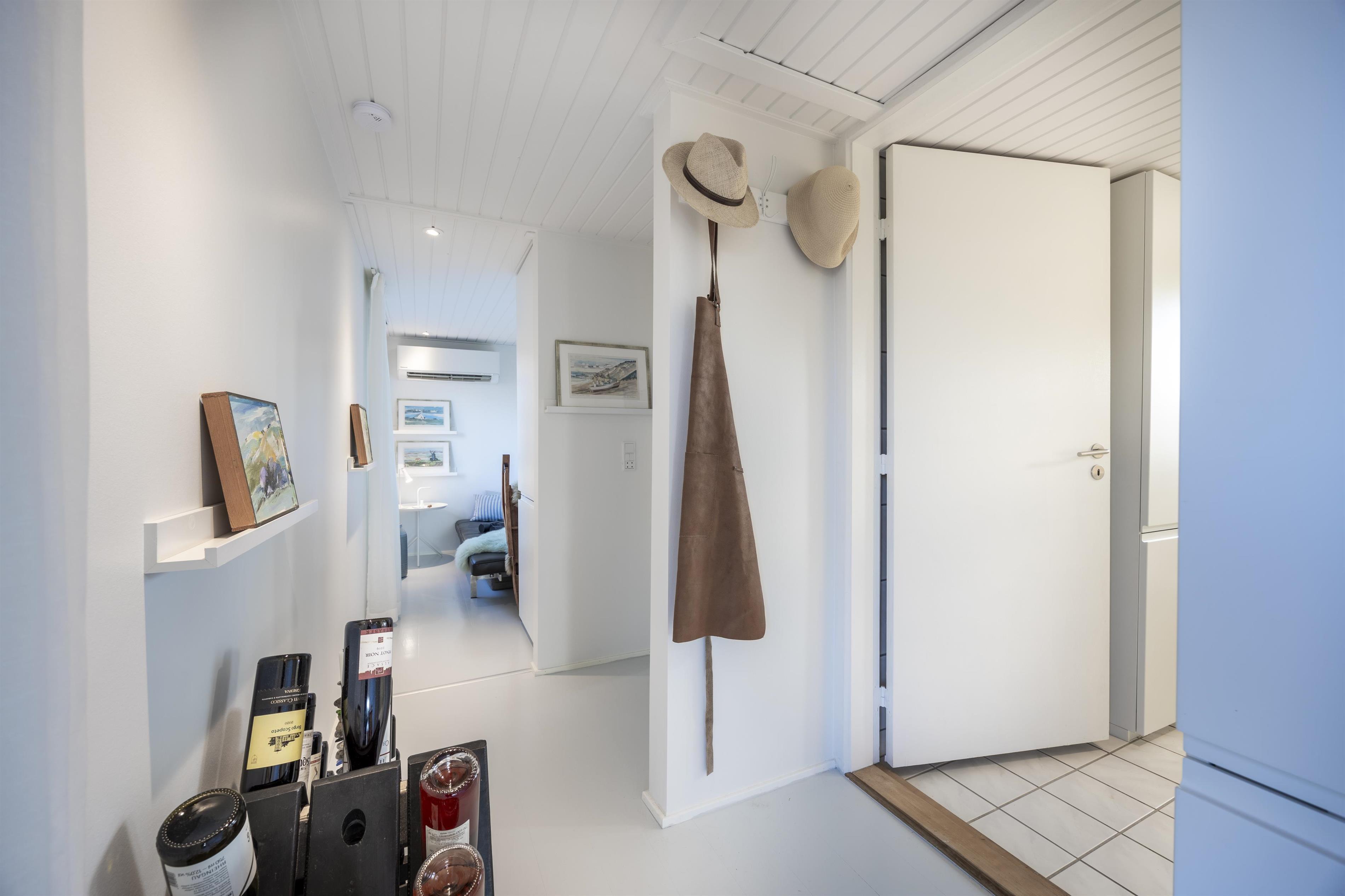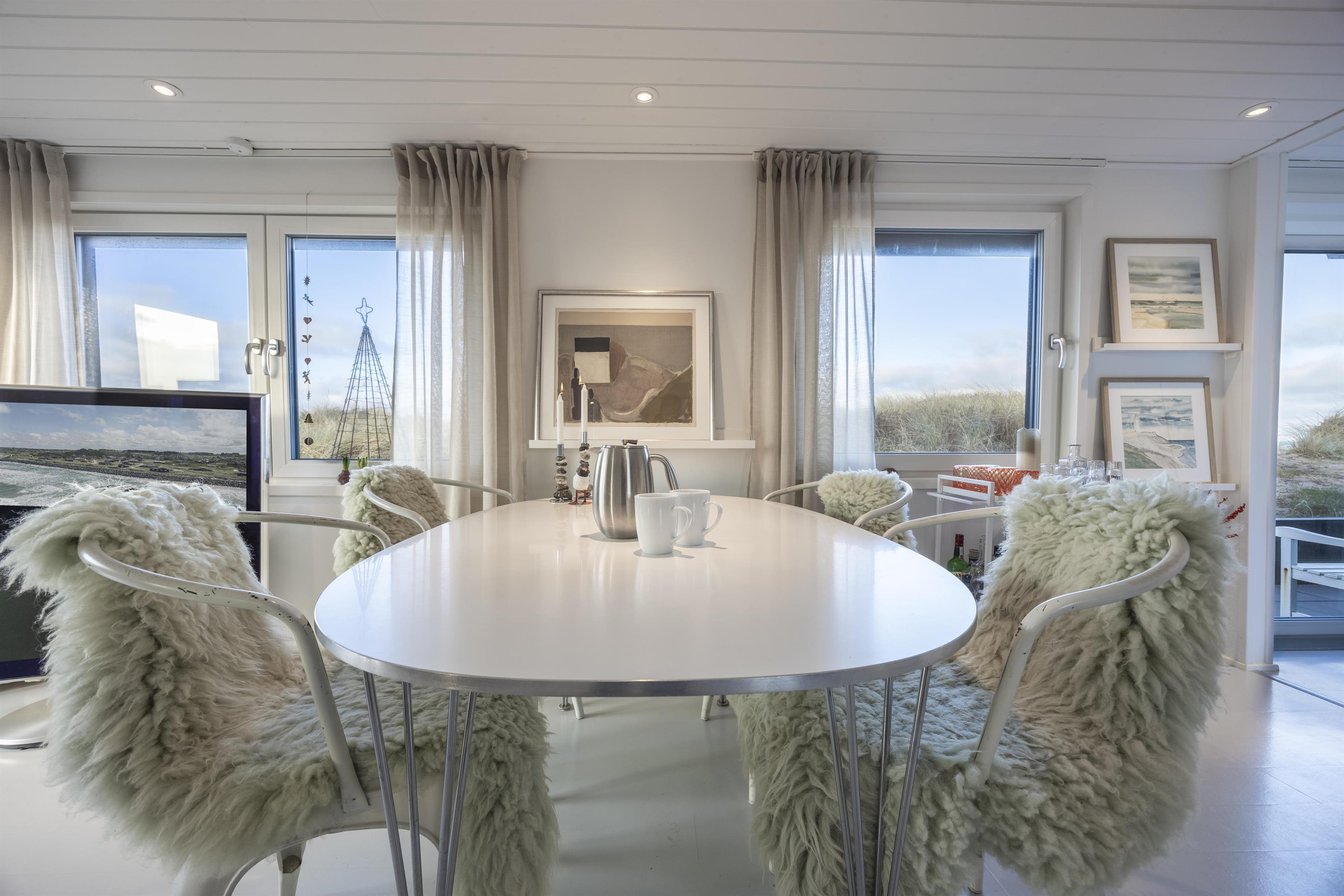 Huset byder jer velkomne i et velfungerende og overdækket vindfang, hvor der er plads sko og jakker, inden I træder direkte ind i husets lyse og indbydende opholdsrum. Her mødes I af et dejligt køkken i åben forbindelse med spiseafdeling og et hyggeligt sofahjørne. Fra opholdsrummet har I en fantastisk udsigt til klitterne og det brusende Vesterhav, og lyset strømmer ind gennem de store vinduer.
