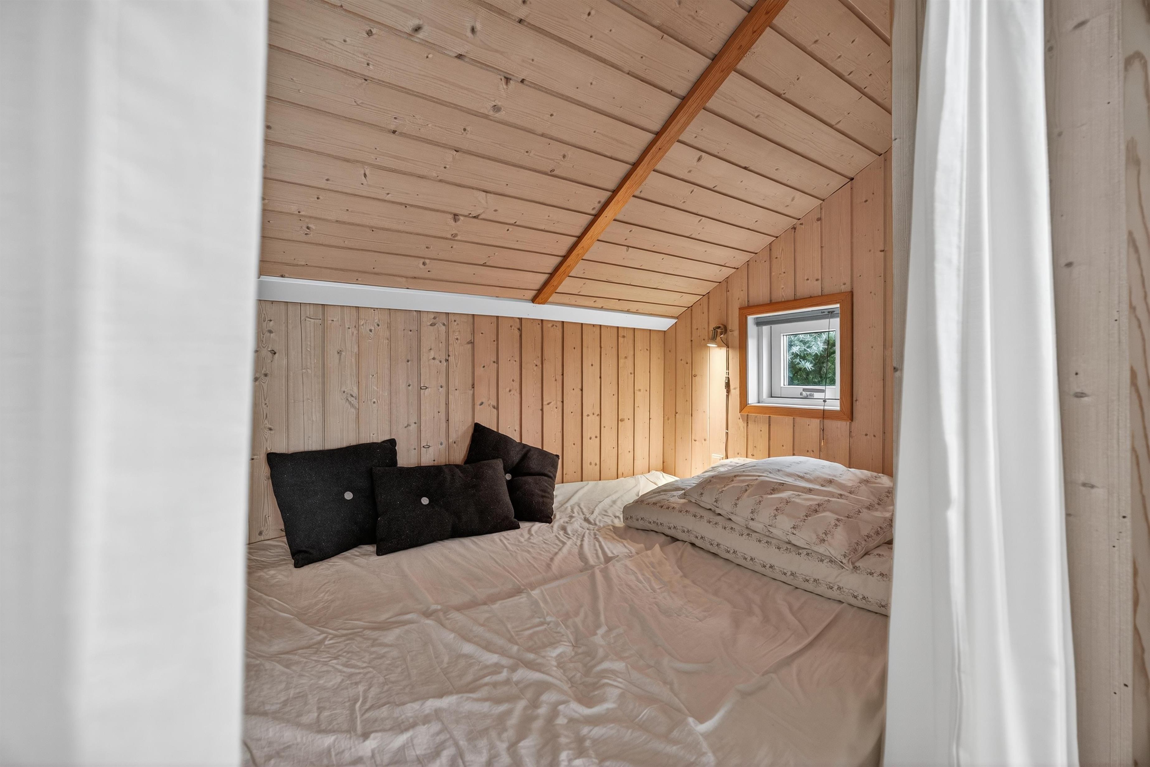 En hyggelig alkove med to ekstra sovepladser fungerer som børnenes helt egen lille hule – et sted fyldt med eventyr og tryghed.
