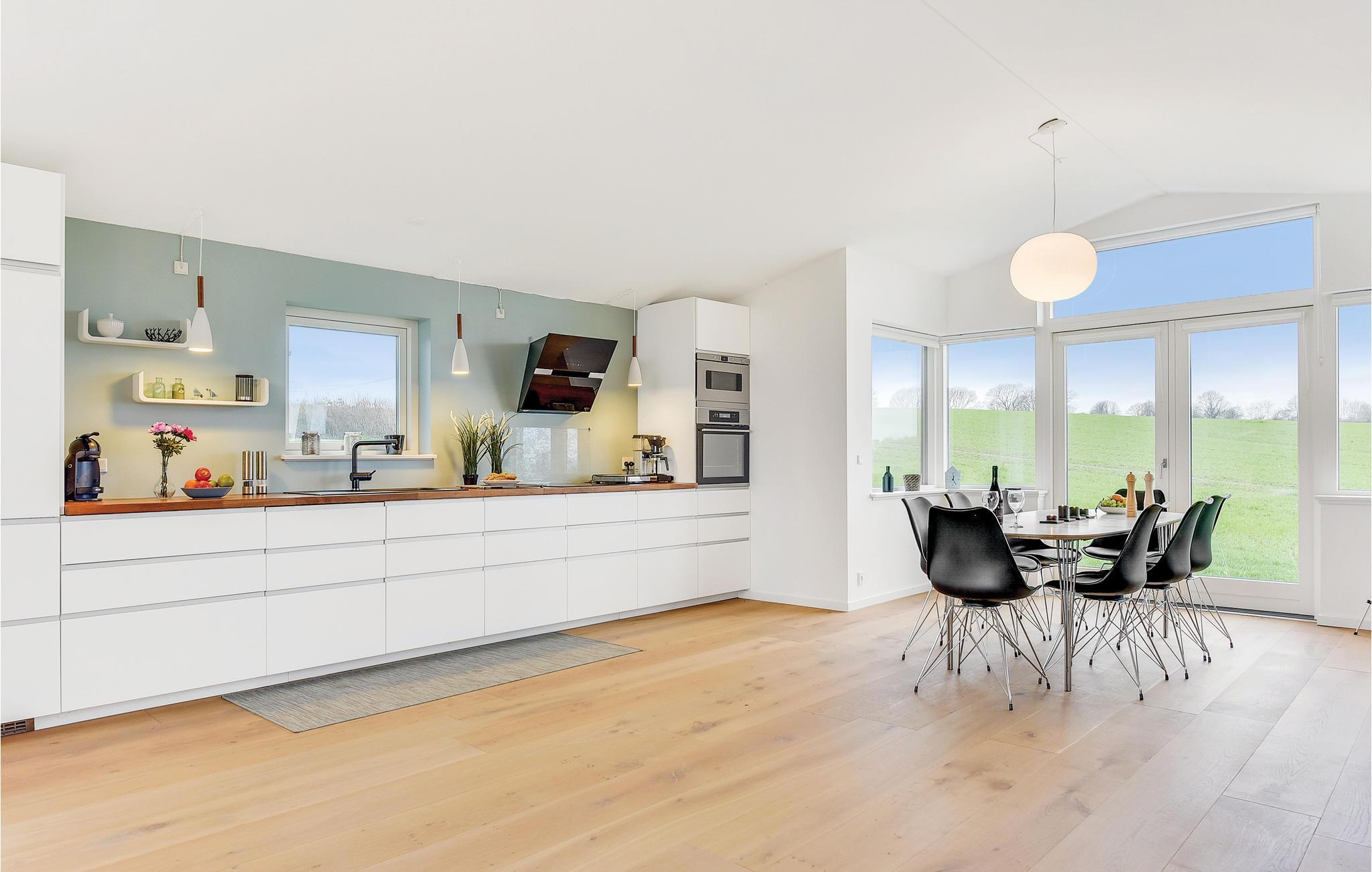Dette dejlige feriehus er beliggende i det rolige område ved Nr. Kettingskov Strand lige ud til åbne marker. Fra feriehuset og terrassen er der en fantastisk udsigt over Lillebælt. Her kan I følge med i den maritime trafik på havet. Feriehuset har en god indretning, og det store åbne køkken alrum byder på plads udover det sædvanlige. Fra spiseafdelingen og opholdstuen kan I følge med i aktiviteterne i køkkenet. I stuen er der en brændeovn, som I kan benytte på de kølige dage og aftener. Huset har to rummelige soveværelser samt en hems med gode adgangsforhold og god højde. I værelsesafdelingen er der både et badeværelse og et gæstetoilet. Over alt i huset kan I benytte den trådløse internetforbindelse. Til huset hører flere dejlige terrasseområder. Således er det altid muligt at finde en dejlig lækrog.
