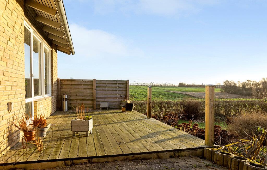 Udenfor er der en stor, velholdt terrasse med en vidunderlig udsigt over de omkringliggende marker. Slap af i den friske landluft og brug den store have til at lege med børnene. Korte gåture i området sikrer også fysisk velvære.