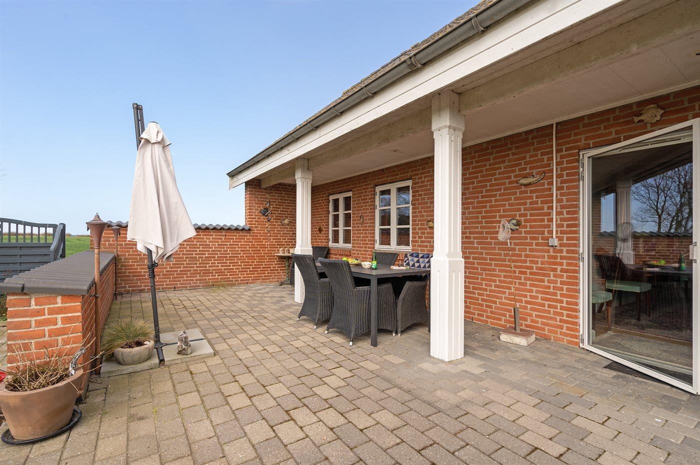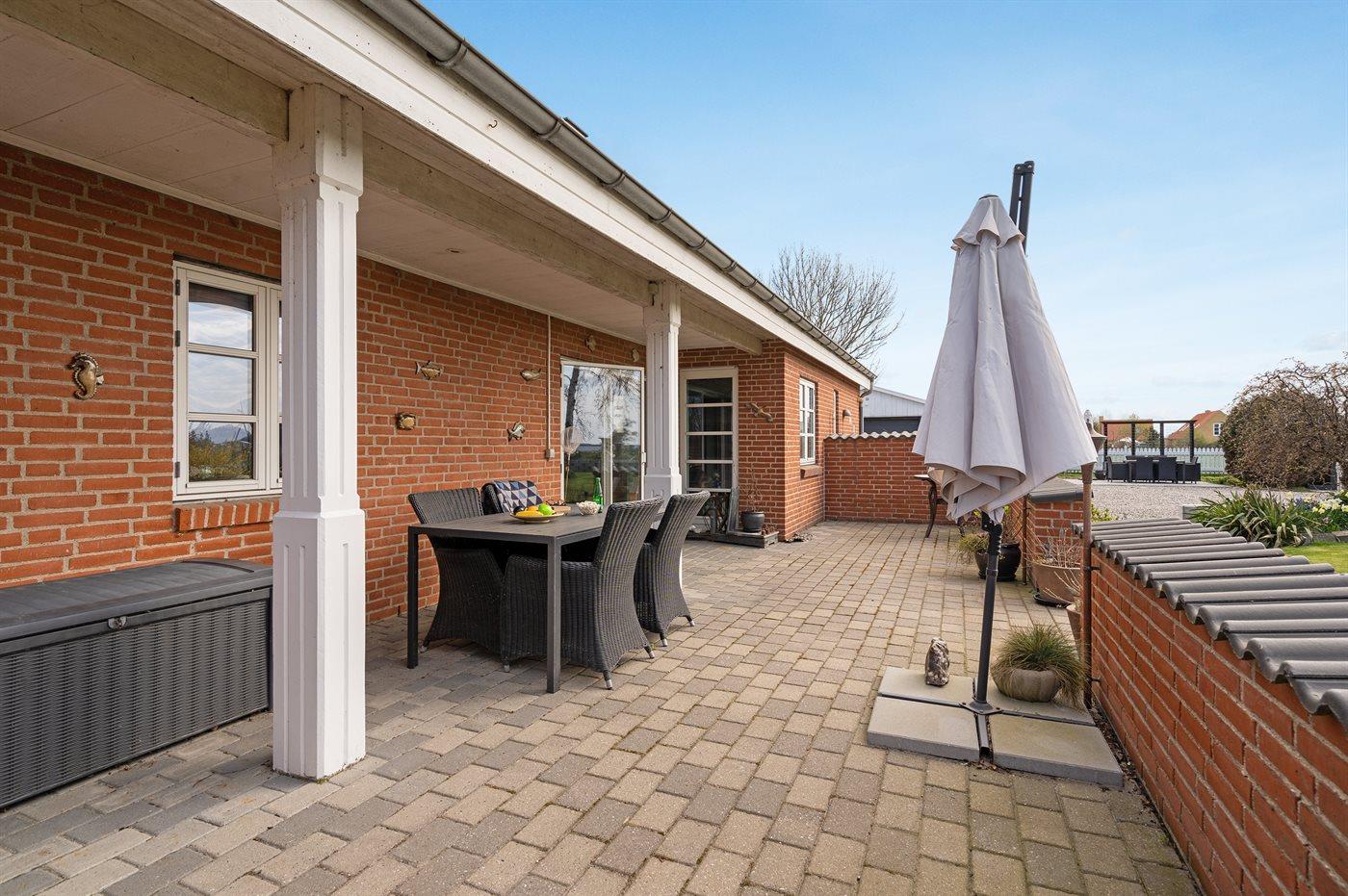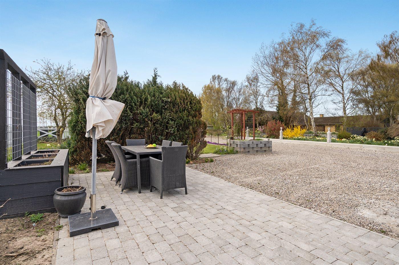 Til huset hører flere dejlige terrasse og øst for indkørslen findes der en ekstra terrasse/grillplads – her er der altså god plads til timer i det fri med en god bog, en kop kaffe eller et lækkert måltid tilberedt på grillen.