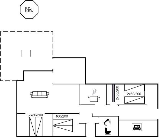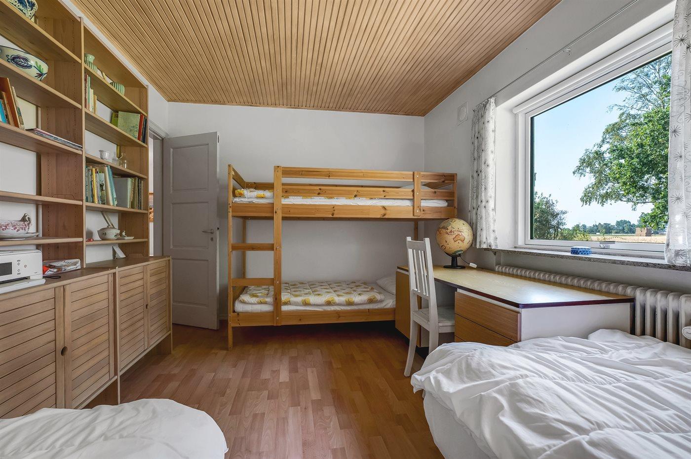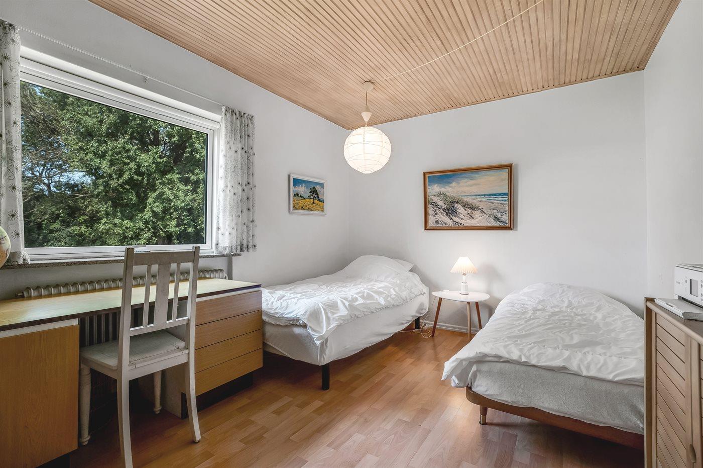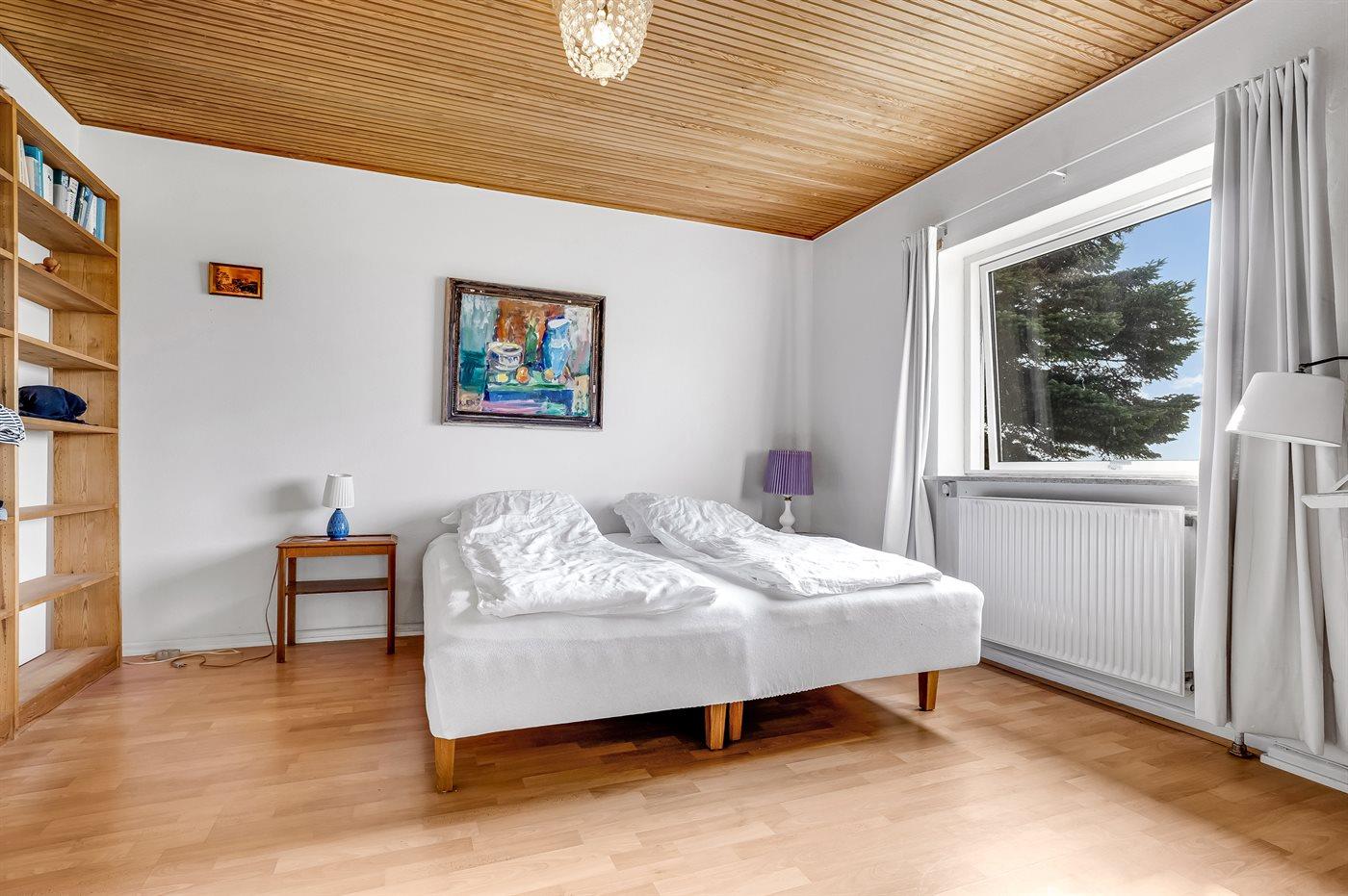Der er i alt 3 soveværelser. Sovepladserne fordeler sig på: 2 sovepladser i dobbeltseng. 4 sovepladser i enkeltsenge. 2 sovepladser i køjeseng. Derudover er der 1 stk. barneseng.
