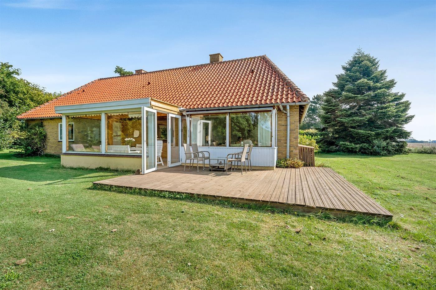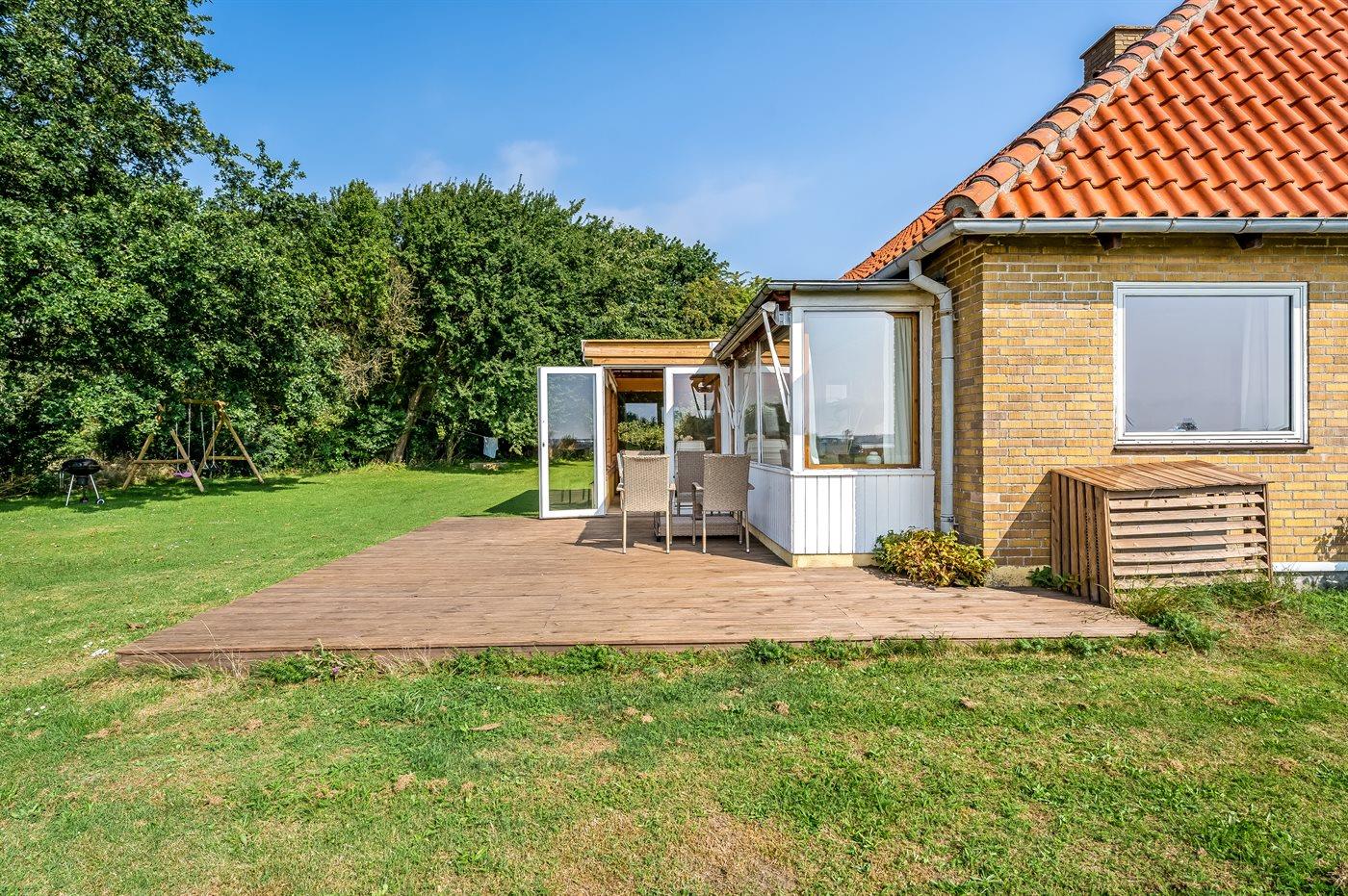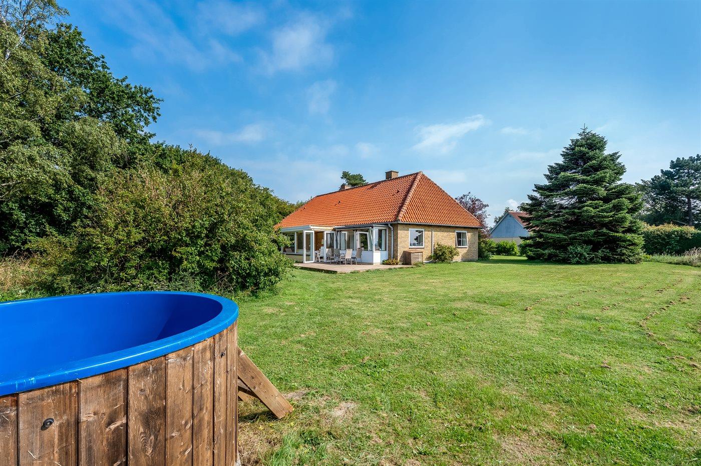 Ferieboligen er beliggende på en 2000 m² stor havegrund. Der er 300 m til havet. Nærmeste forretning er beliggende i en afstand af 8000 m. Til ferieboligen hører åbent terrasseareal. Ligeledes er der adgang til udestue. Gynge. Sandkasse. Grill til rådighed. Parkering ved ferieboligen.