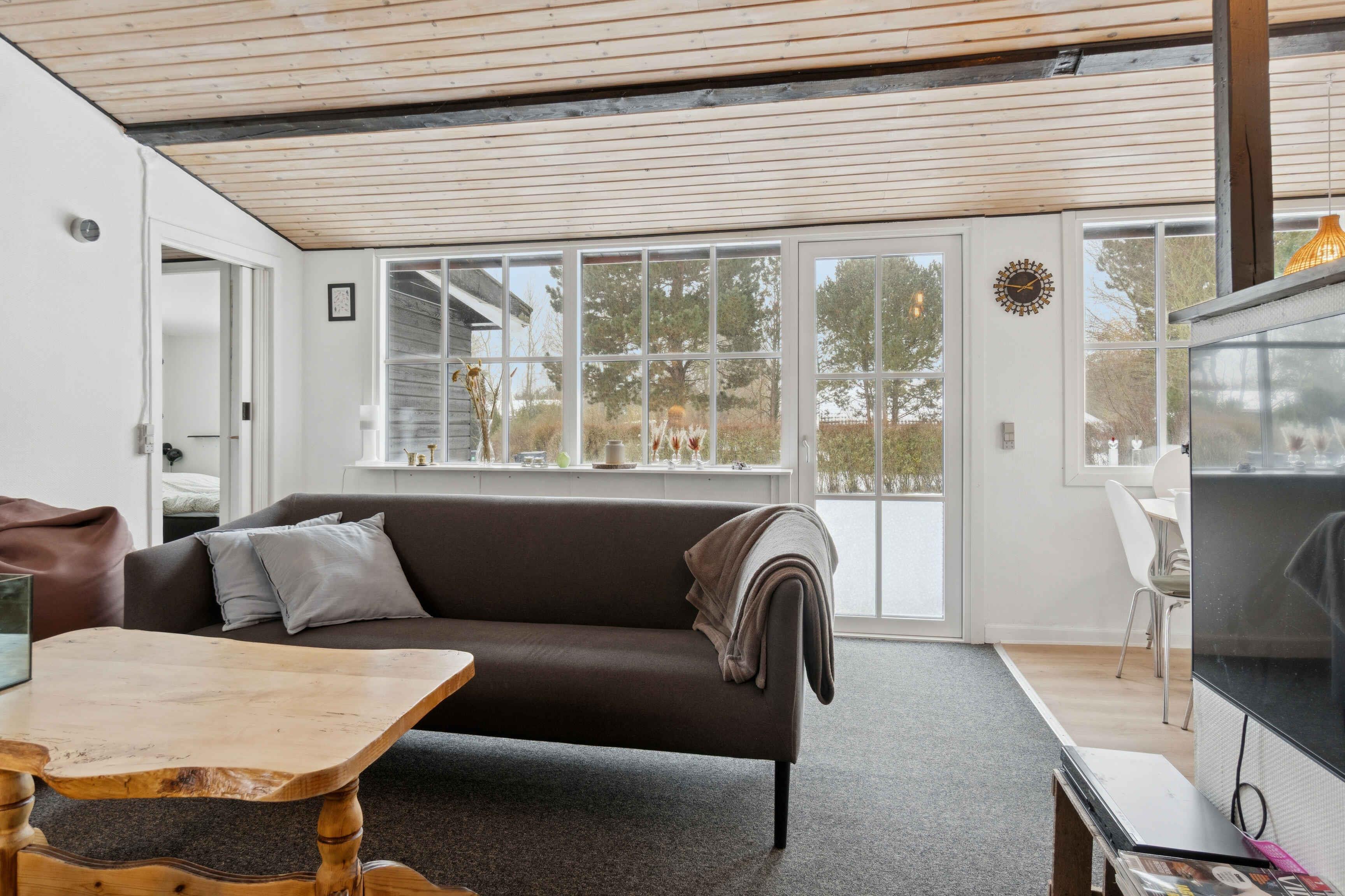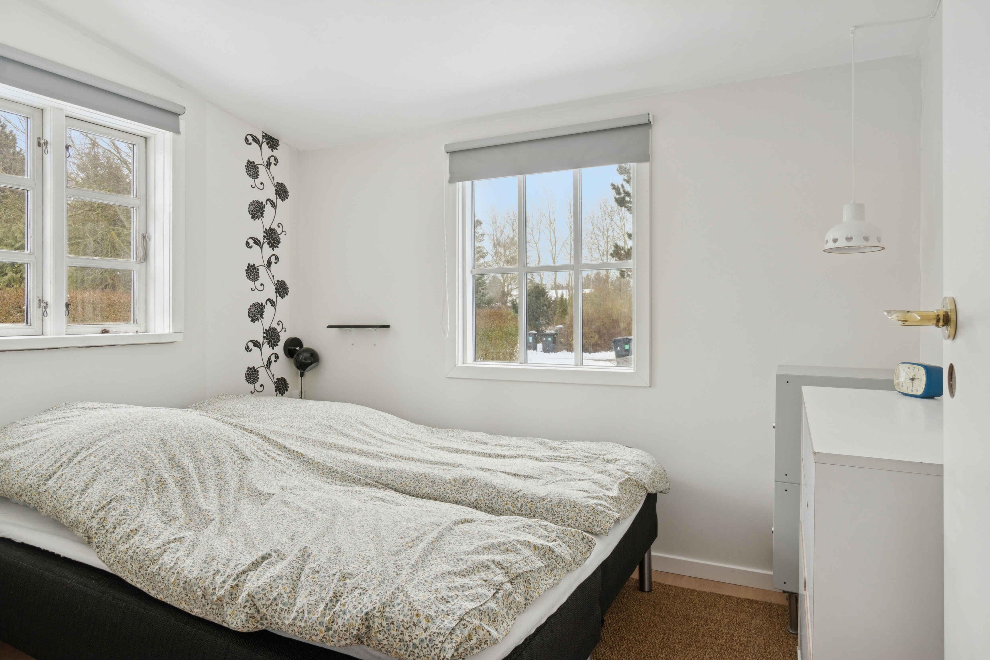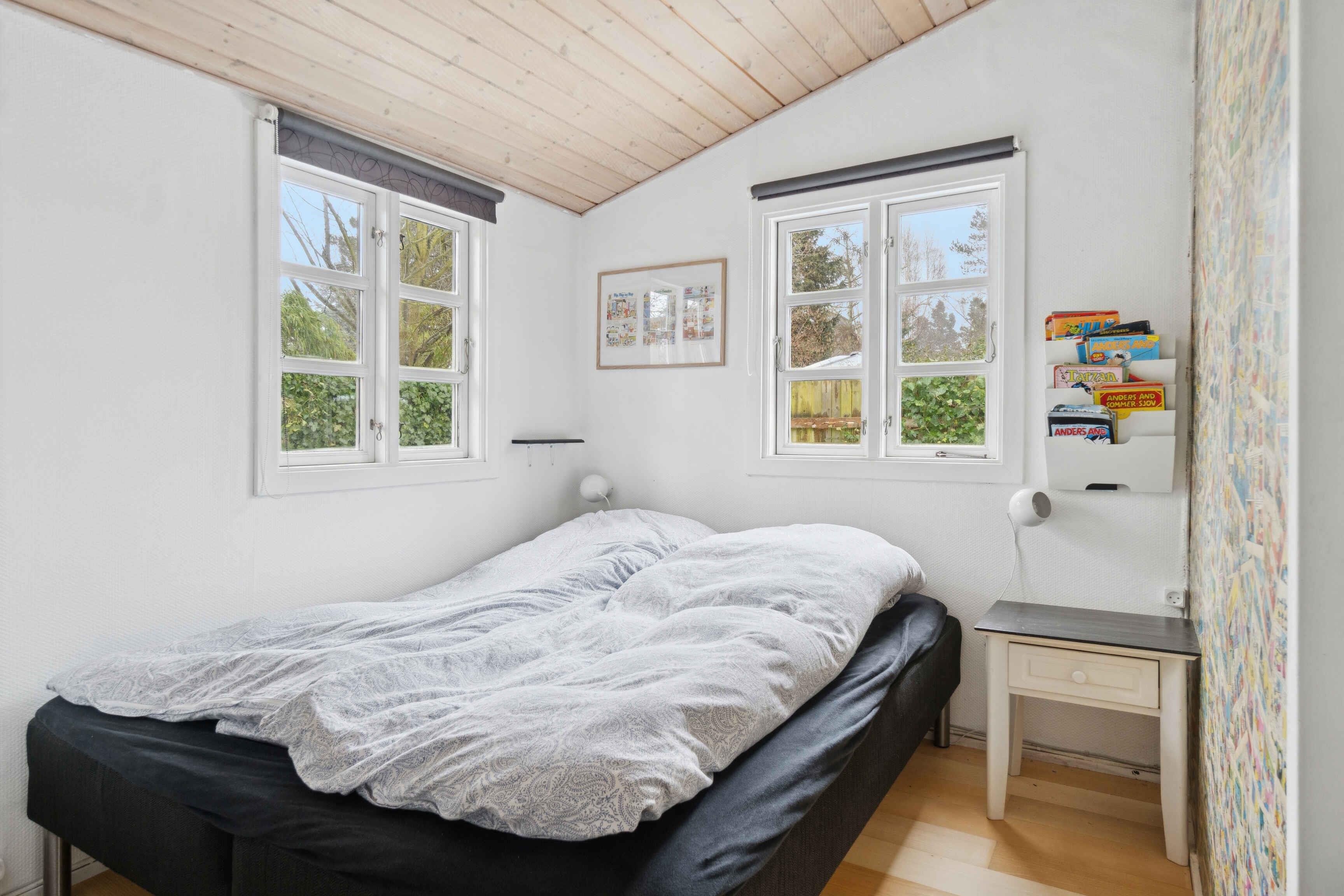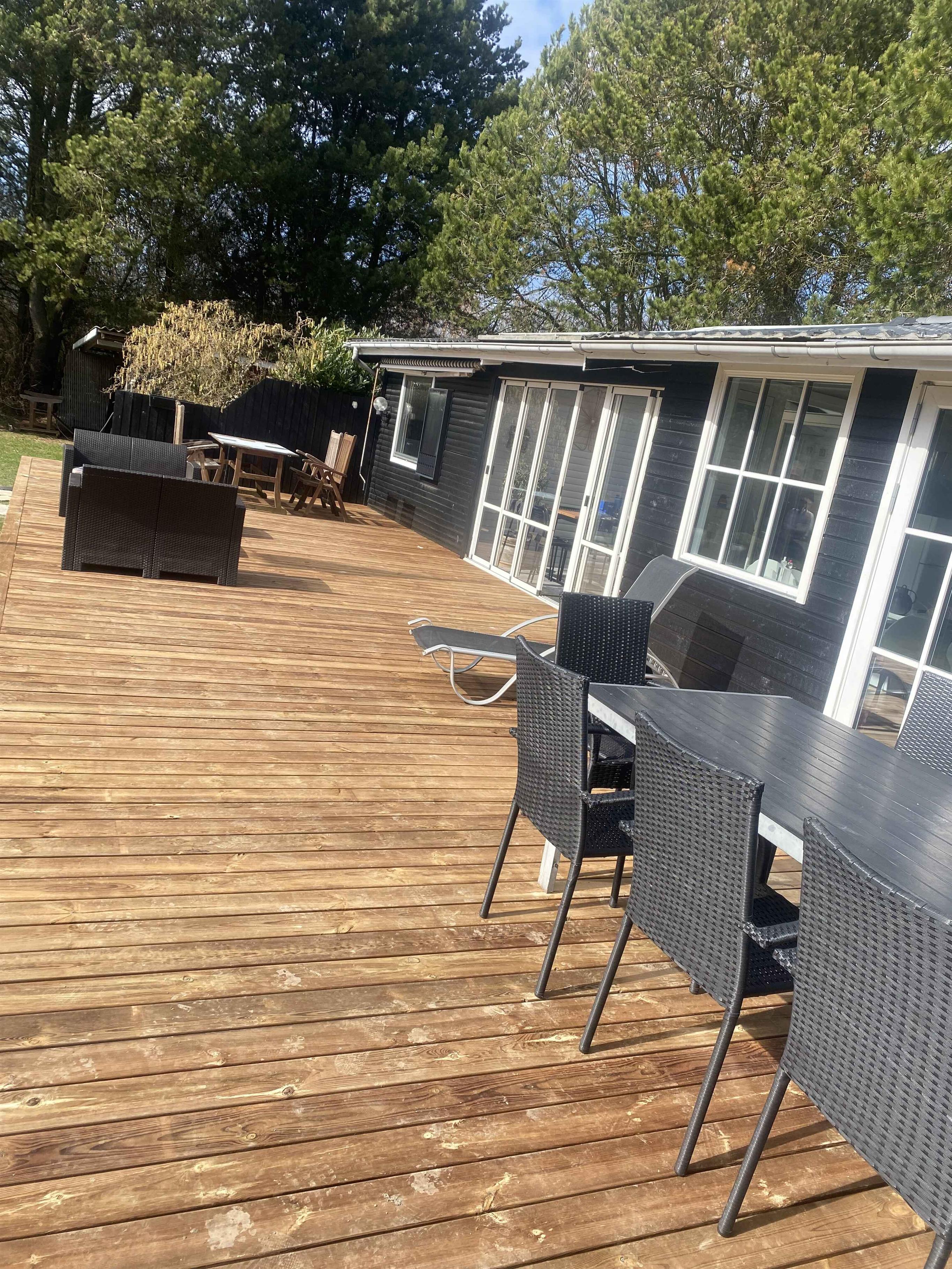 Hyggeligt sommerhus på 81 kvm med 3 værelser, 2 badeværelser og udestue. Beliggende på naturskøn grund med lukket terrasse. Tæt på strand, legeplads og skov.