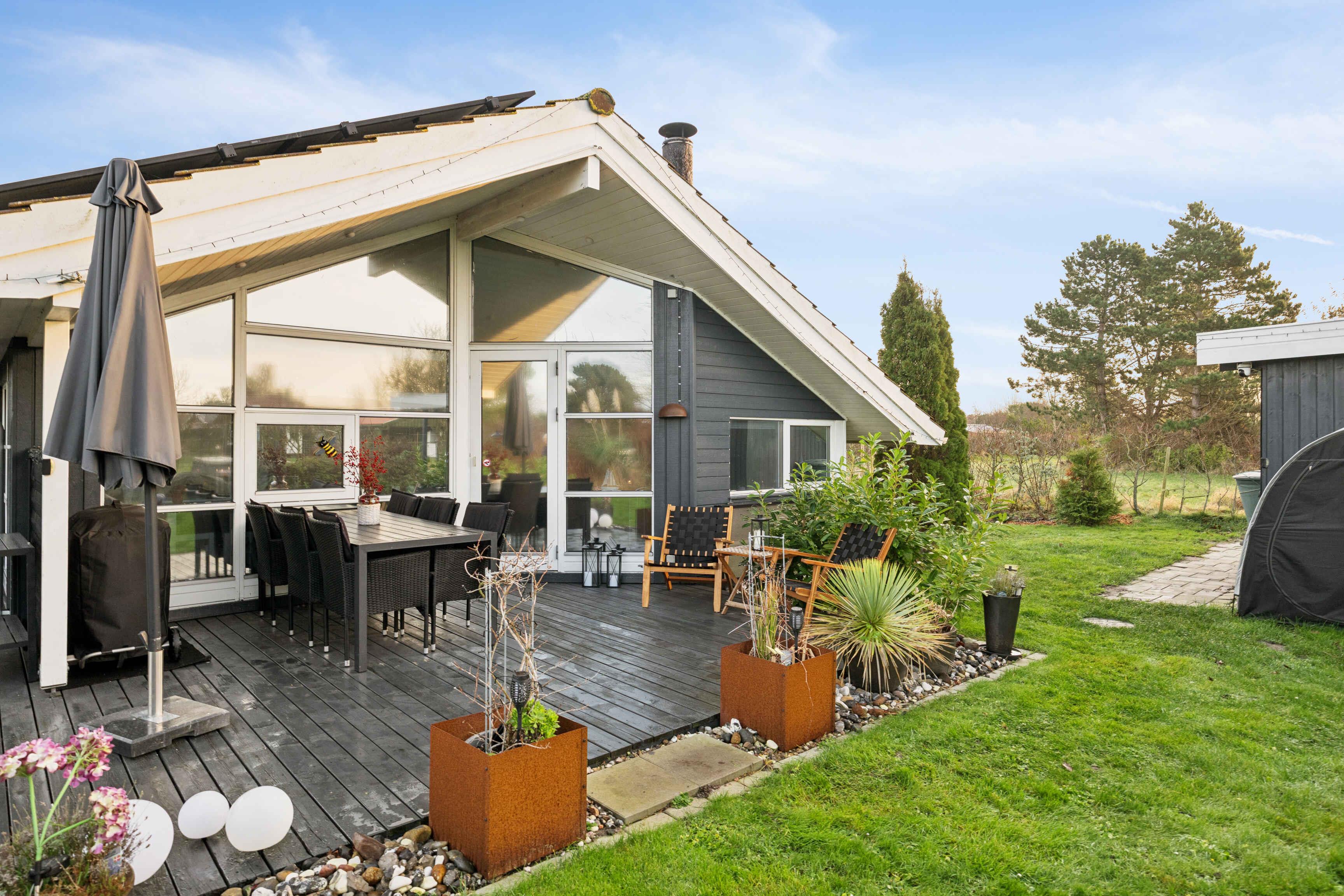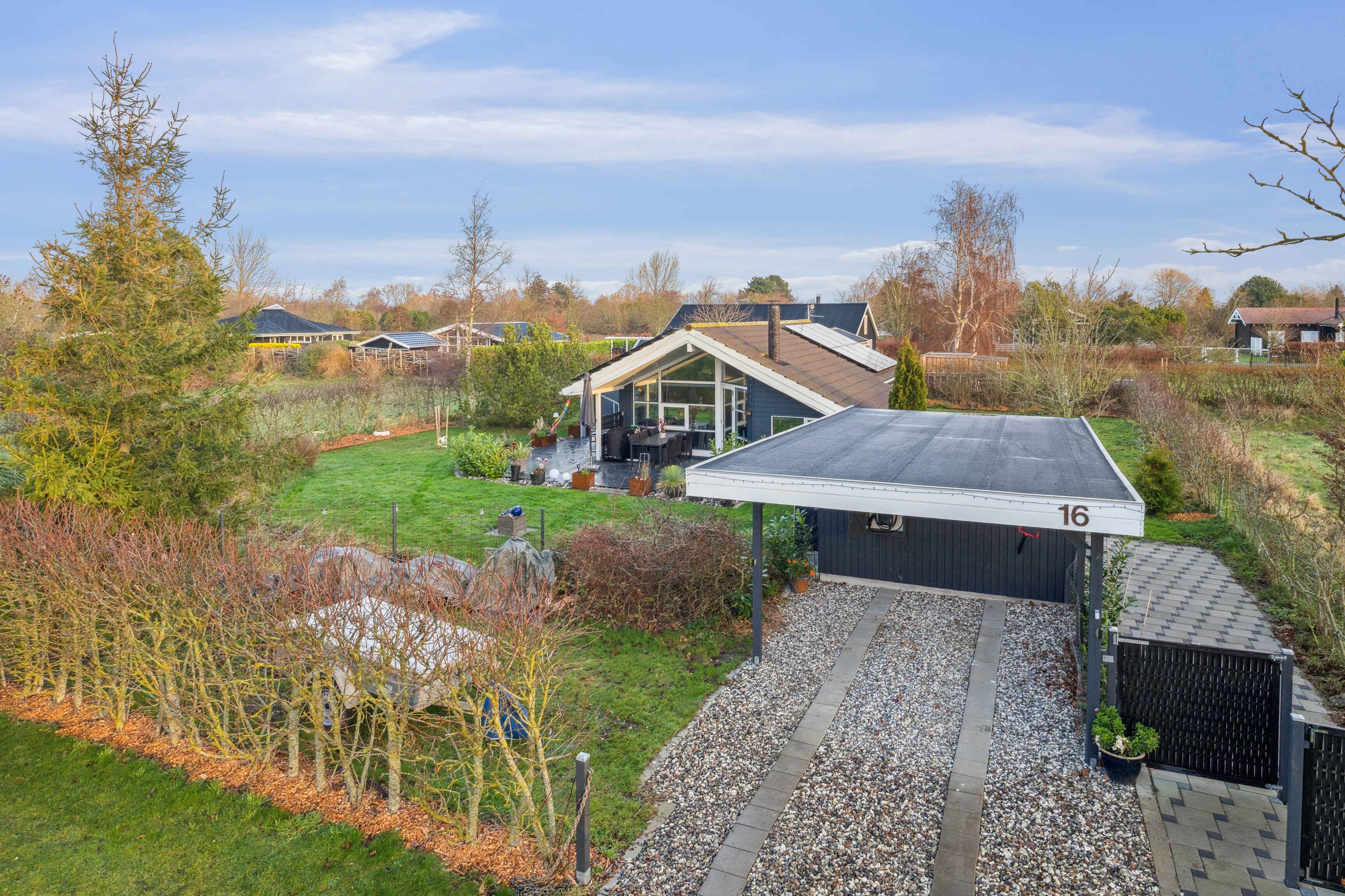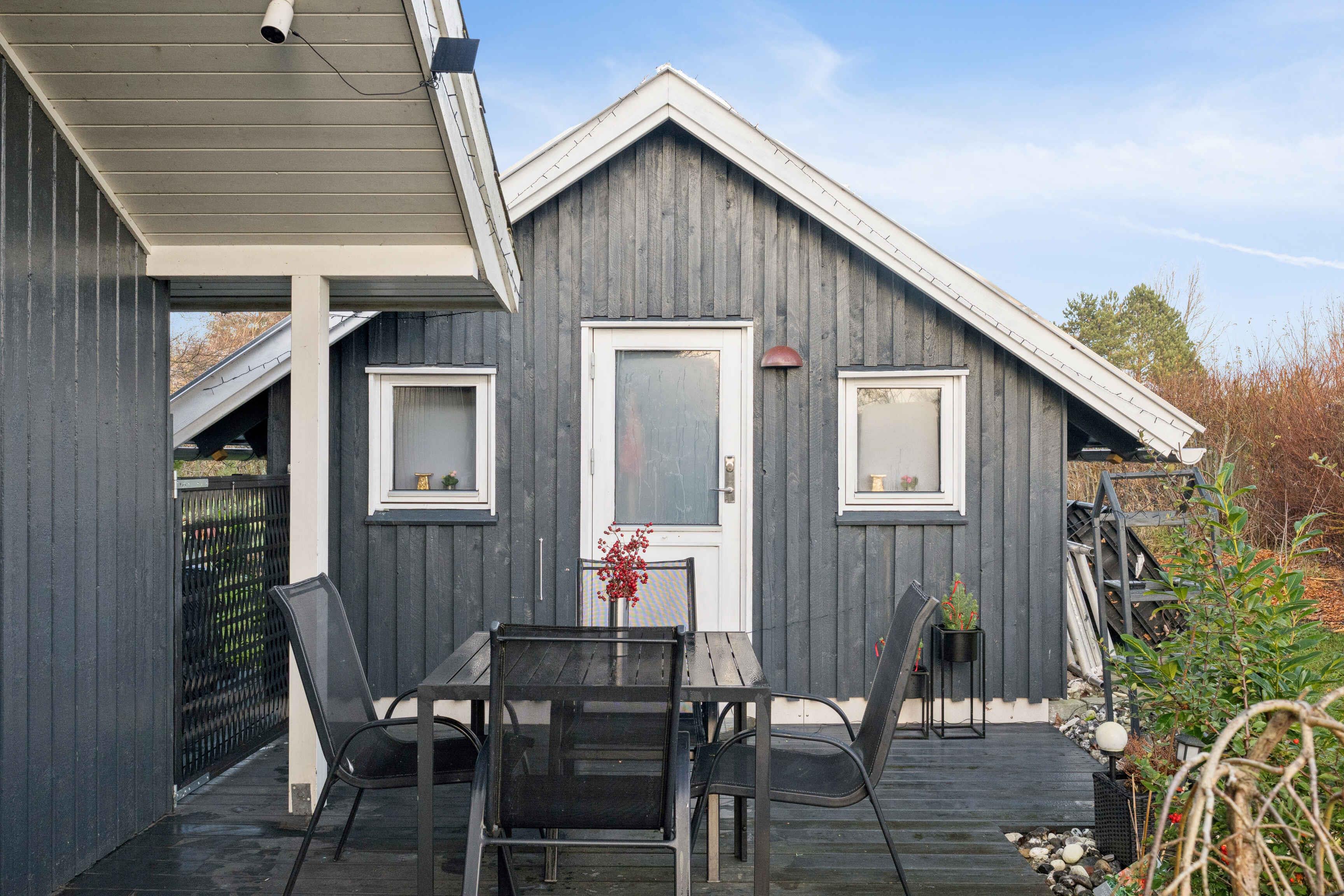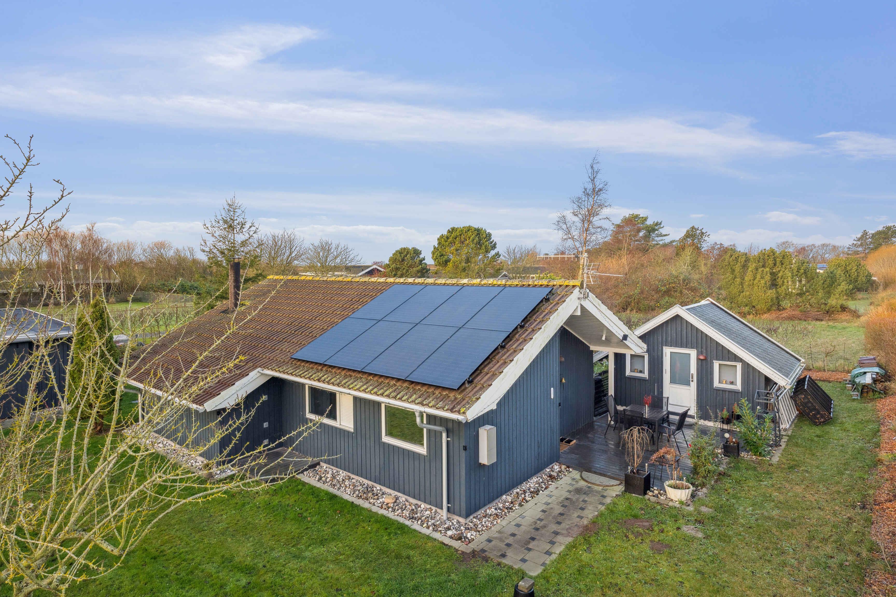 For naturelskeren ligger der ved" foden" af albuen et flot vedligeholdt sommerhus fra 2008 med solceller fra 2025 med plads til 6 personer. Carport fra 2023 med el bil lader.