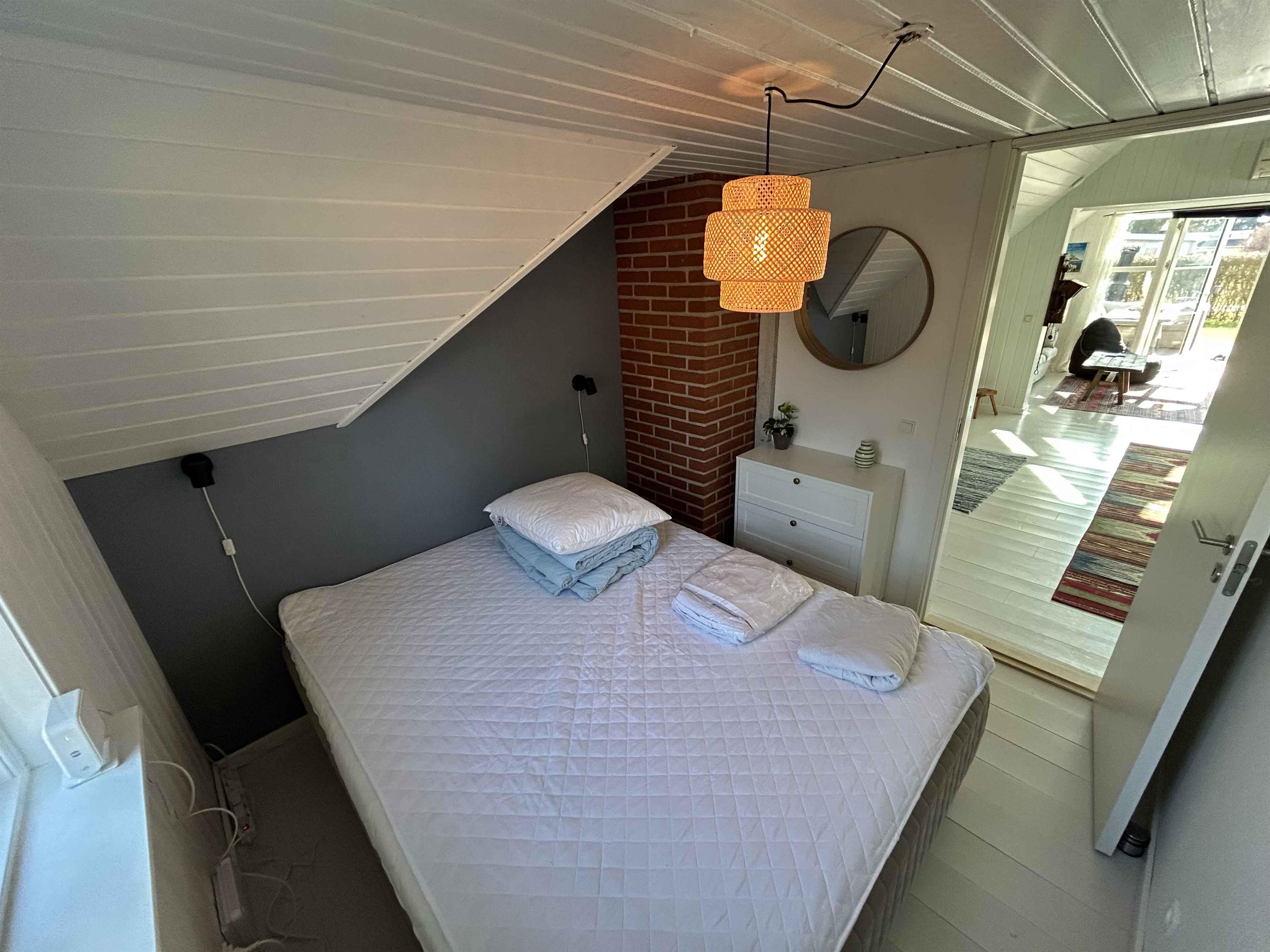 Dette charmerende sommerhus på 104 m2 er perfekt til en afslappende ferie. Huset har tre soveværelser og 2 hemse med ekstra sovepladser og plads til seks personer, eller flere hvis hemsene bliver taget i brug, hvilket gør det ideelt for både familie og venner. en dobbeltseng er 140Cm i bredden og en anden dobbeltseng er 160 cm i bredden. Sommerhuset er udstyret med en hyggelig brændeovn, som skaber varme og stemning på kølige aftener. Der er også hurtigt internet og Chromecast til fjernsynet, så du kan holde dig opdateret under ferien, Nintendo og en masse brætspil. Huset er indrettet med tanke på både komfort og afslapning. Der findes ligeledes både vaskemaskine, opvaskemaskine og tørretumbler i sommerhuset. Haven er flot anlagt med flere små hyggekroge, som indbyder til rolige stunder og afslapning i det fri. Det er et sted, hvor man virkelig kan nyde udelivet. Der findes ligeledes både Weber kul- og gasgril til fri afbenyttelse. Kun 400 meter fra huset ligger vandet, hvilket giver mulighed for skønne gåture langs kysten eller en forfriskende dukkert. Området omkring sommerhuset byder på naturskønne omgivelser med rig mulighed for at nyde naturen tæt på havet, samt en nærliggende stor skov. Nakskov er kendt for sin maritime atmosfære og hyggelige havn. Her finder du både lokale butikker, caféer og restauranter, som skaber en skøn ferieoplevelse. Området er også oplagt for dem, der ønsker at udforske naturen på cykel eller til fods. Denne feriebolig giver både ro, naturoplevelser og nærhed til hyggelige bymiljøer, hvilket gør den til et oplagt valg for din næste ferie.