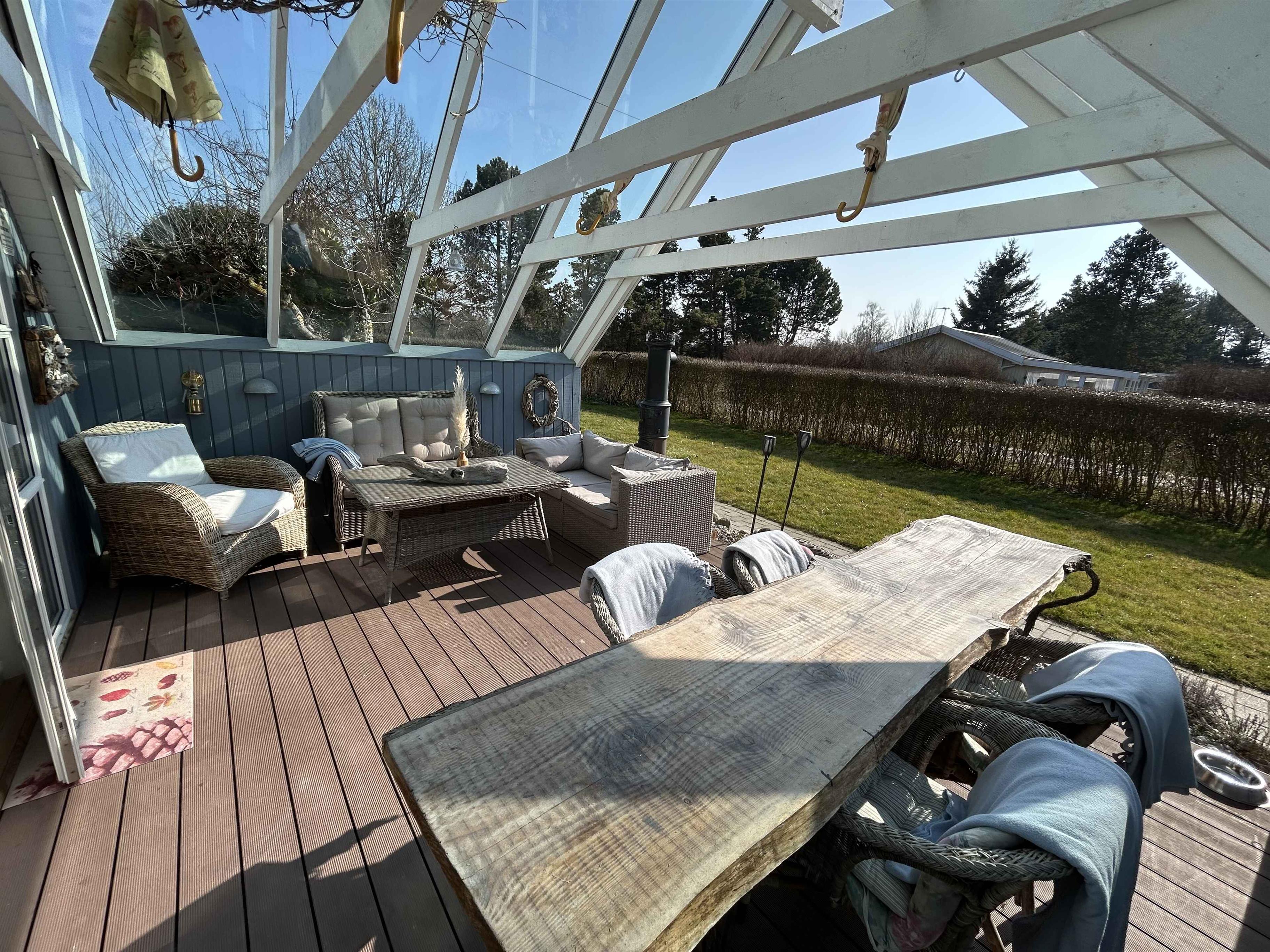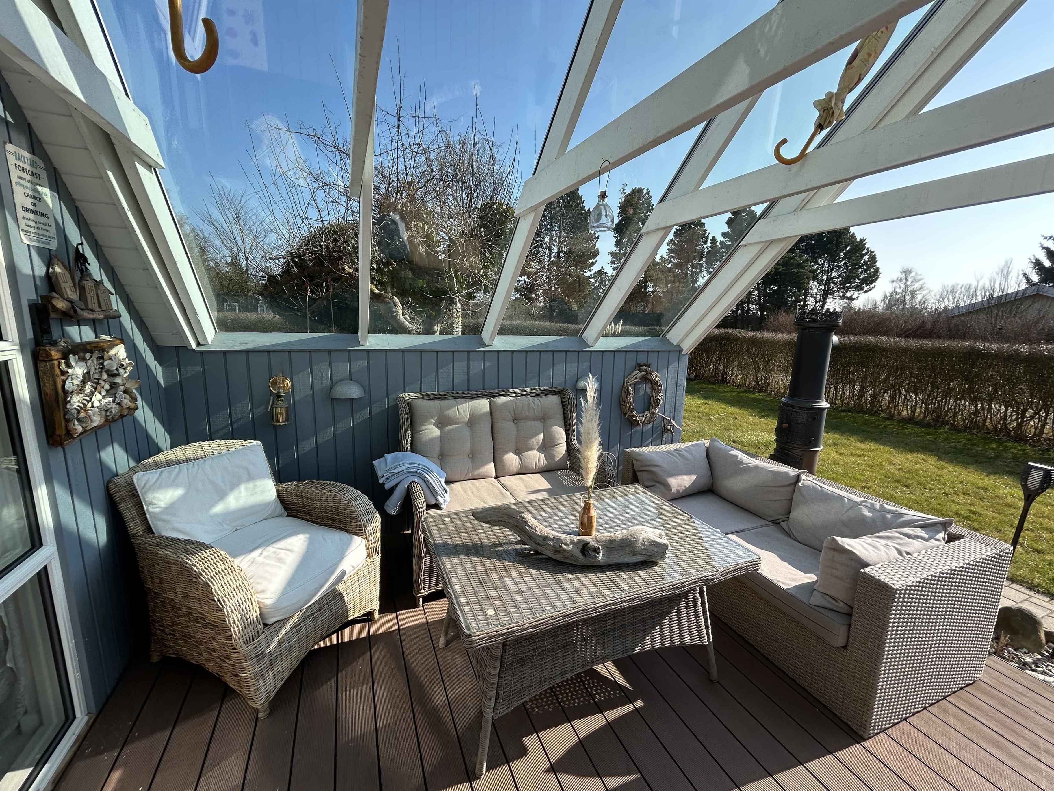 Hyggeligt sommerhus med atmosfære, brændeovn, flot anlagt have med masser af hyggekroge, bålsted, internet