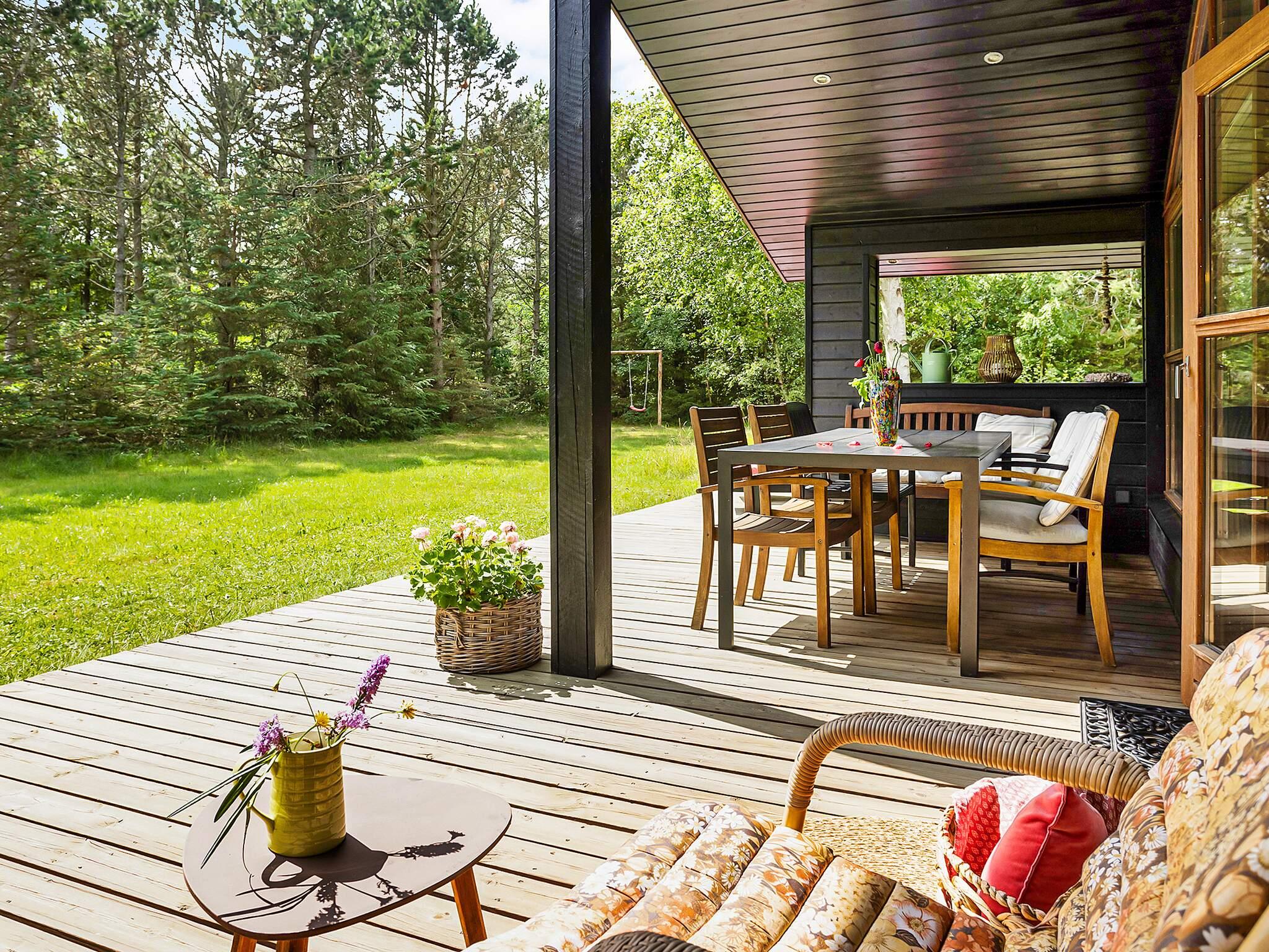 Dette dejlige sommerhus byder på de ideelle rammer for en fantastisk ferie med familie eller venner og er ideel til 6 personer. Indenfor finder du moderne møbler, højt til loftet og masser af lys. De store vinduespartier giver godt lysindfald og udsigt til træer og buske på naturgrunden. Huset består af badeværelse, tre gode soveværelser, lille hems, entre med vaskemaskine samt køkken og stue. Opholdsstuen, der består af køkken og stue i åbent plan, er et stort rum med højt til loftet, der giver god plads, når man vil samles om spisebordet. Eller du kan slappe af i sofaen med en god bog eller film og tænde brændeovnen for hurtigt at varme op på en kold aften. Terrasserne omkring huset byder på masser af læ, skygge og mulighed for at bevæge sig med solen. Der er også en stor overdækket terrasse. Sommerhuset er desuden udstyret med en luft-til-luft varmepumpe, som sikrer minimale varmeudgifter. Huset har +50 GB WIFI og Chromecast til TV.