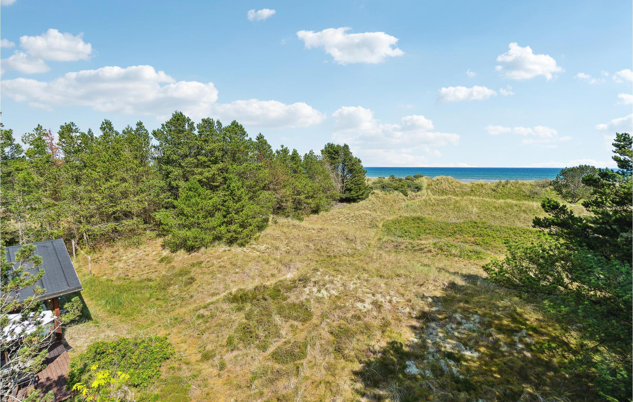 Hyggeligt feriehus tæt ved Napstjert Strand med udsigt til klitter og Kattegat, perfekt til afslapning og naturoplevelser.