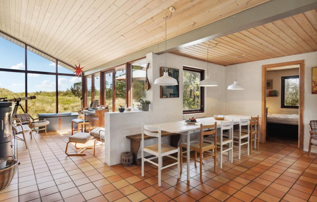 Der er udsigt til klitterne, og I kan klart skimte Kattegat, som kun ligger hundrede meter fra dette dejlige hus på Nordjyllands østkyst. Glæd jer til stuens store panoramavinduer, som får inde og ude til at smelte sammen, så her er det nemt at slappe af. Huset emmer af afslappet stemning og god komfort, så boligen er velegnet til alle, der ikke stiller høje krav, men bare gerne vil være tæt på vandet.