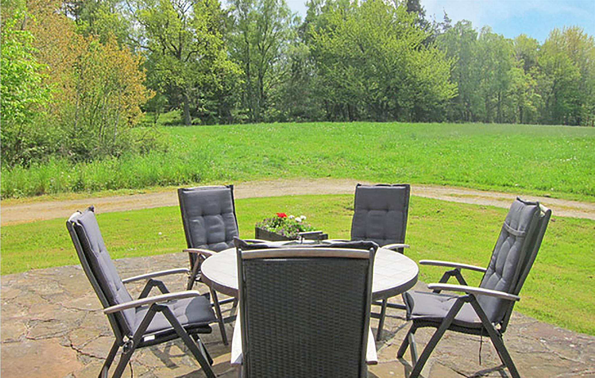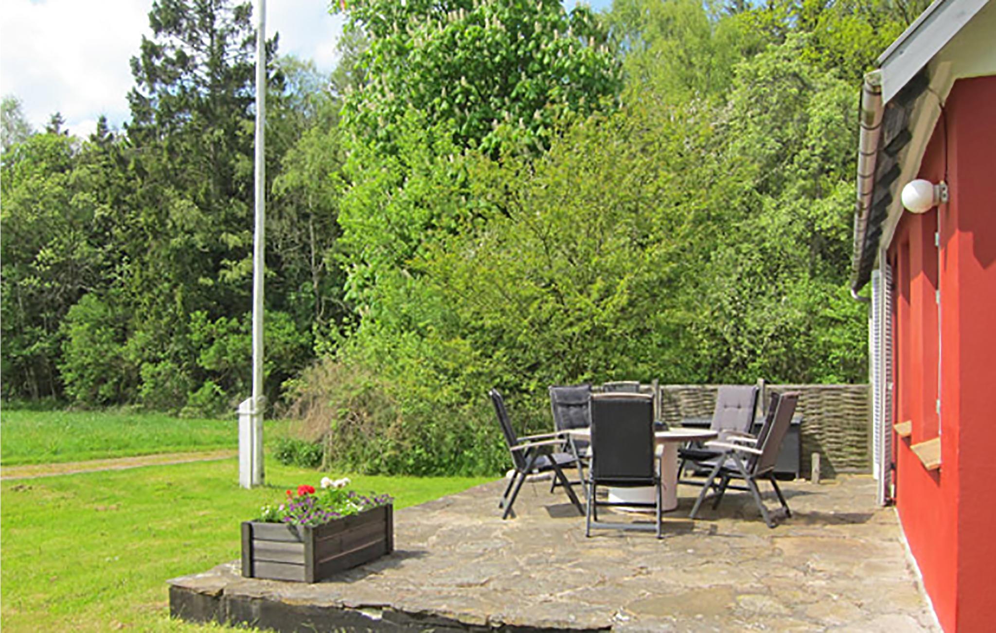 Huset har en dejlig terrasse, som er udstyret med havemøbler og en grill til hyggelige grillaftener. Her kan I sidde og sole jer, mens I nyder udsigten over de fredfyldte, grønne omgivelser.