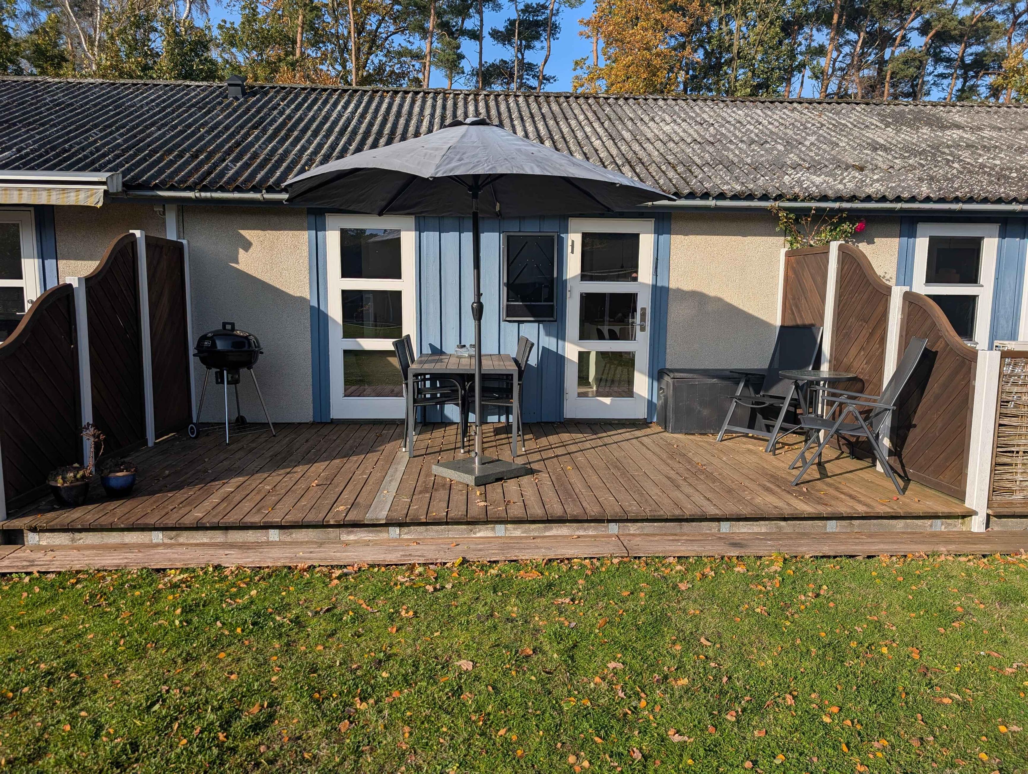 Lys og moderne feriebolig med terrasse, tæt på Dueodde Strand og fælles pool i naturskønne omgivelser.