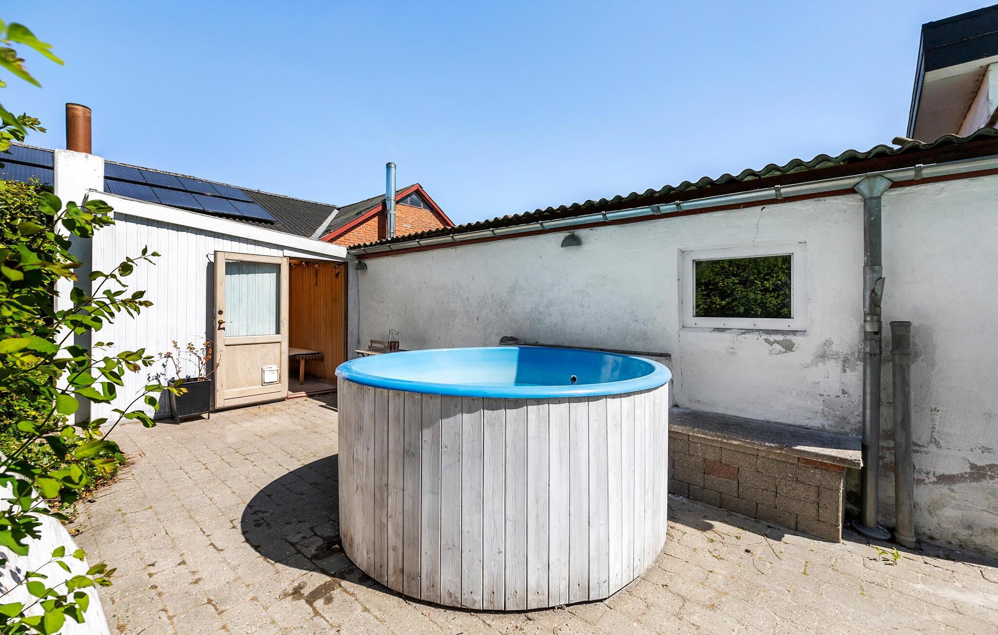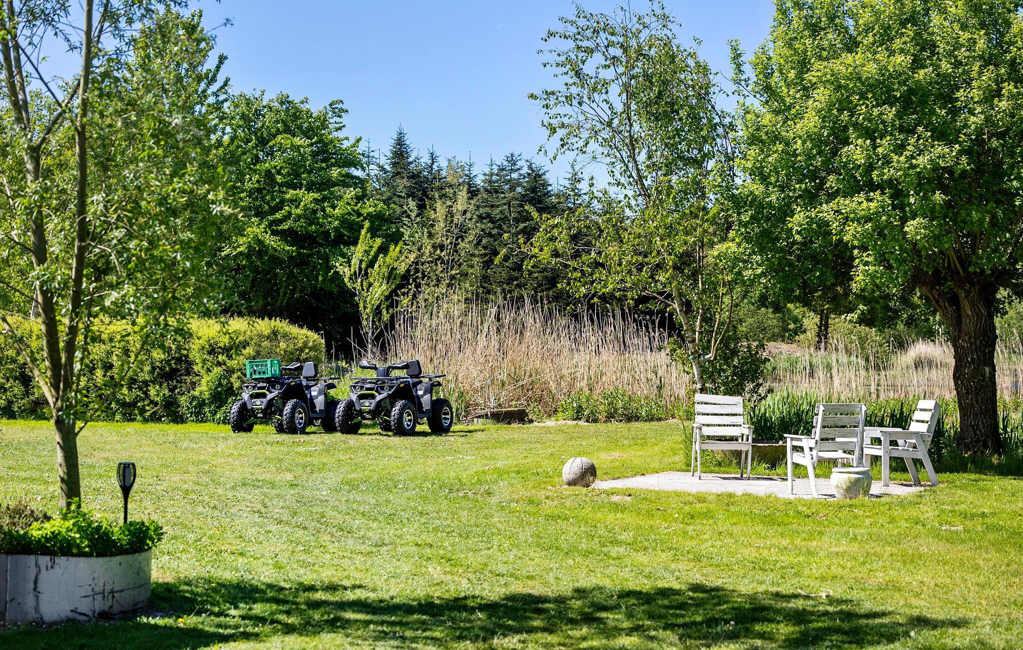 På solrige dage kan I servere morgenmaden på terrassen og derefter køle ned i poolen. Senere kan I sætte jer til rette i spabadet og runde dagen af med med mad fra grillen og en rolig stund ved bålpladsen.