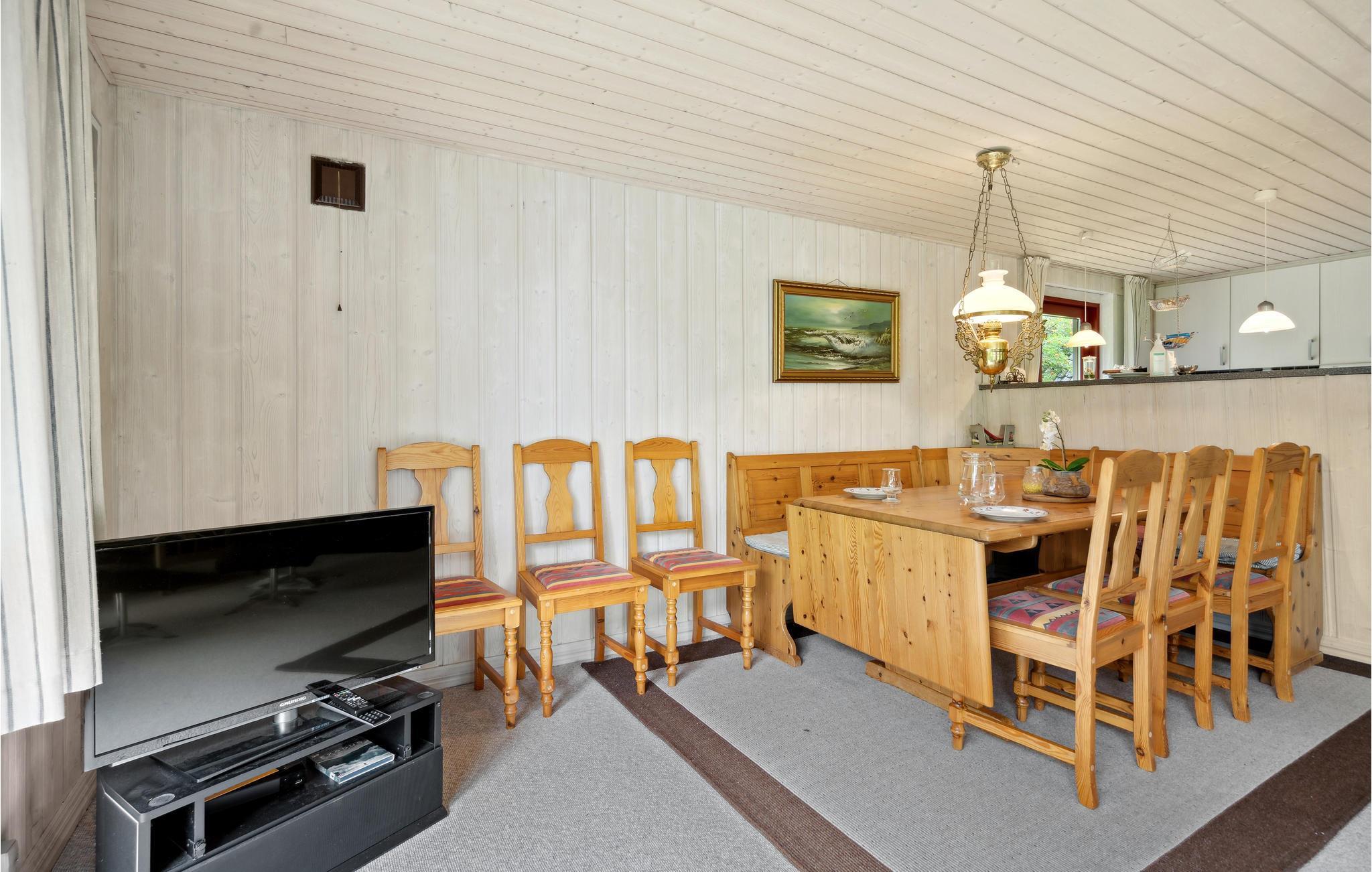 Her tilbringer I jeres ferie i et indbydende træhus, der venter på jer i naturskønne omgivelser, tæt på Nissum Fjord. Søger I et sted med atmosfære og hjemlig hygge, er denne feriebolig et godt valg og en dejlig base, hvor I kan trække tilbage efter dagens aktiviteter. Nyd mange dejlige stunder ved det store spisebord og læn jer tilbage i den store sofa med hjemmebagt kage. Her kan I snakke til langt ud på aftenen med udsigt over det grønne. Træd ud af stuen og ud i haven og nyd solen om dagen og de lune sommeraftener i godt selskab på terrasserne.