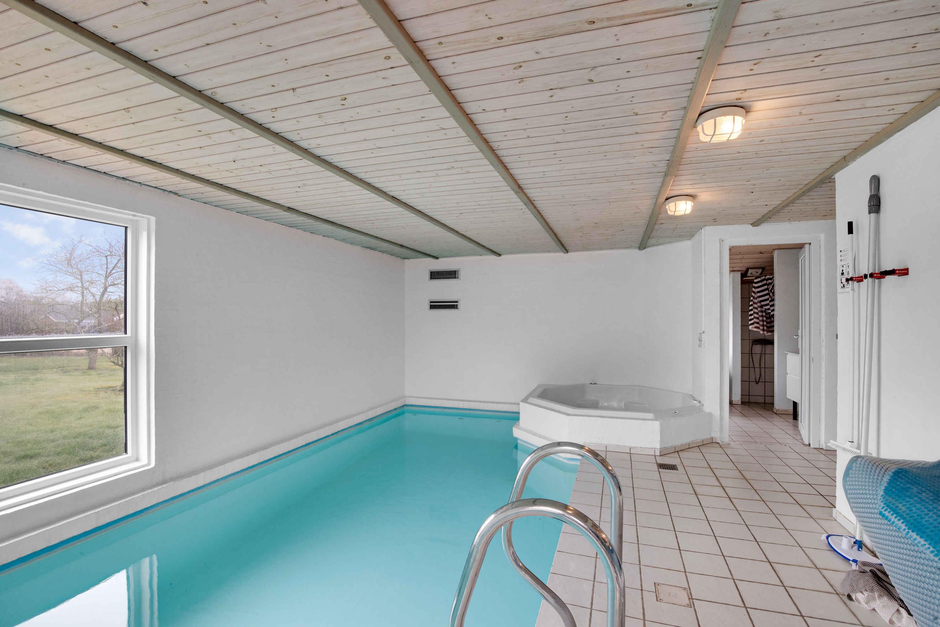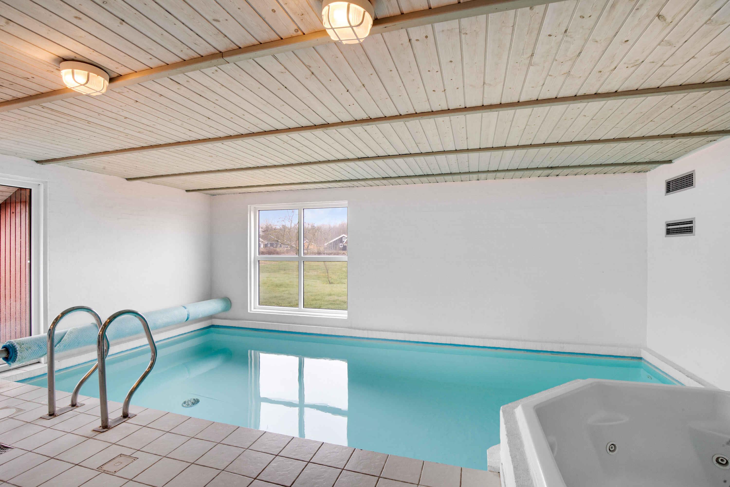 poolhus med kik til havet Dette praktiske feriehus er beliggende i et roligt område ved Købingsmark Strand, som er en af øens bedste og mest familievenlige badestrande