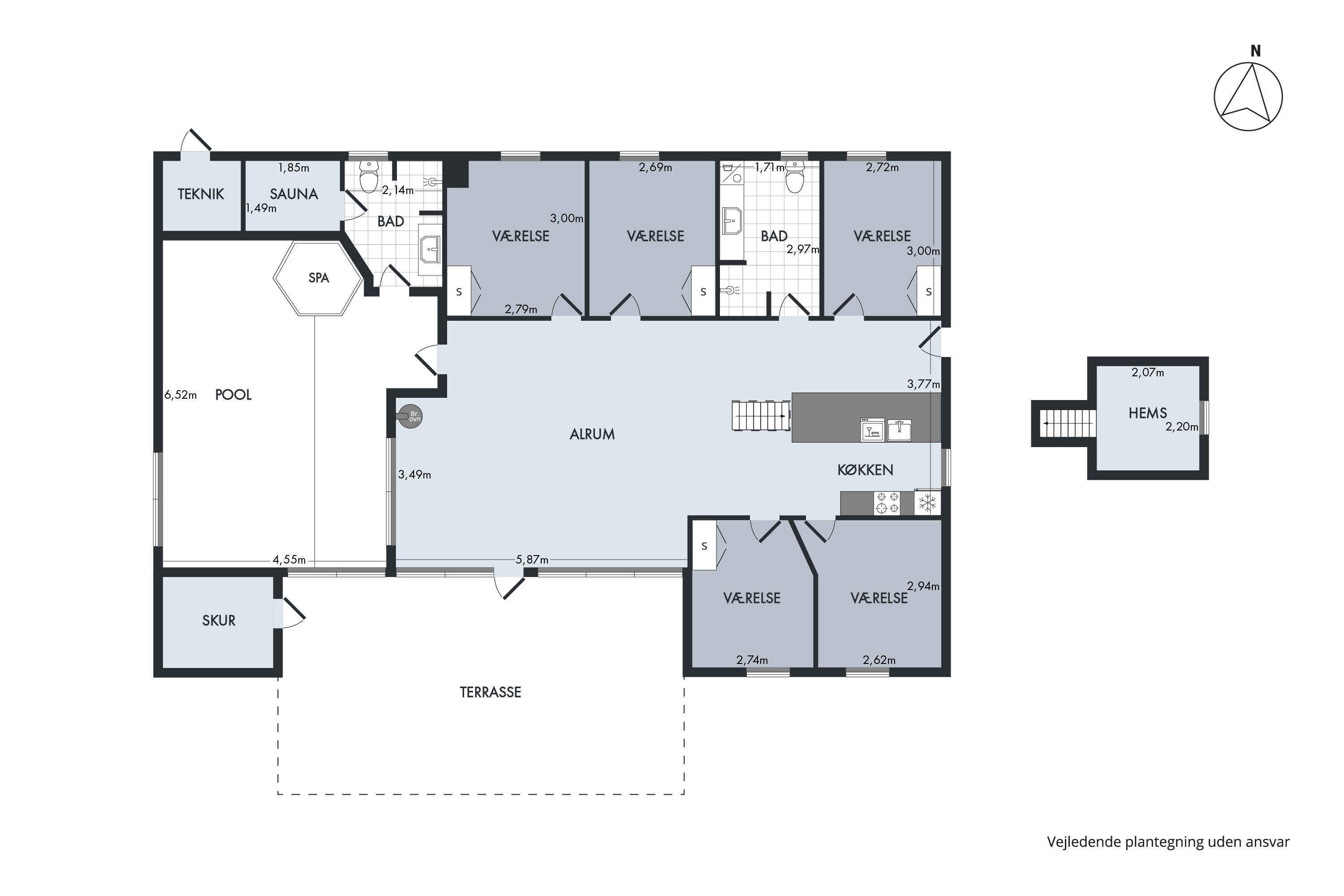 Velkommen til dette skønne poolhus med havkik beliggende i Nordborg - det perfekte feriehus til jeres næste afslappende ferie. Dette praktiske feriehus er beliggende i et roligt område ved Købingsmark Strand, som er en af øens bedste og mest familievenlige badestrande. Huset ligger på en stor naturgrund med gode muligheder for leg. Der er opstillet legeredskaber både for de små og store gæster. Huset er indrettet med et køkken, der ligger i åben forbindelse med stuen, og fra stuen kan I følge med i aktiviteterne i swimmingpoolen samt spabadet. I stuen er der både en energivenlig varmepumpe og en brændeovn, som I kan benytte på de kølige aftener og dage. Hertil tilbyder huset 6 komfortable værelser og har plads til i alt 12 personer. De lyse og indbydende rum skaber en afslappet atmosfære for alle gæster. Sommerhuset har også 2 fine badeværelser, der sikrer bekvemmeligheden og komforten under opholdet. Området omkring Nordborg byder på et væld af aktiviteter og seværdigheder, der vil glæde enhver feriegæst. Med en kort gåtur til stranden, der er beliggende 300m væk, kan I nyde solrige dage ved vandet, tage forfriskende svømmeture eller bare slappe af med en god bog på stranden, mens ungerne leger i vandkanten. Naturelskere vil også blive betaget af det omkringliggende uspolerede naturlandskab på Als med bl.a. store skove, der byder på smukke vandrestier og cykelruter. Oplev den maleriske natur, mens I udforsker området og opdager skjulte perler. Als er enhver lystfiskers paradis og her finder I let gode fiskepladser. Indenfor kort afstand finder I flere attraktioner som Nordborg Slot og oplevelsesparken Universe, hvor I kan udforske videnskabens fascinerende verden. Og en tur til den hyggelige by Sønderborg med bl.a. mange spændende butikker skal I ikke snyde jer for. Indkøbsmuligheder er bekvemt placeret i nærheden, så I nemt kan forsyne dig med alt, hvad I har brug for under jeres ophold. Sommerhuset her er det perfekte valg for dem, der ønsker en afslappende ferie i naturskønne omgivelser med en bred vifte af aktiviteter inden for rækkevidde. Tag chancen og book jeres drømmeferie nu.