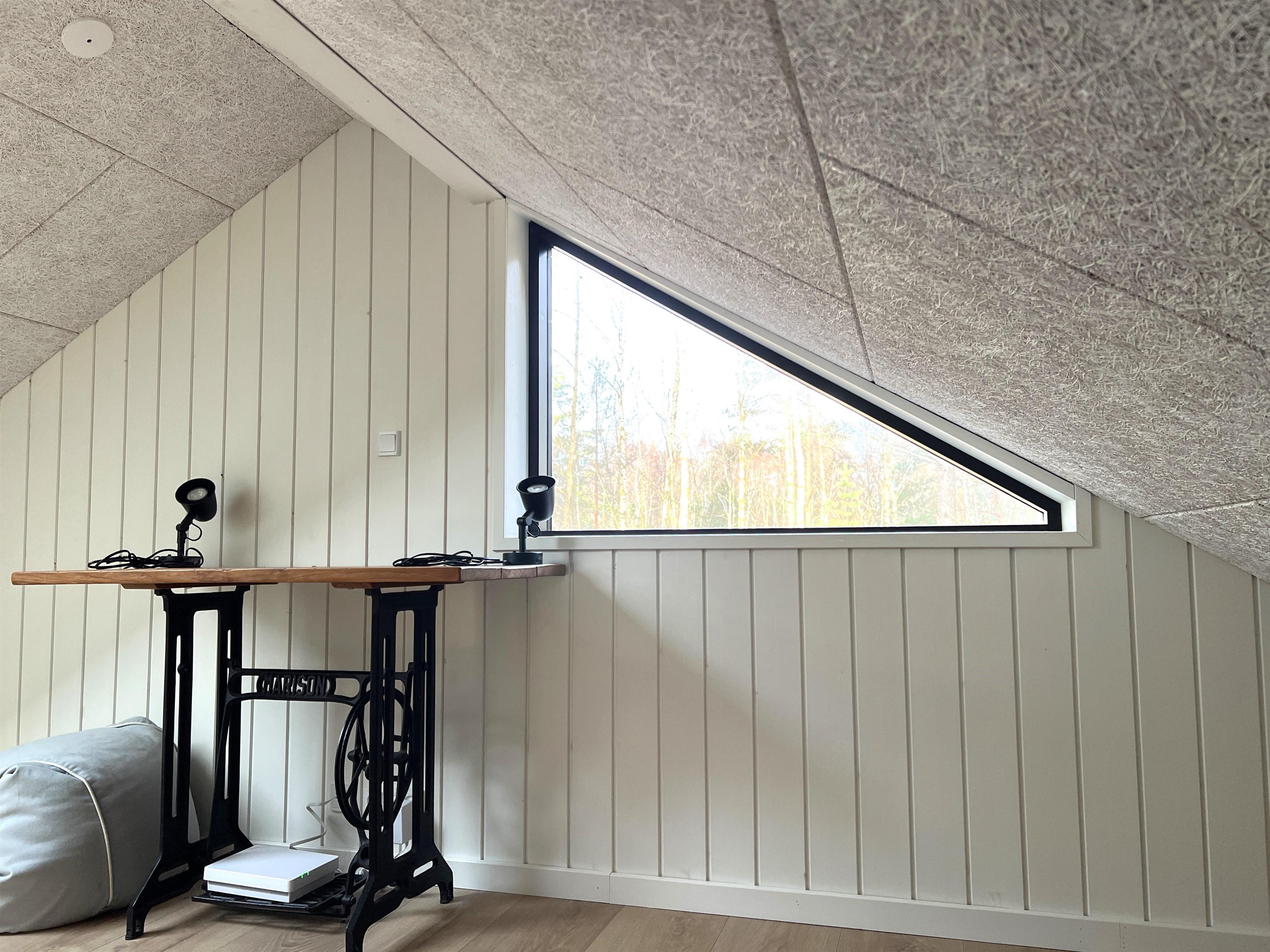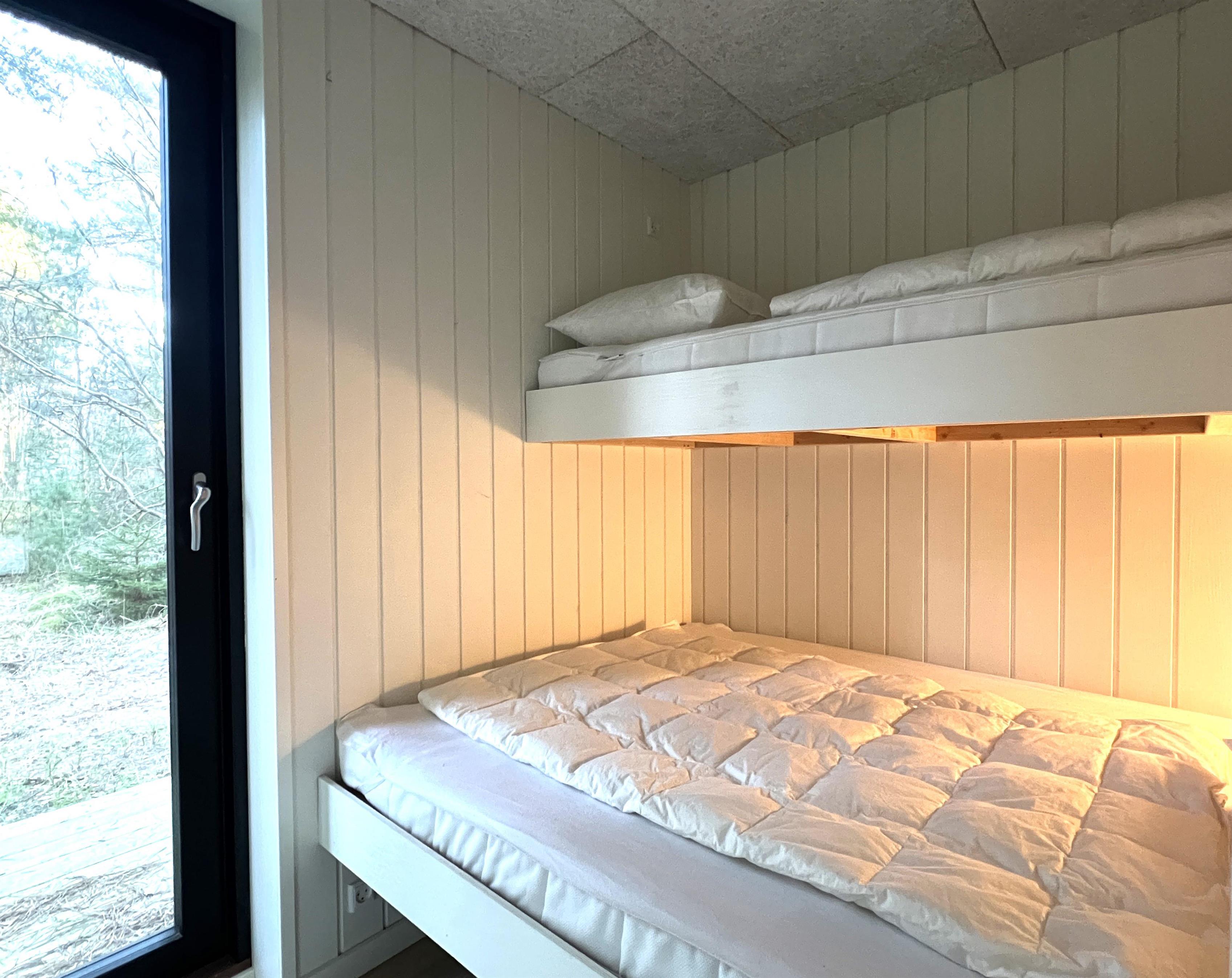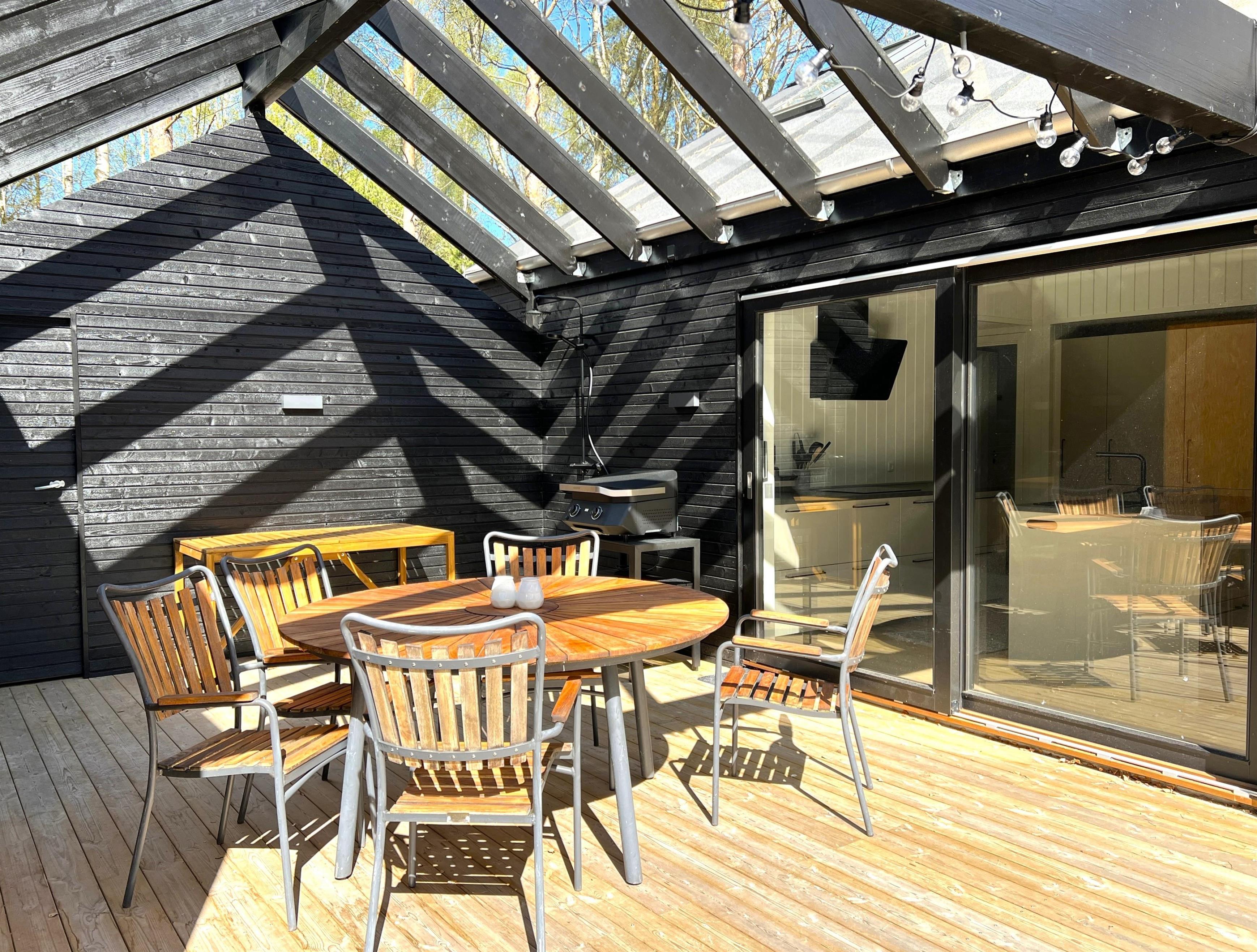 NYT hos Team Læsø. Dette nye, flotte, arkitekttegnede feriehus er netop blevet opført midt i Nordmarkens smukke natur, og indfanger den helt rigtige sommerhusatmosfære. Huset fremstår særdeles indbydende, lyst og rummeligt med mange lækre detaljer, og de store vinduespartier giver et flot lysindfald og en skøn udsigt til naturen og skoven. Der er et flot køkken-alrumrum med køkkenø og spiseplads i åben forbindelse med den store stue, hvor der også er installeret brændeovn. Her er flere hyggekroge, der indbyder til at sætte sig med en bog eller en god kop kaffe. Desuden tre fine soveværelser, hvoraf to har dobbeltsenge og det sidste har en køjeseng med 3/4 seng nederst - egen udgang fra alle soveværelser. Der er et dejligt stort badeværelse, både med badekar og brus, og også et velplaceret ekstra toilet. På husets lille 1. sal er der et ekstra rum med skrivebord. Fra køkken-alrummet er der terrassedøre til den store træterrasse, hvor husets gode havemøbler og grill kan benyttes. I forlængelse af træ-terrassen ligger en ekstra tilbygning, som bl.a. har en skøn shelter med et stort vinduesparti. Her kan de sene aftentimer tilbringes og det er rigtigt hyggeligt indrettet til både store og små. Der er desuden mange gode stier i området og kort afstand til stranden og havet. Husets komfortable indretning og placering lægger op til en dejlig, afslappende ferie, hvor man straks fornemmer den særegne Læsø-ro og unikke natur. Samtidigt ligger huset dejligt roligt placeret med cykelafstand til Læsøs golfbane, samt Østerby Havns hyggelige havnemiljø med fiskehandler, indkøb og restauranter.