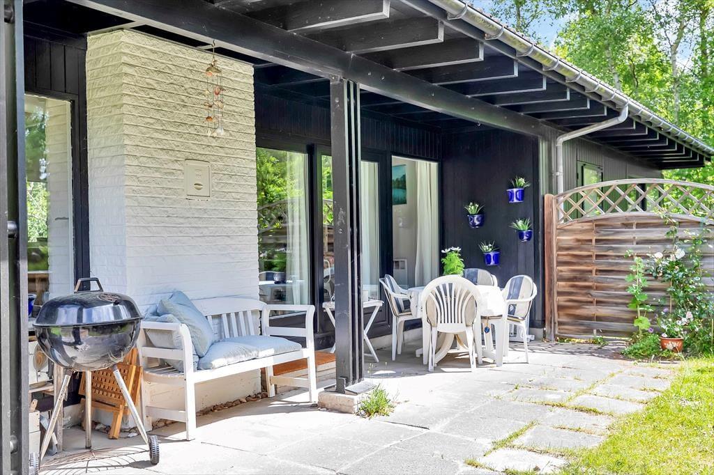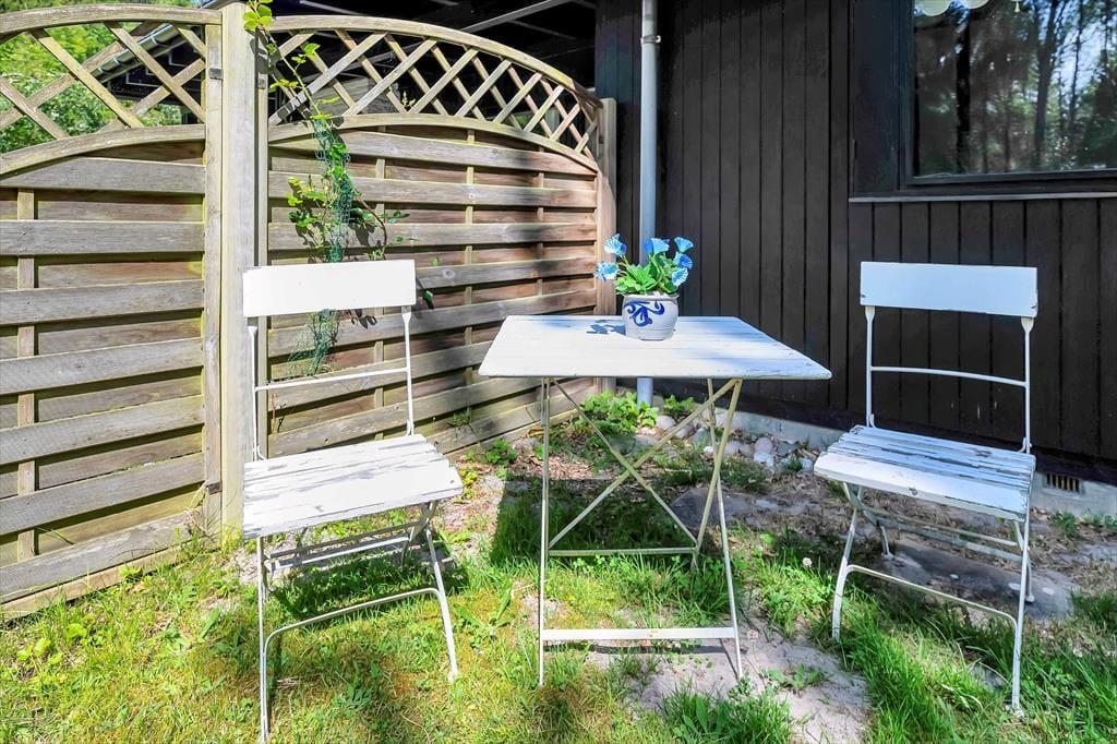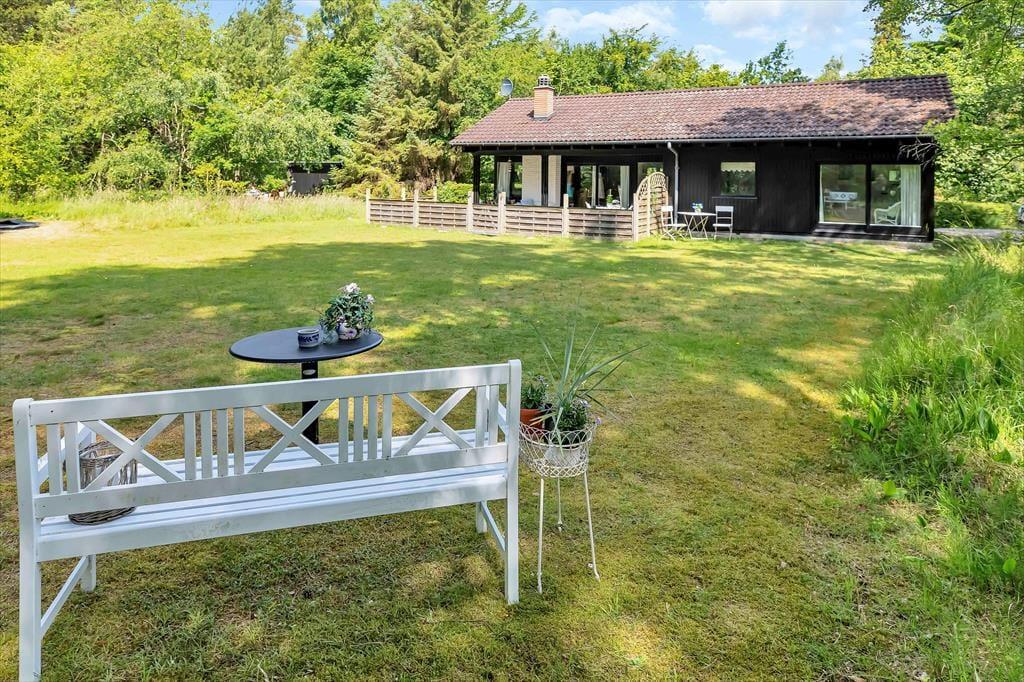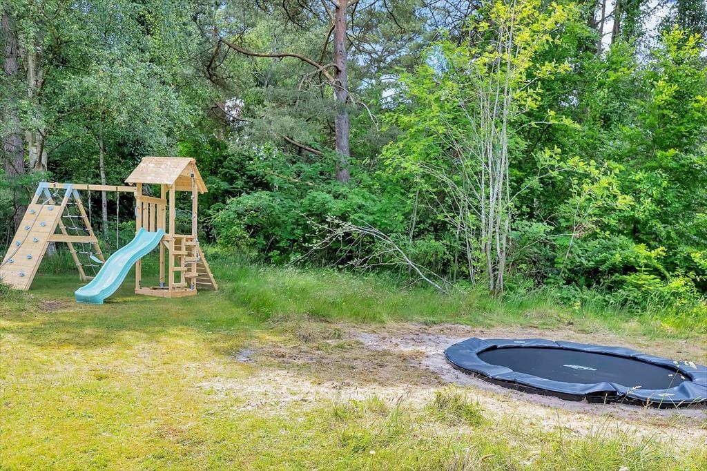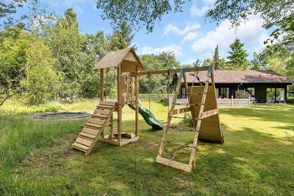 På sommerhusets store grund er der rig mulighed for udendørs hygge, der er masser af plads til både boldspil og andre havespil. Grunden er en skøn naturgrund omkranset af store flotte træer, så er masser af dyreliv på grunden. Du kan være heldig at møde både egern og rådyr på grunden. Står dagen på afslapning kan du ligge og nyde solen imens du lytter til fuglefløjt, og bliver solen for meget så kan der søges skygge på den overdækkede terrasse. Børnene kan desuden lege i den tilhørende sandkasse.