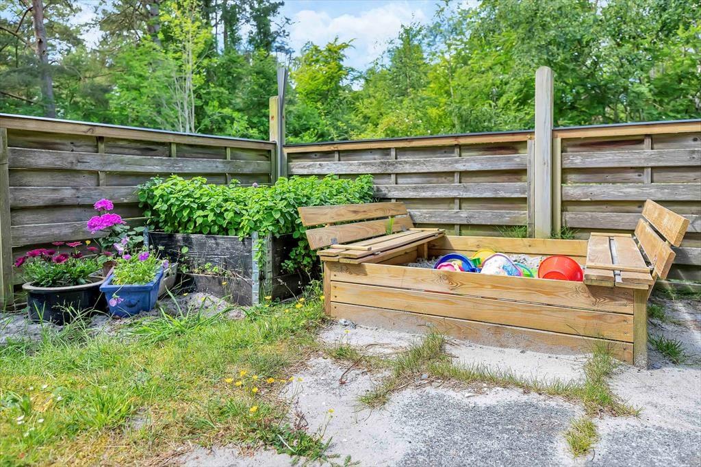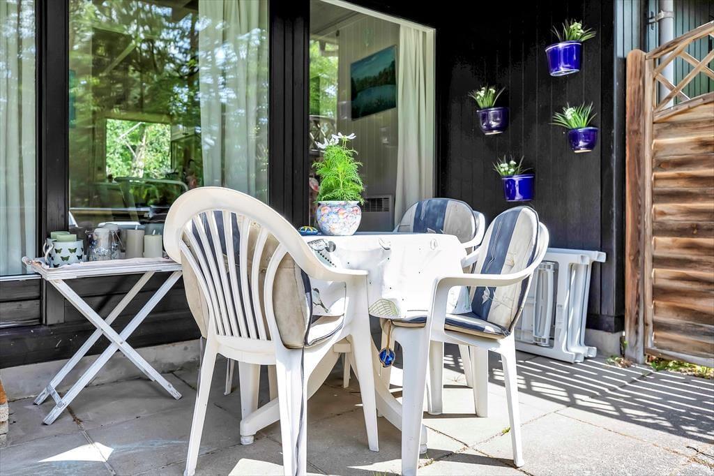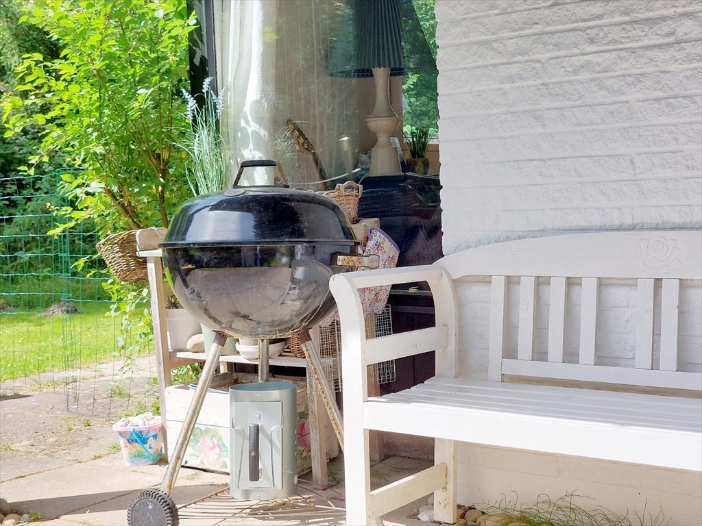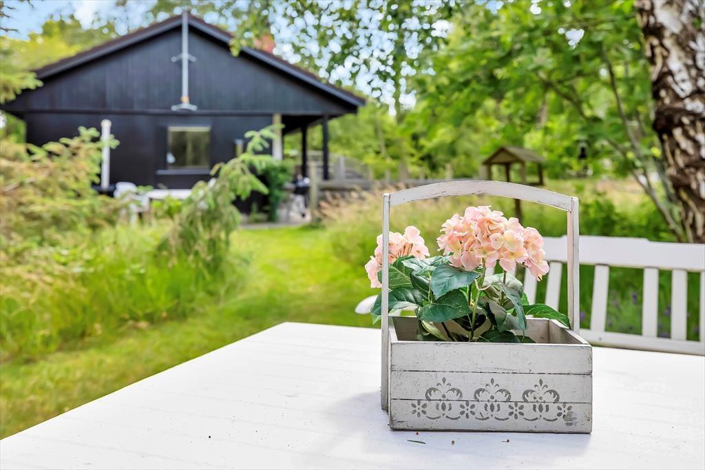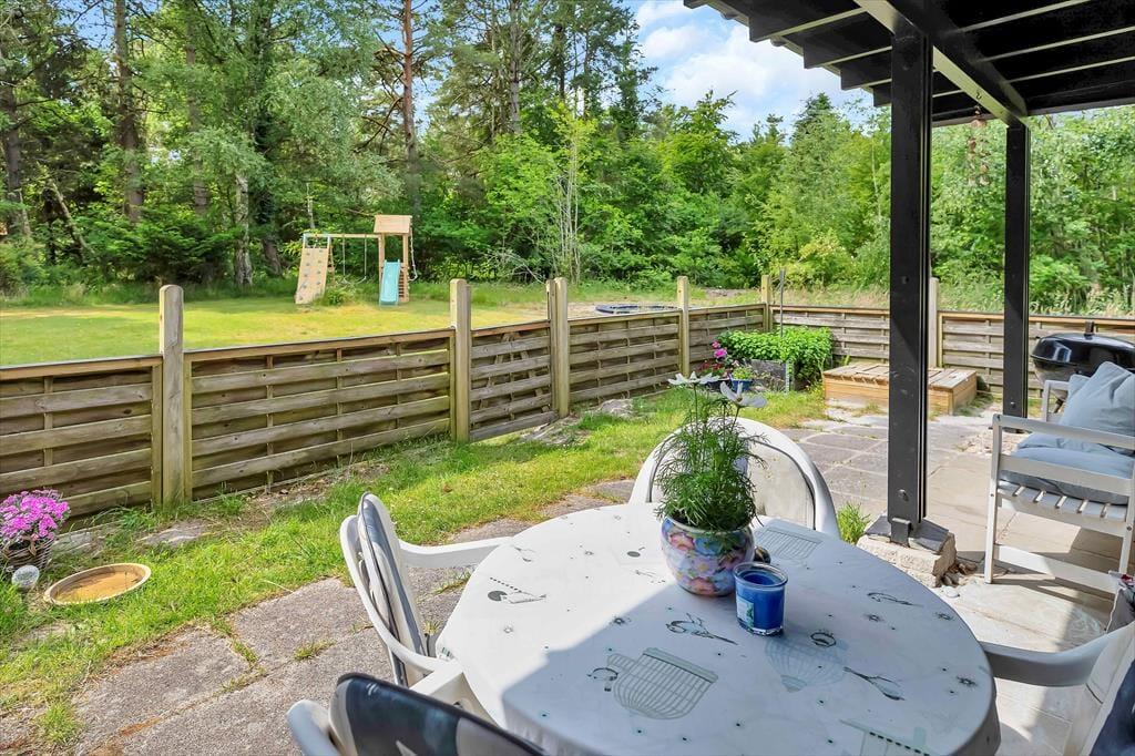 På sommerhusets store grund er der rig mulighed for udendørs hygge, der er masser af plads til både boldspil og andre havespil. Grunden er en skøn naturgrund omkranset af store flotte træer, så er masser af dyreliv på grunden. Du kan være heldig at møde både egern og rådyr på grunden. Står dagen på afslapning kan du ligge og nyde solen imens du lytter til fuglefløjt, og bliver solen for meget så kan der søges skygge på den overdækkede terrasse. Børnene kan desuden lege i den tilhørende sandkasse.