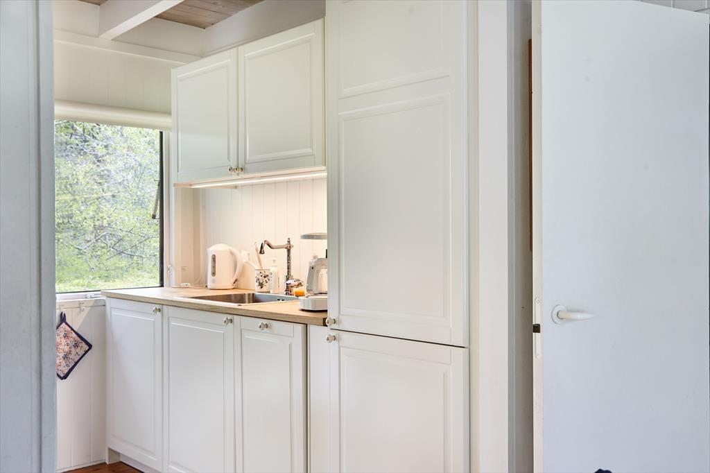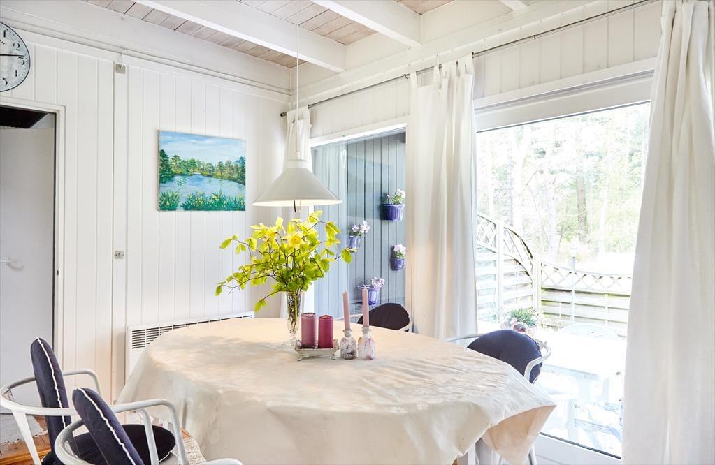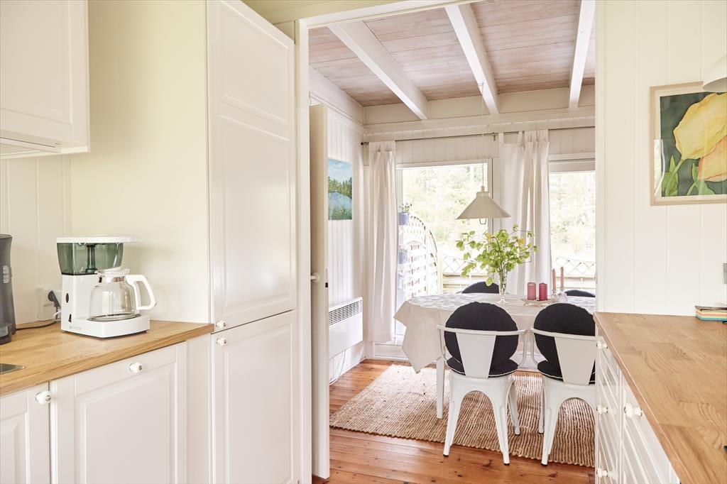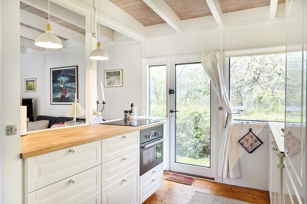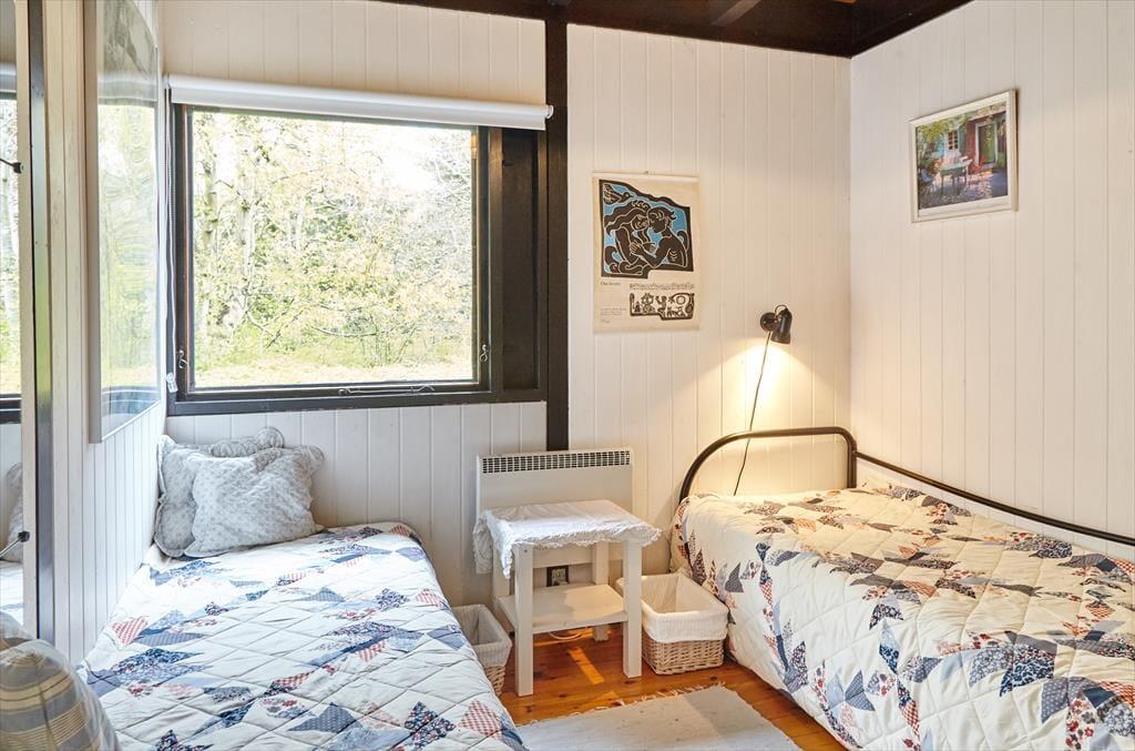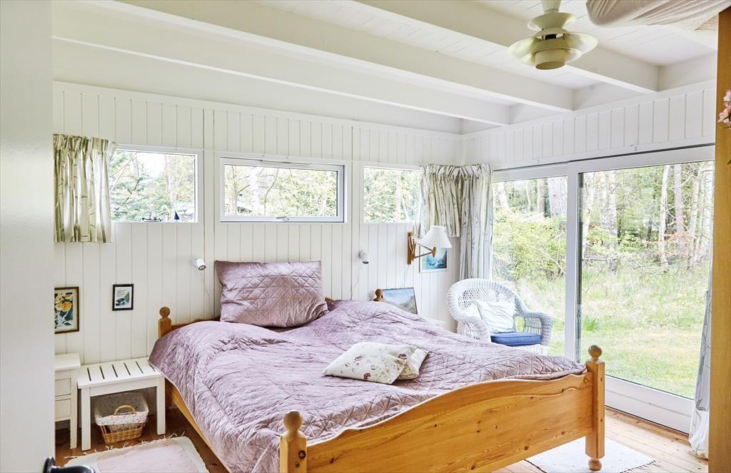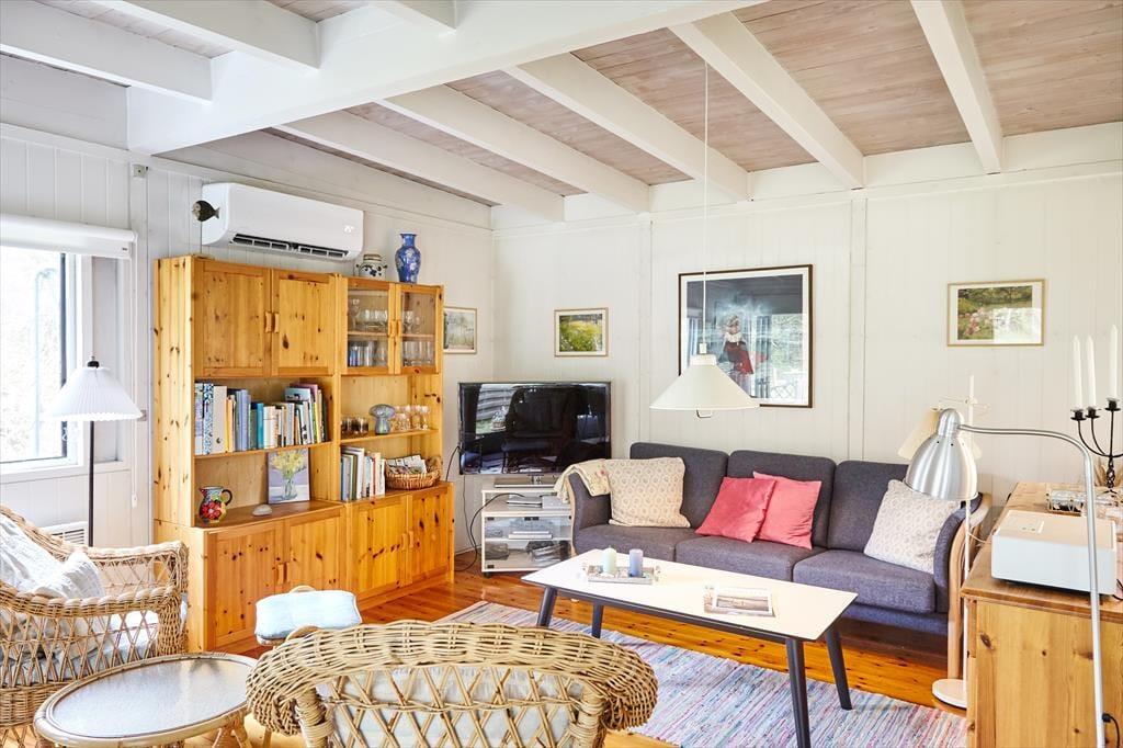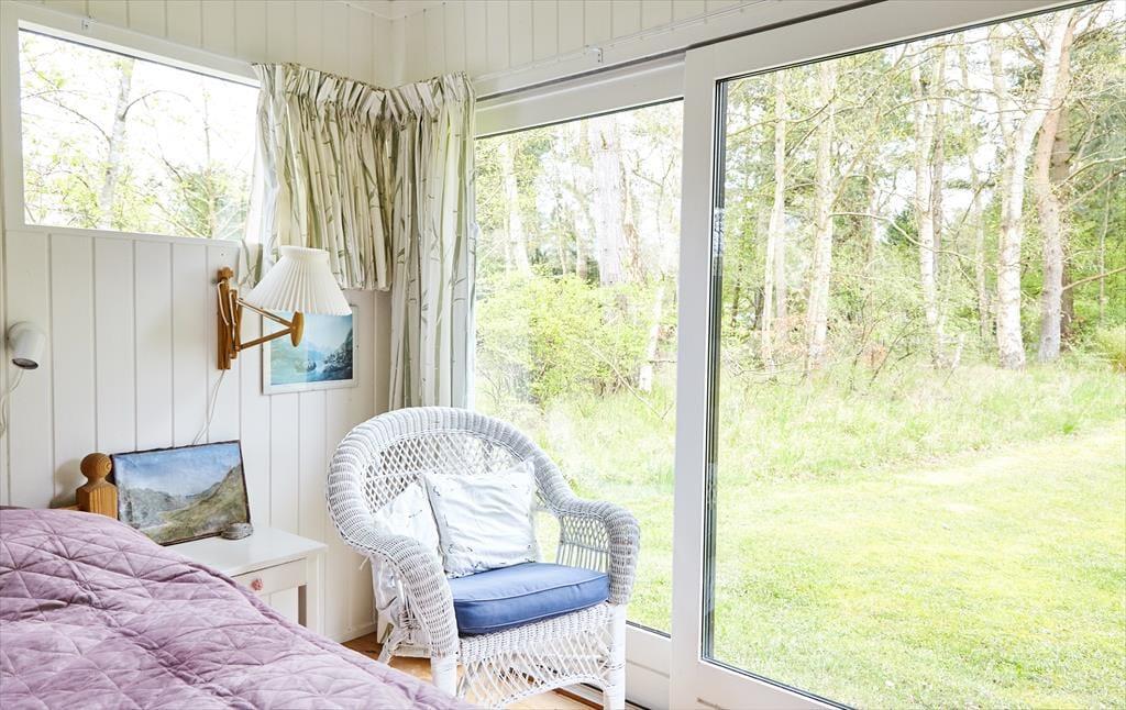 Dette skønne og hyggelige sommerhus indbyder til at samles og hygge sig med hinanden. Sommerhuset har en fantastisk stemning, der får skuldrene til at sænke sig så snart du træder ind. Det nyrenoverede køkken er i åben forbindelse med stuen, så er du en af dem der står for madlavningen, er du stadig en del af fællesskabet. Her hygges om aftenen med spil, tv eller gode fortællinger foran pejsen. Sommerhusets værelser er samlet i den ene ende af huset, så når børnene er lagt i seng kan voksne stadig sidde og hygge sig i stuen uden at vække børnene. Annekset er en del af sommerhuset, du skal blot udenfor for at komme ind i det hyggelige værelse. Sommerhuset har plads til 8 sovende, men vær så tålmodige med hinanden da der kun er et badeværelse.