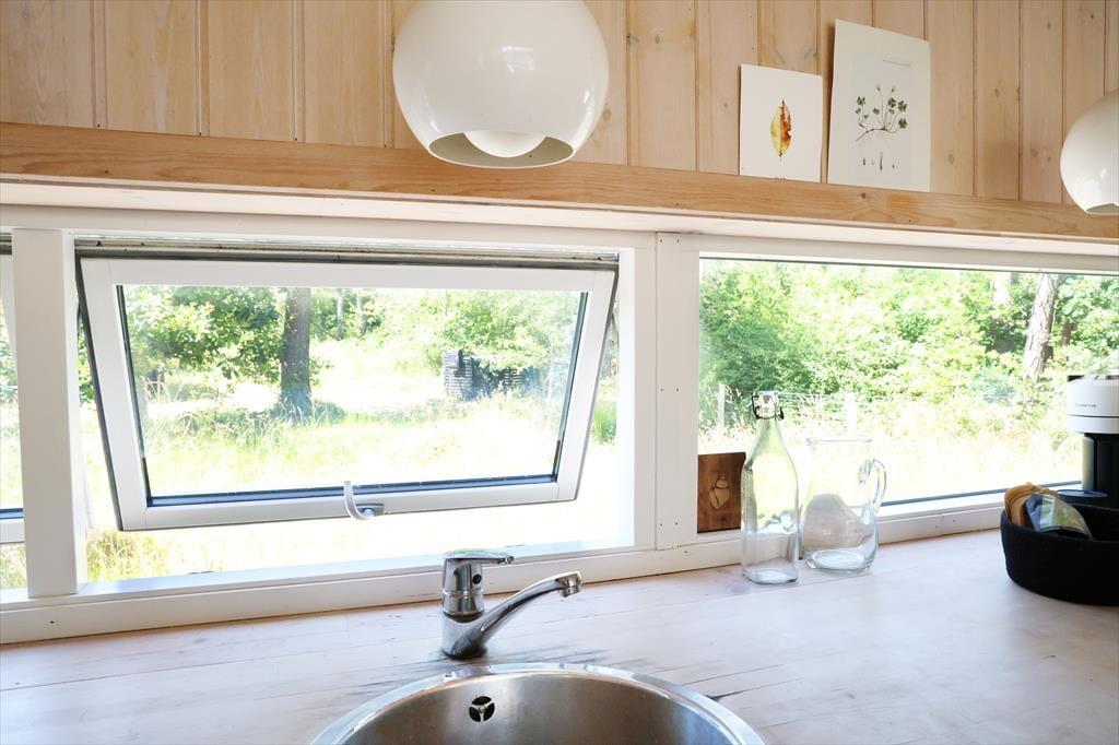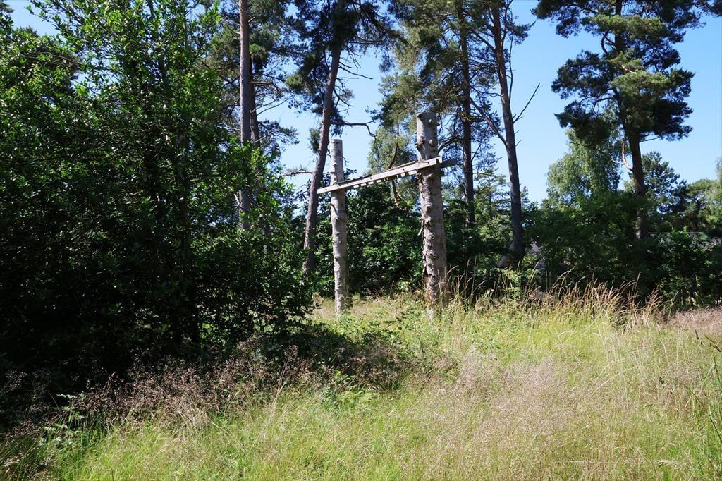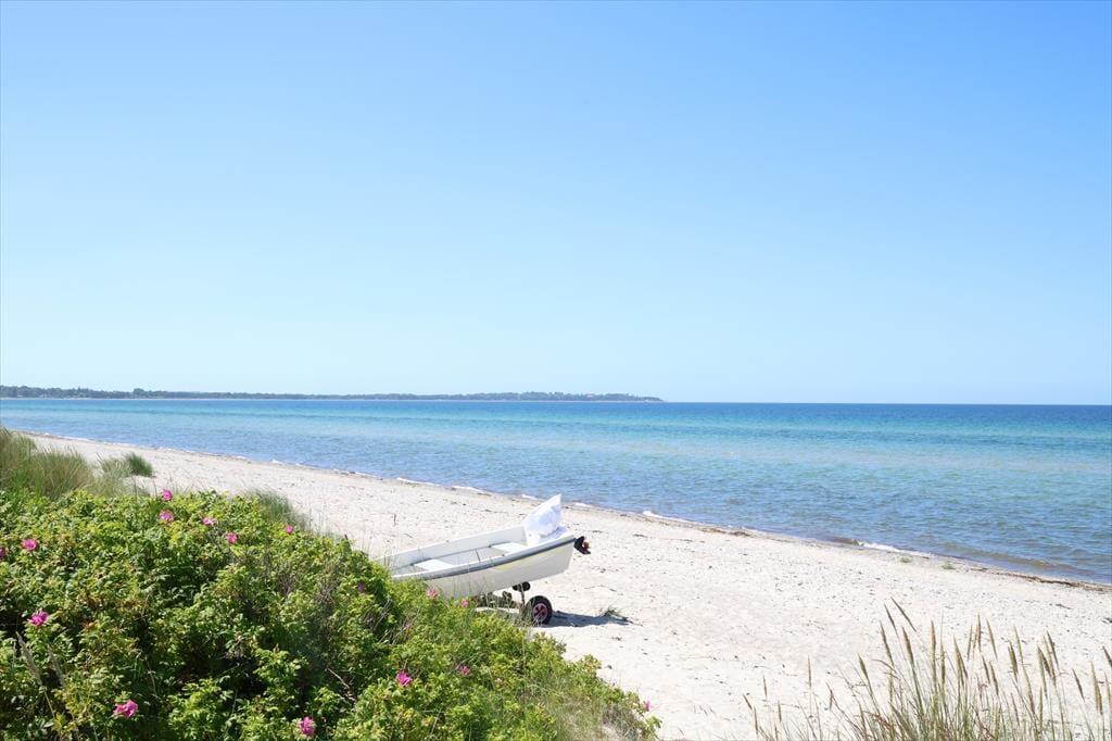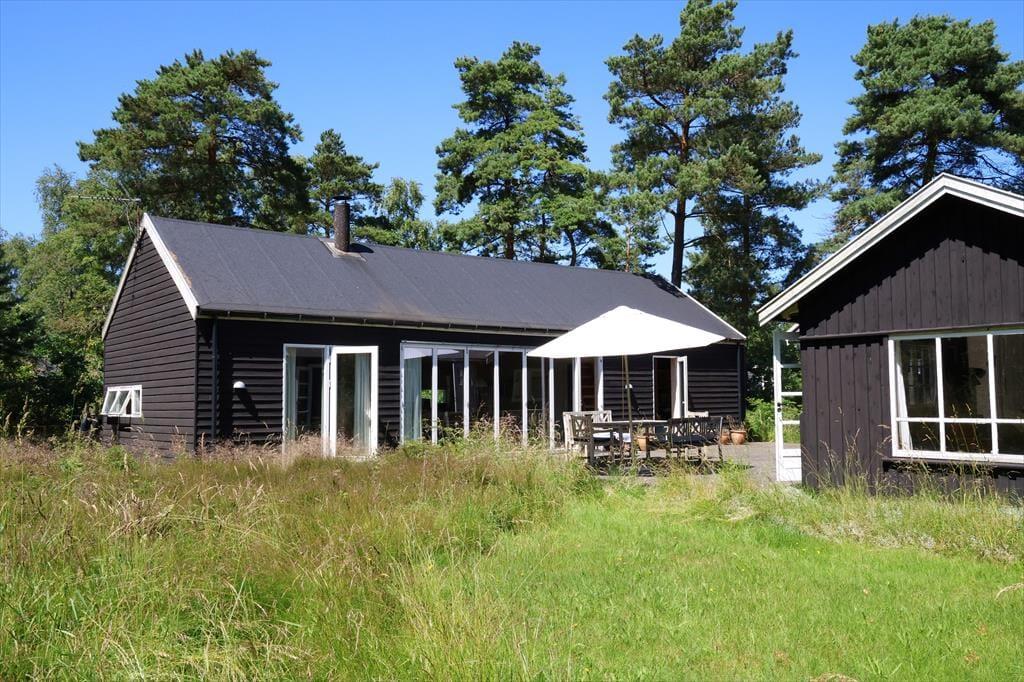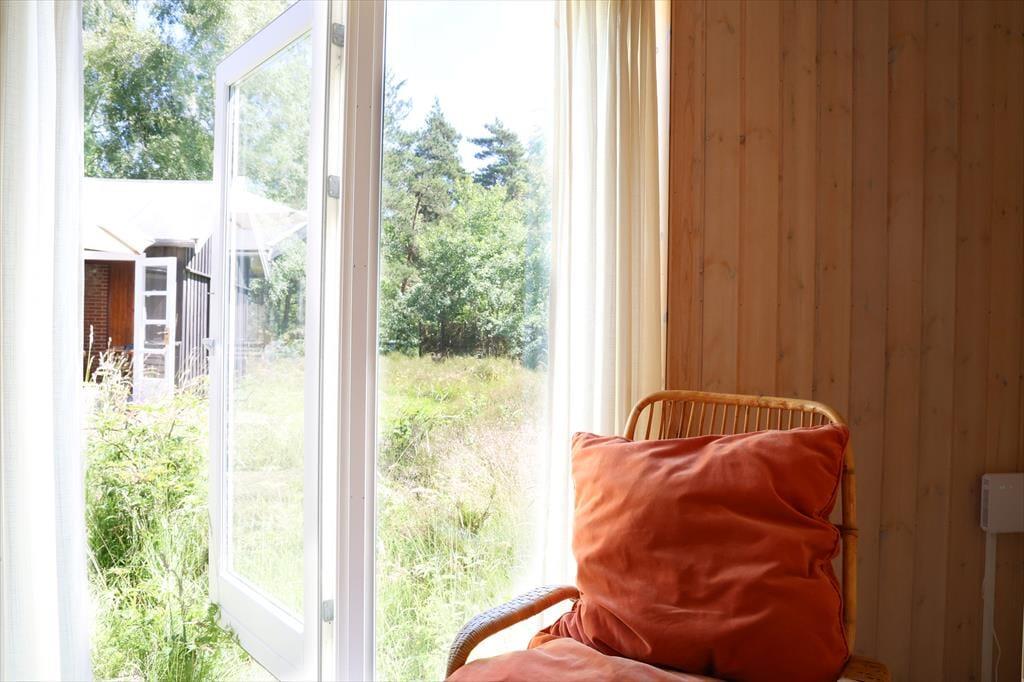 Udendørs kan den helt fantastiske naturgrund nydes. Det er her skuldrene falder ned og roen sænker sig i kroppen til fuglekvidder og insekternes summen. Der er masser af lyng, træer og buske på grunden som kan nydes fra terrasserne. Den store træterrasse er mødestedet imellem de 2 huse, og her er der masser af plads til at spise om bordet, og ligge at slikke sol med en god bog. For enden af vejen går en lille sti ned til den skønneste sandbadestrand, her er stranden børnevenlig både som badevand, men også til leg da der er god plads til at bygge sandslotte.
