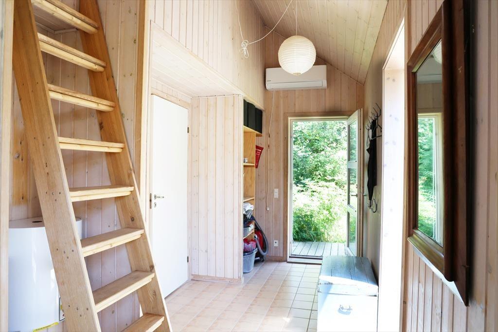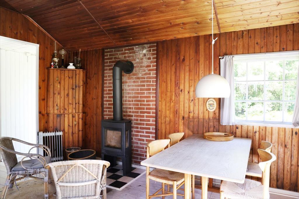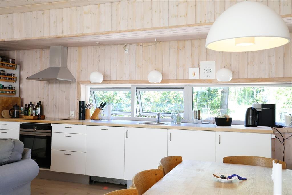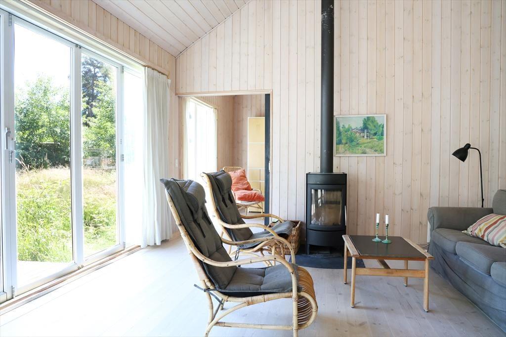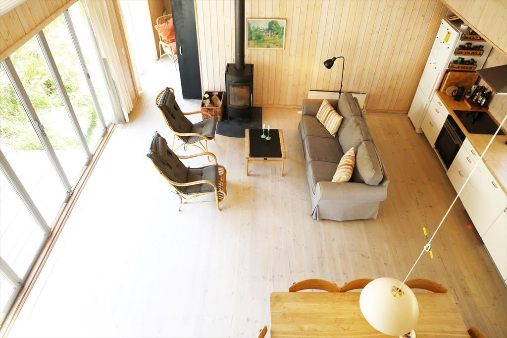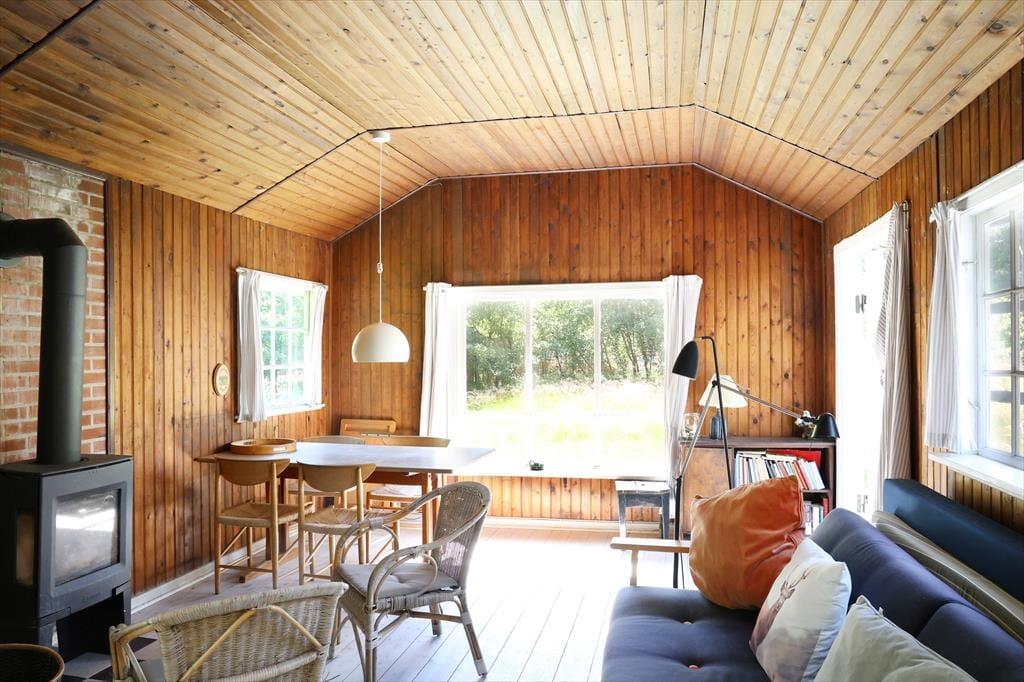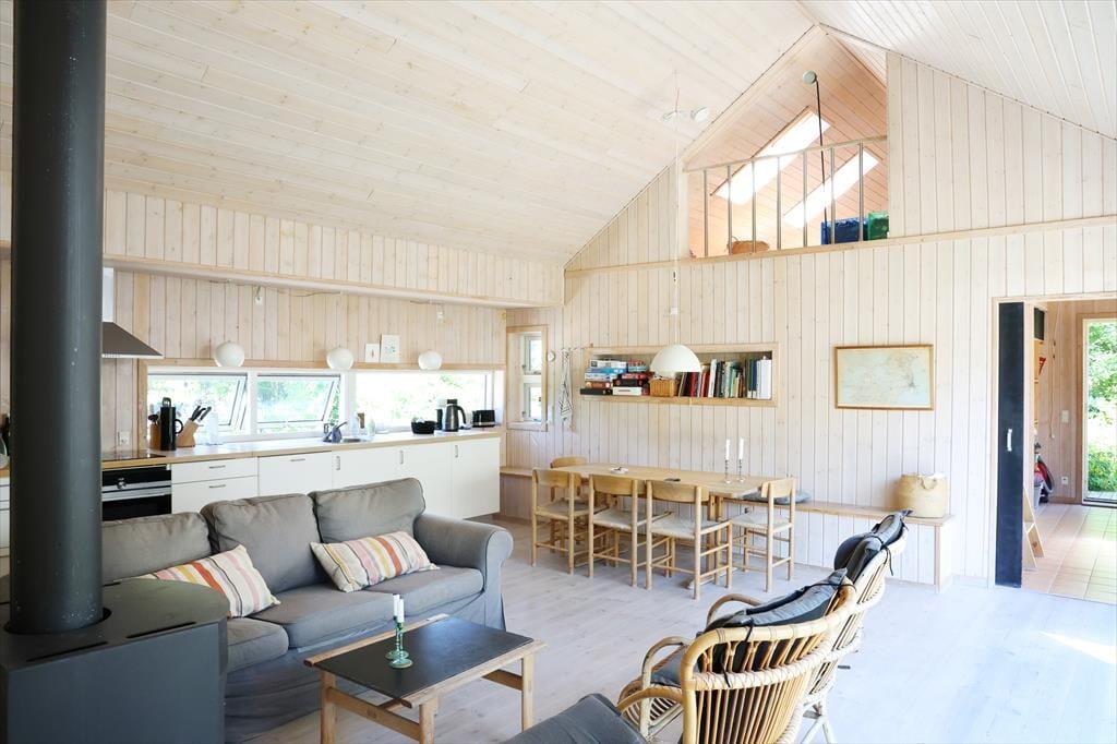 Indendørs fornemmes rummeligheden, da sommerhuset har loft til kip og masser af lys trænger ind igennem de store vinduespartier. Husets hjerterum er det store køkken-/alrum. Her kan hele familien samles til hyggelige stunder og drøfte morgendagens aktiviteter. Imens middagen tilberedes, kan børnene hygge sig på den store hems. Annekset er indrettet som et hyggeligt lille ekstra sommerhus med egen brændeovn i stuen, gæstetoilet og værelser.