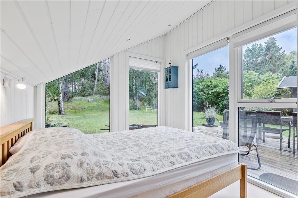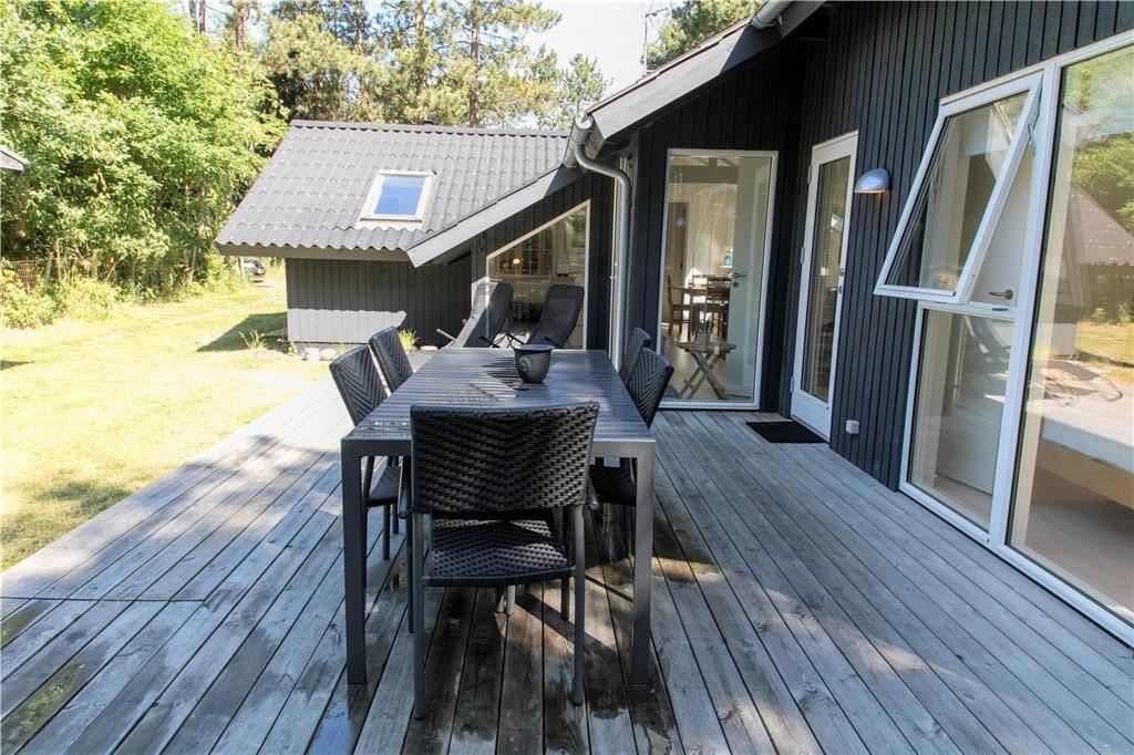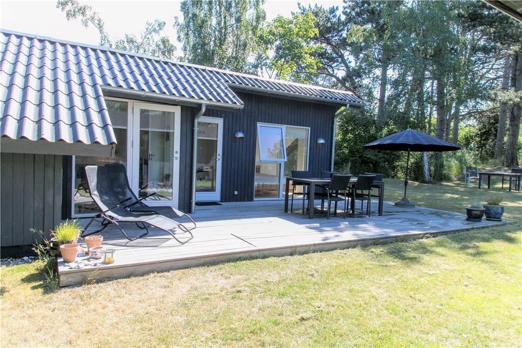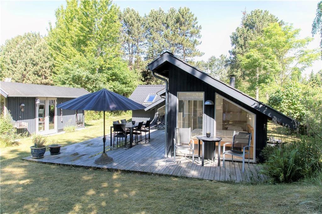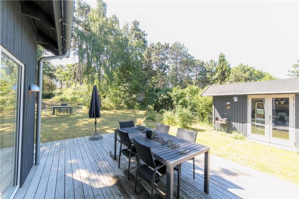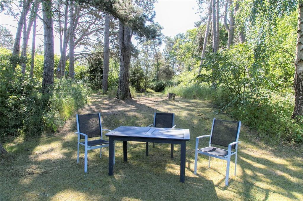 I den lukkede tætte have med store træer kan du altid finde et sted med læ eller skygge, hvis der er behov for det. Der er også masser af plads til solbadning og fælleshygge på det store, gode terrasseareal. Hvis du er heldig kan du se et egern klatre op i træerne eller et rådyr der kommer forbi.