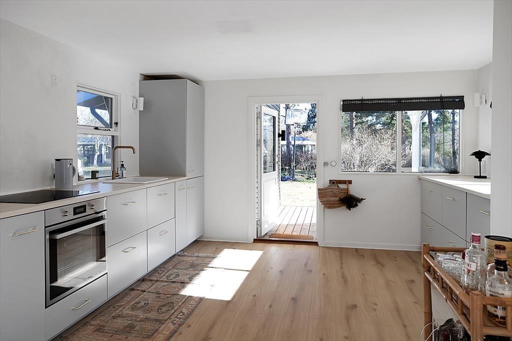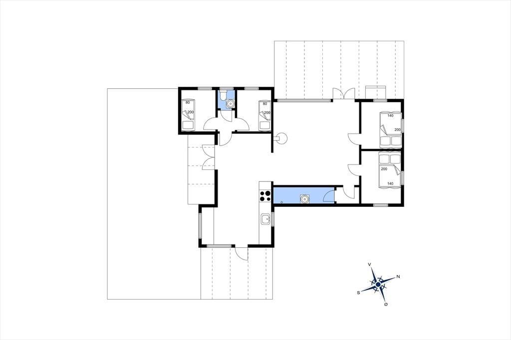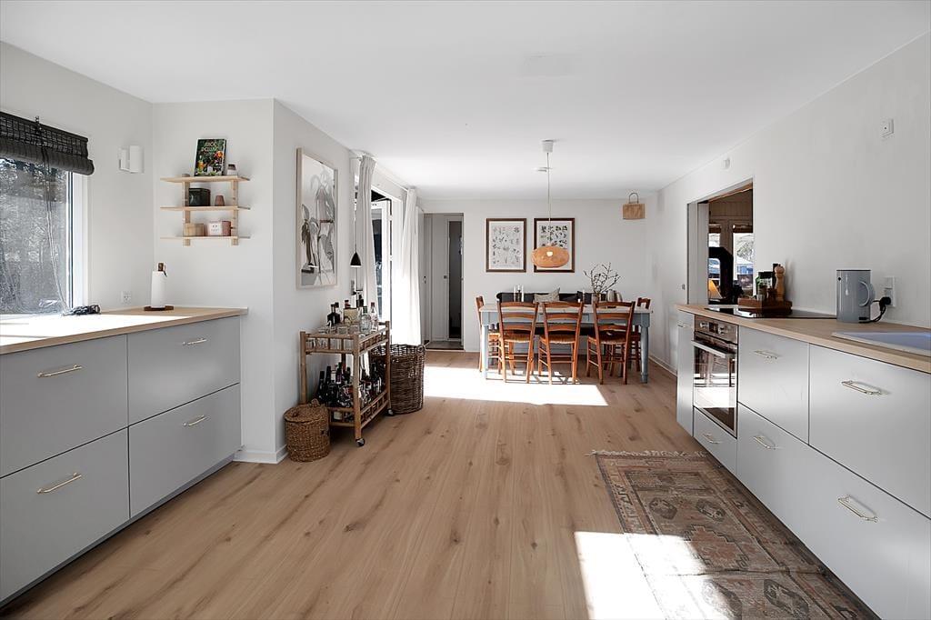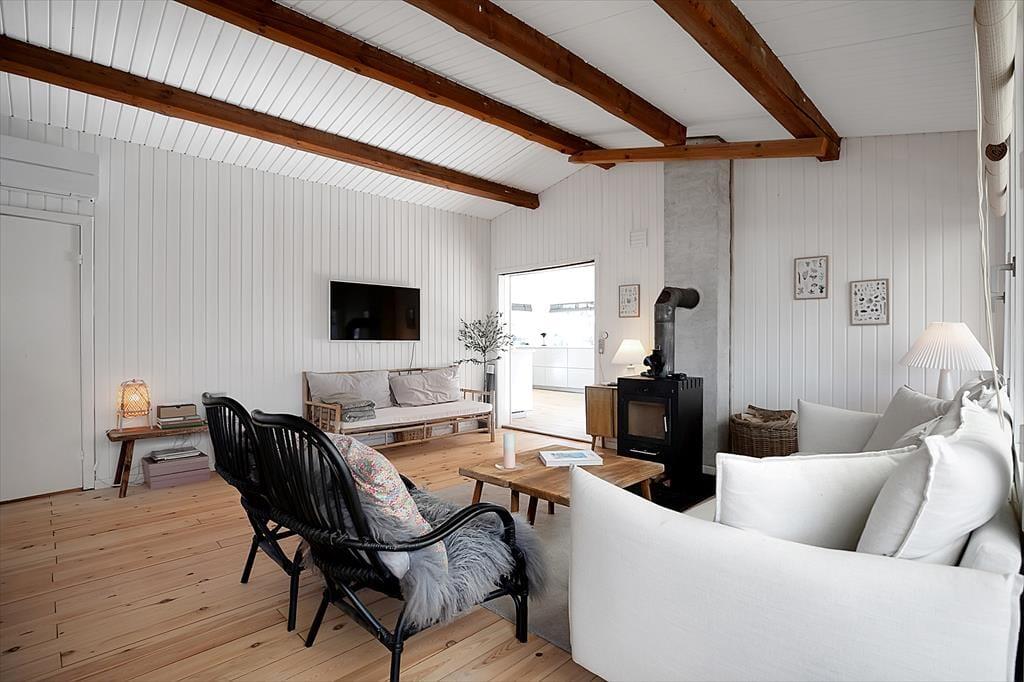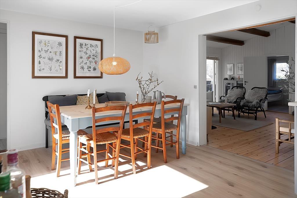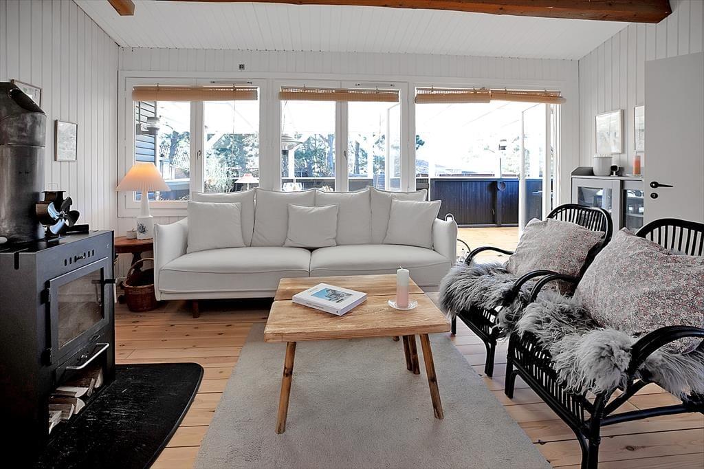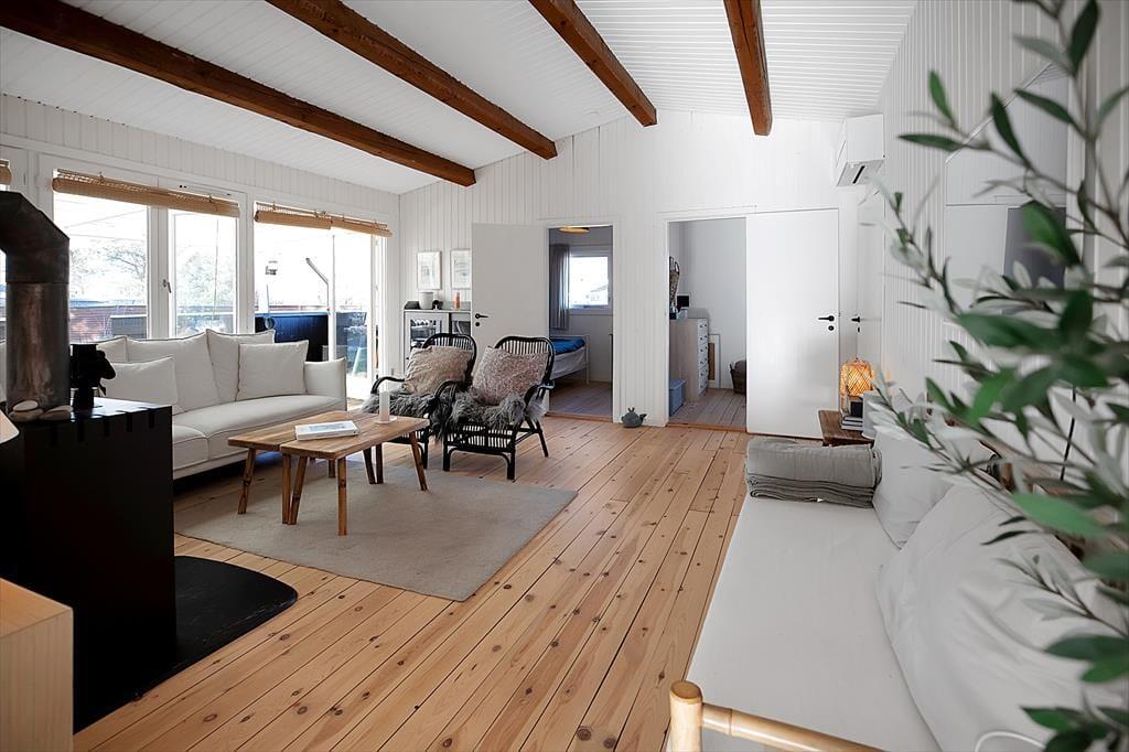 Sommerhuset er indrettet med en rigtig dejlig stue, hvor du kan slappe af med en god bog eller en latte. Der er et stort nyt køkken i forbindelse med køkkenalrum, her er der mulighed for at tage jer et slag kort mens frokosten bliver klar. Der er fire dejlige soveværelser, de to med dobbeltsenge og de to med enkeltsenge. Og så er det nye badeværelse og wc opdelt i to separate rum. Til huset hører der både en stor åben, samt en overdækket terrasse, hvor I kan nyde solen fra morgen til aften, grille, eller bare slappe af med et godt glas vin. Huset er omgivet af en rummelig have, hvor der er plads til boldspil og leg.