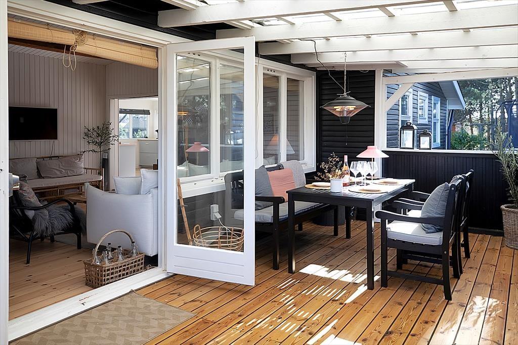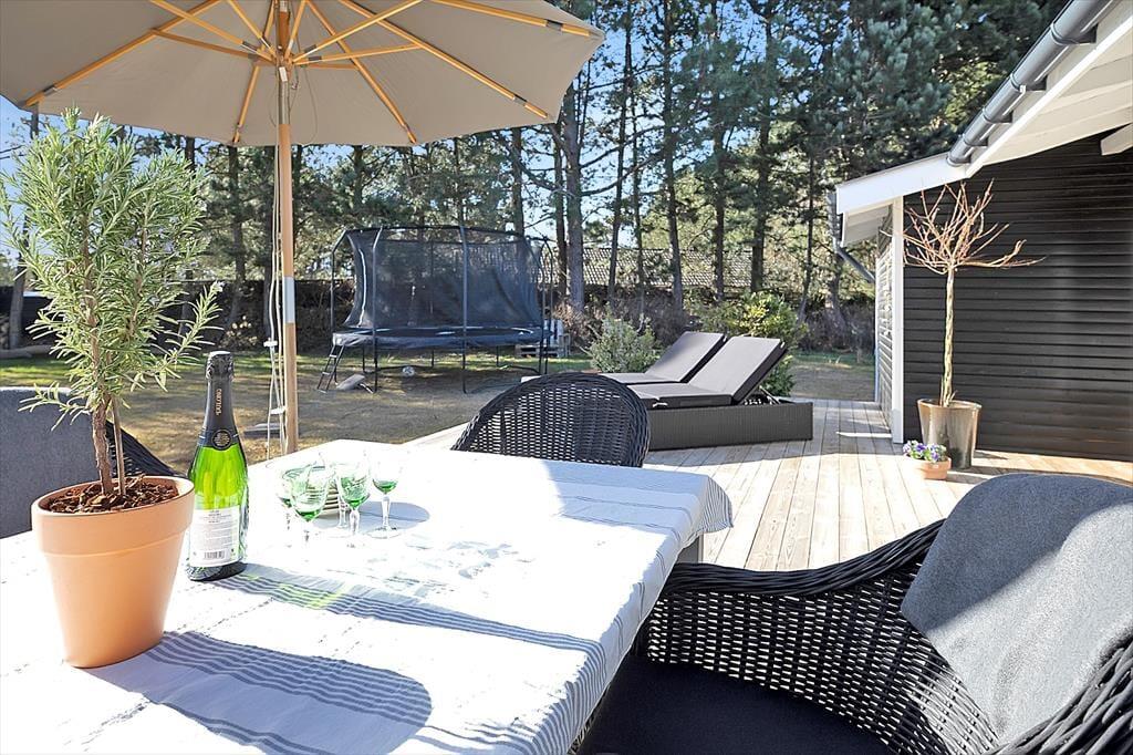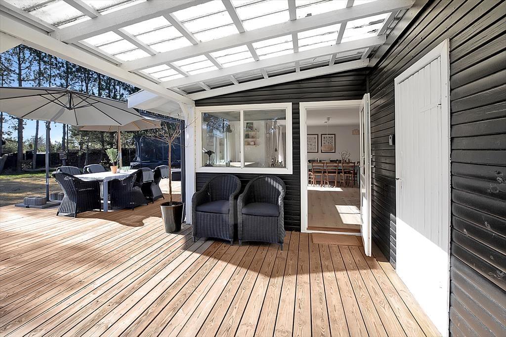 Dette skønne sommerhus er beliggende i rolige omgivelser, med stor terrasse og have. Kun 1,2 km fra dejlig sandstrand.
