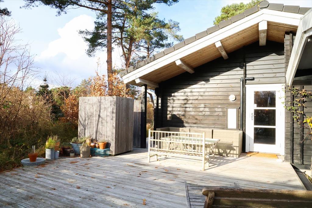 Sommerhuset er beliggende i et meget populært og roligt område, så der er rig mulighed for at sidde i ro og mag og bare nyde stilheden. Her er der masser af sol hele dagen. For børnene kan dagen gå med at klatre i træer og lege gemmeleg. Når det bliver tid til en dukkert, så er den rigtig gode sandstrand kun 10 minutters gang fra huset. Husk at du har mulighed for at skylle sandet af under bruseren på udebadet, der både er med varmt og koldt vand. Om aftenen kan du kigge på stjernerne, mens I nyder et lille glas efter børnene er blevet puttet.