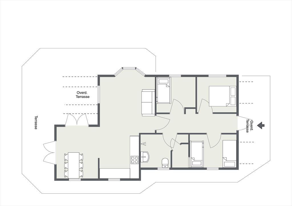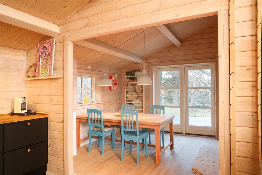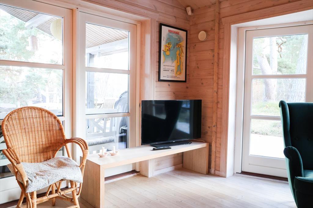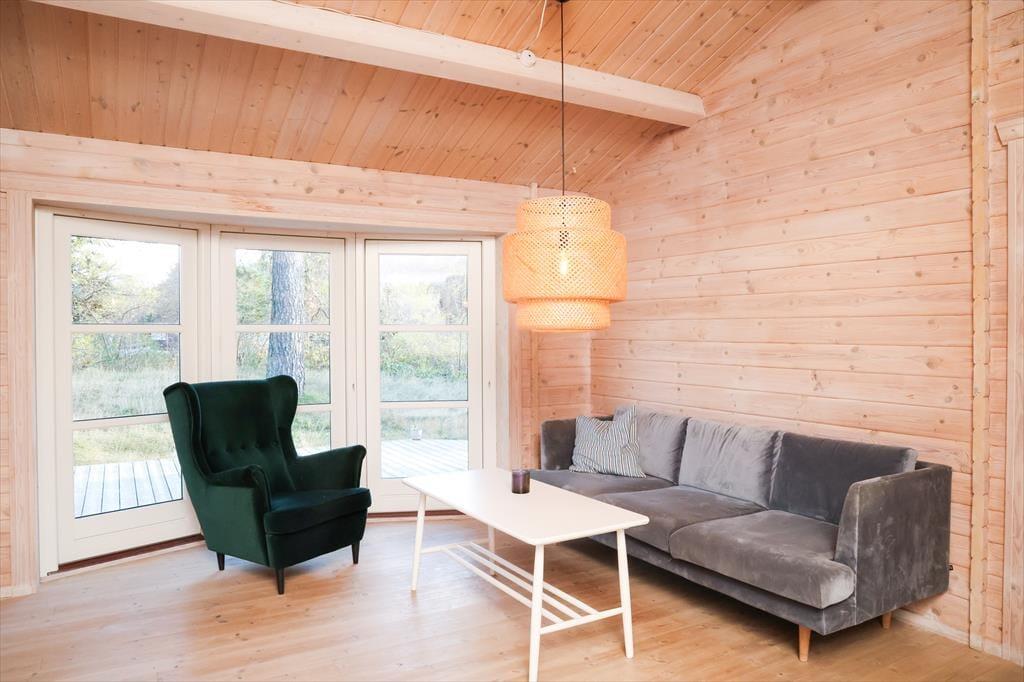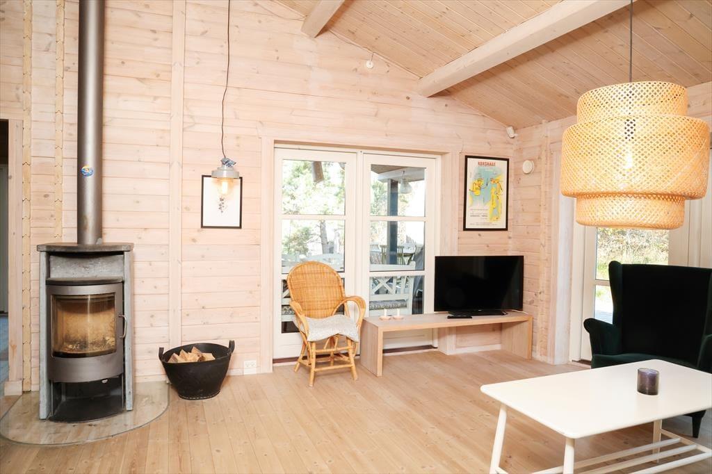 Sommerhuset fremstår lyst og særdeles indbydende. Inde fra huset er der det smukkeste udsyn til den skønne naturgrund. Sommerhusets hjerterum er opholdsstuen og spisestuen i et, hvor mange gode stunder kan nydes med en god middag, eller med en spændende bog i sofaen imens der lyttes til knitren fra brændeovnen. I det skønne åbne køkken er det perfekt at tage en hyggestund med dine børn eller børnebørn, for at bage boller, som I sammen kan nyde på den overdækkede del af terrassen. I huset er der 3 gode soveværelser. Og et dejligt badeværelse med brus.