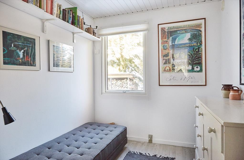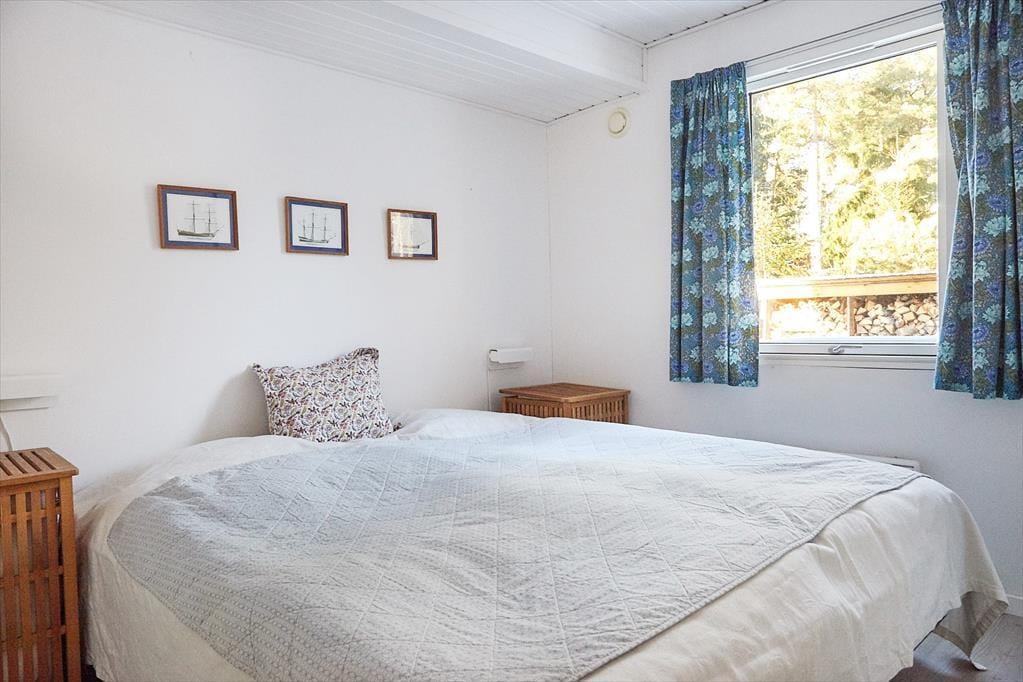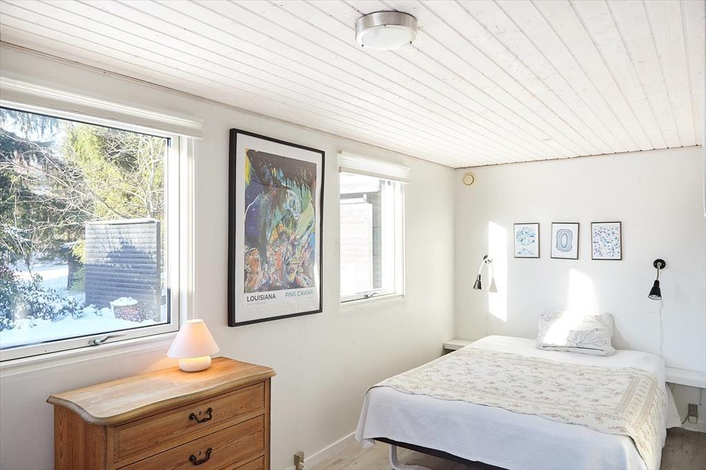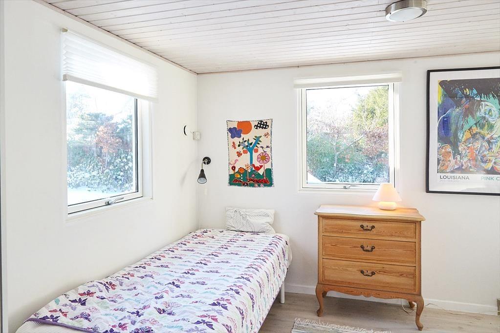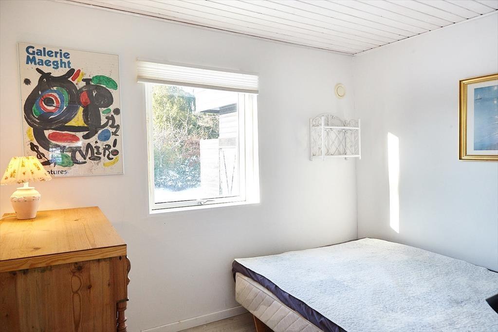 Entré. Badeværelse med bruser og vaskemaskine. Værelse med enkeltseng. Køkken/alrum med spiseplads. Stor lys stue med brændeovn, varmepumpe og udgang til overdækket terrasse. Der er udendørs en skøn udebruser med både koldt og varmt vand, her kan du en sen aften nyde et dejligt ude bad imens du kigger på stjernehimlen. Der er desuden adgang til skur, der kan aflåses til cykler.