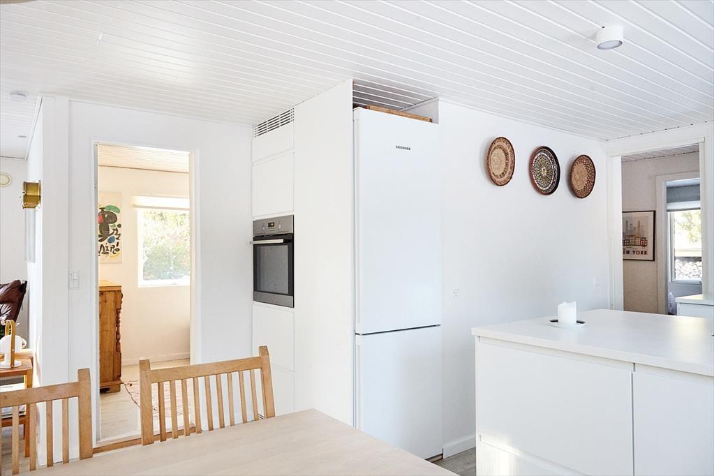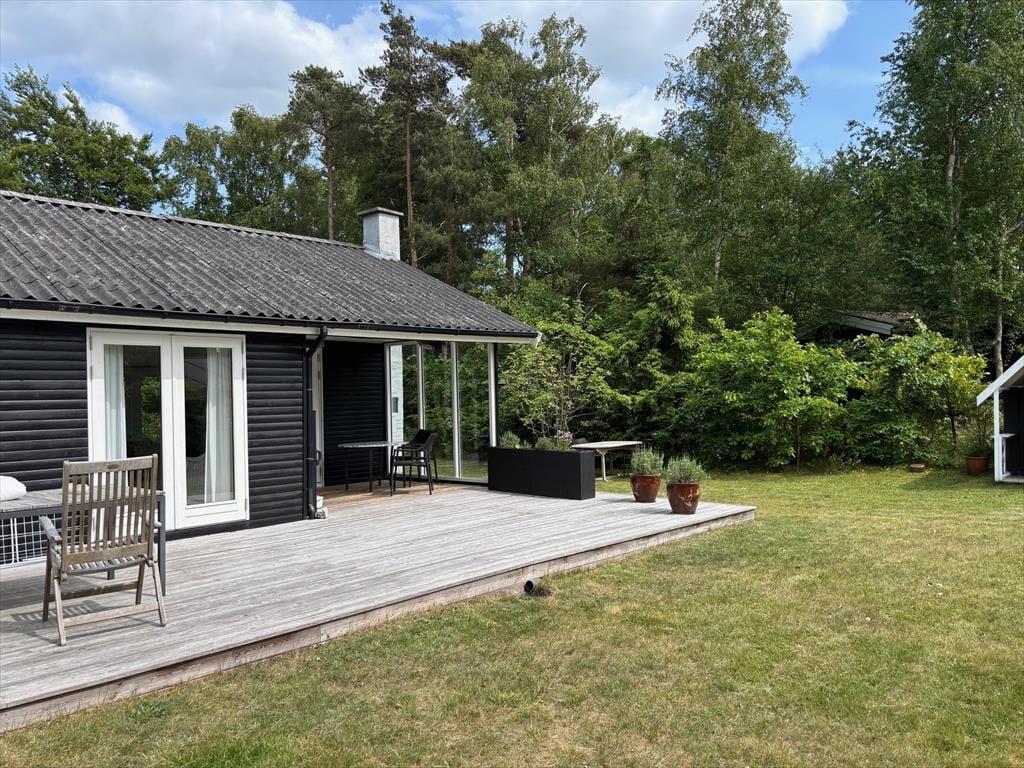 Dejligt sommerhus beliggende på en skøn naturgrund, tæt på en god og børnevenlig sandstrand. Sommerhuset byder på mange gode og hyggelige stunder udendørs på den store træterrasse, hvor eftermiddags- og aftensolen kan nydes. Grunden er godt aflukket så der kan slappes af i ugenerte omgivelser. En god kop kaffe kan nydes på den overdækkede terrasse imens børnene boltrer sig i haven.